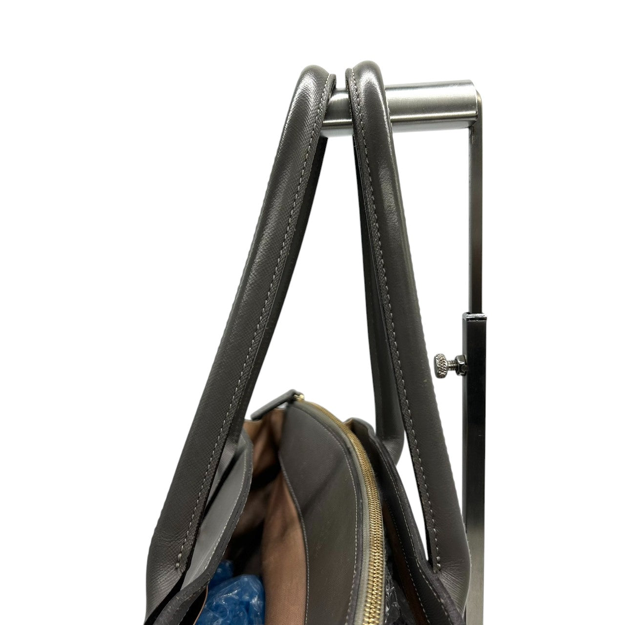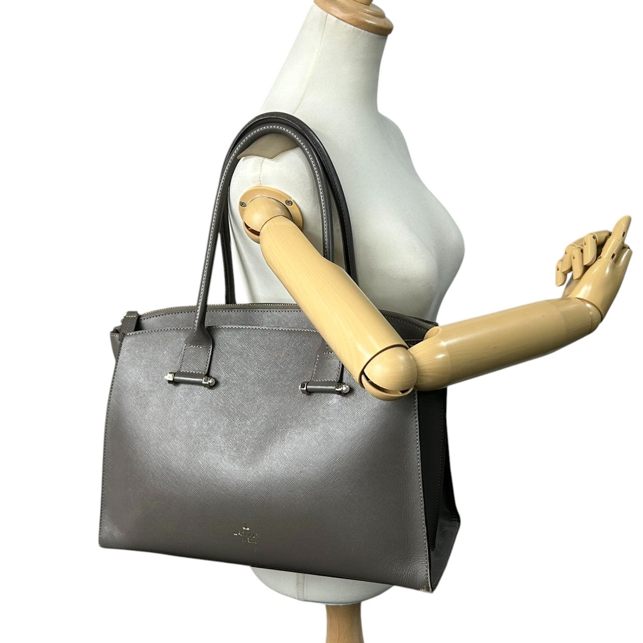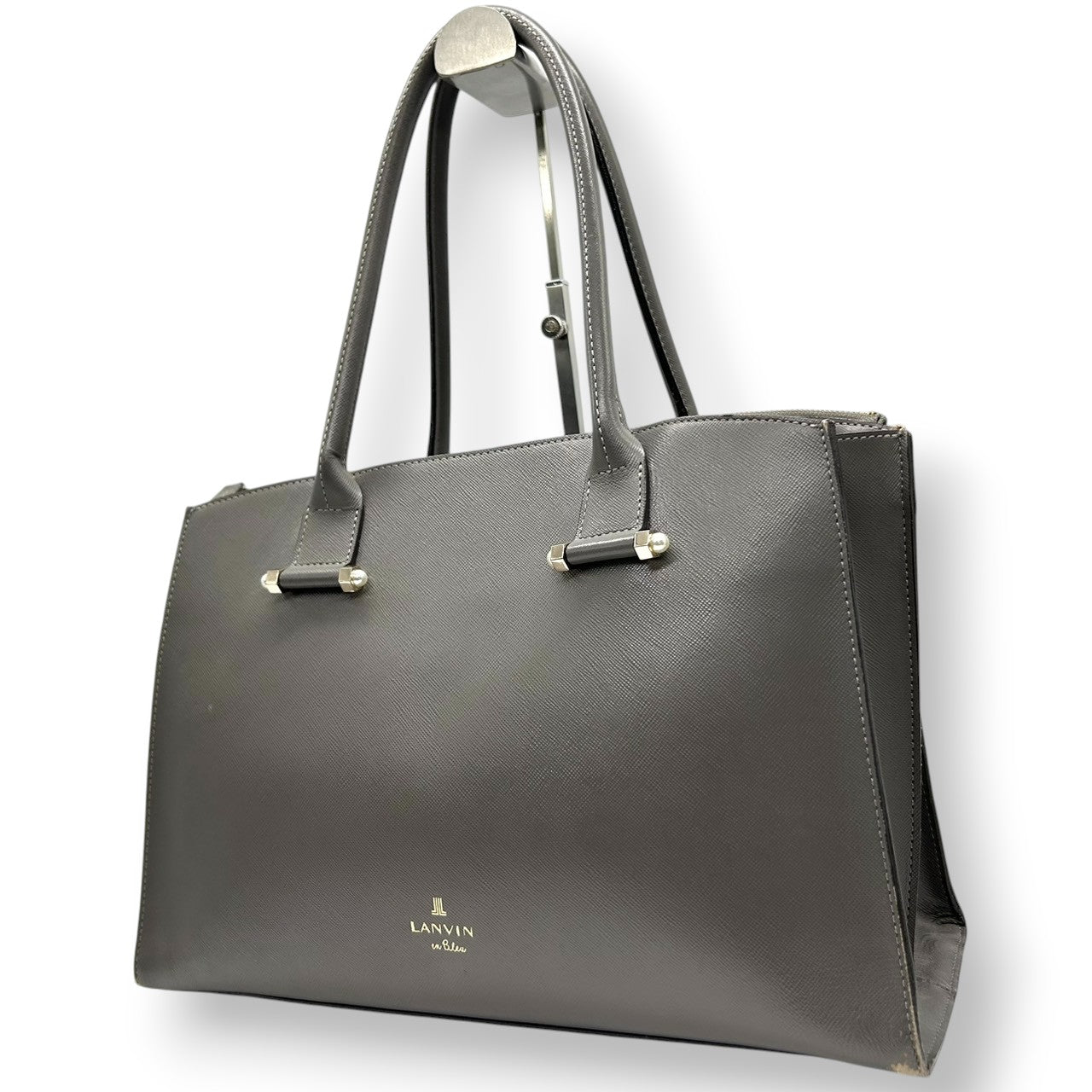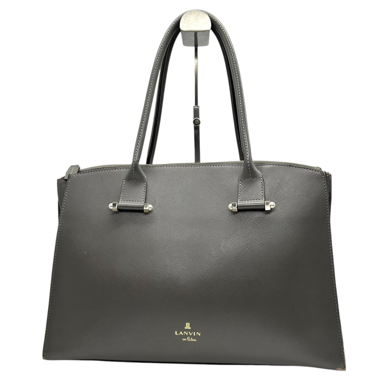 ランバンオンブルー トートバッグ ハンドバッグ ビジネスバッグ ショルダーバッグ A4収納可 肩掛け可 大容量 自立可 サフィアーノ調 PVC レザー グレー ゴールド金具 レディース 婦人 通勤 通学 オフィス フォーマル きれいめ 上品 エレガント s5