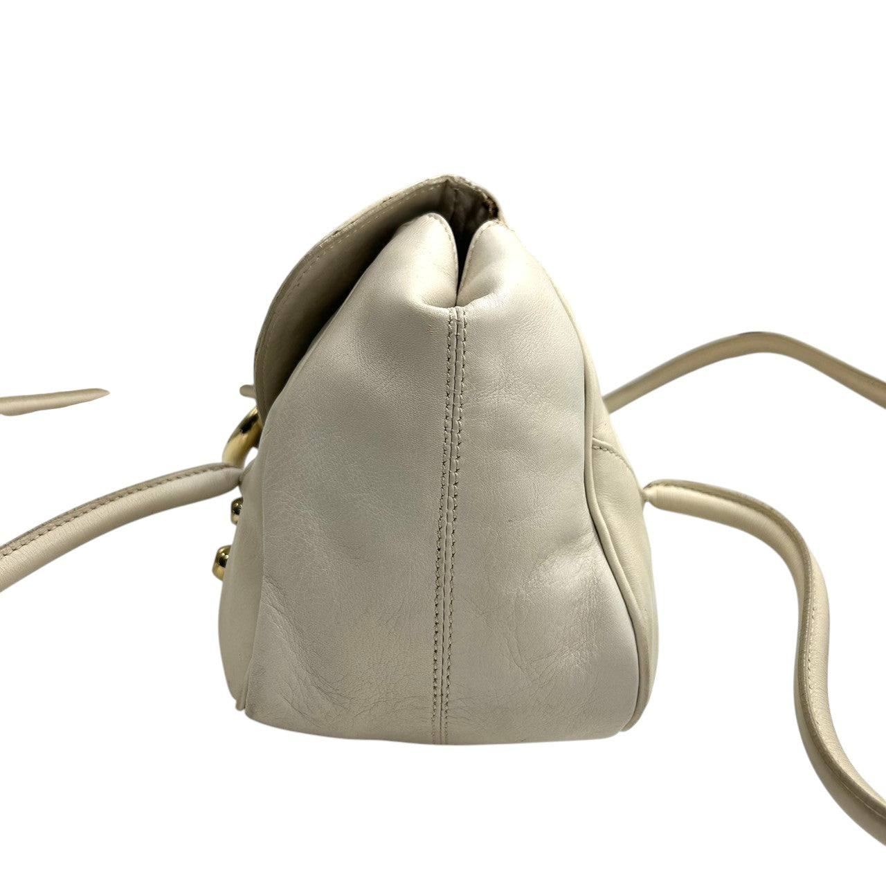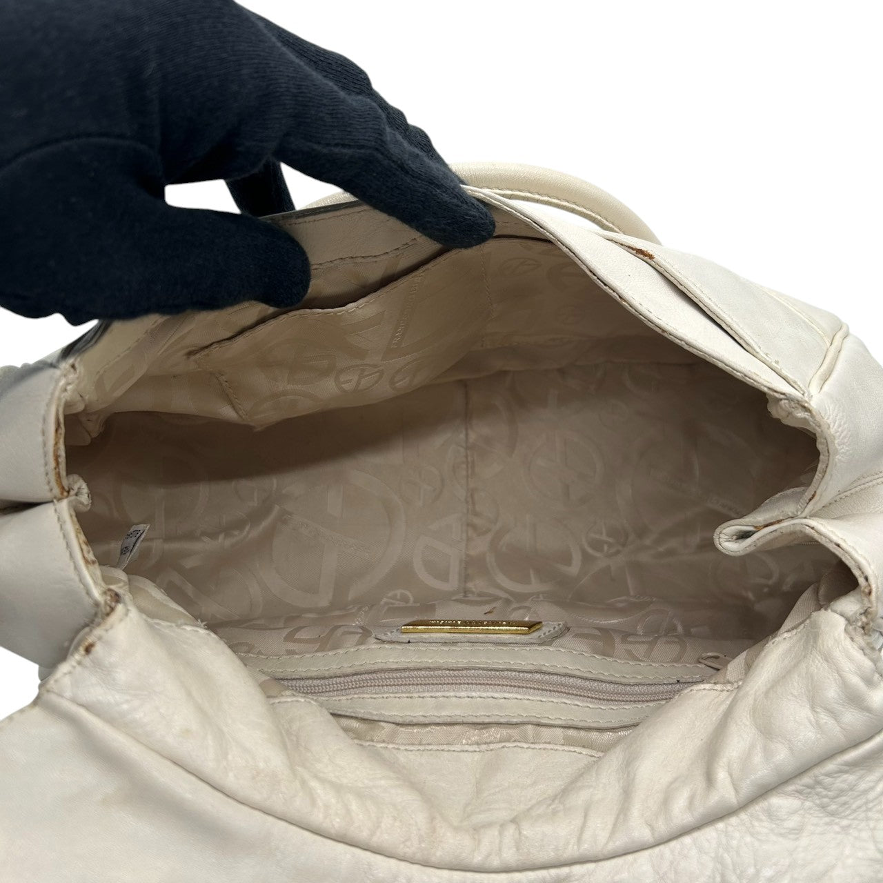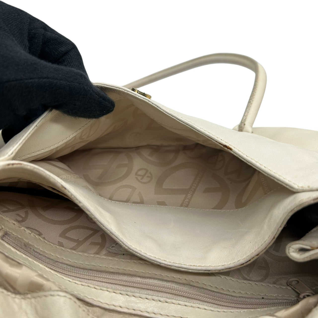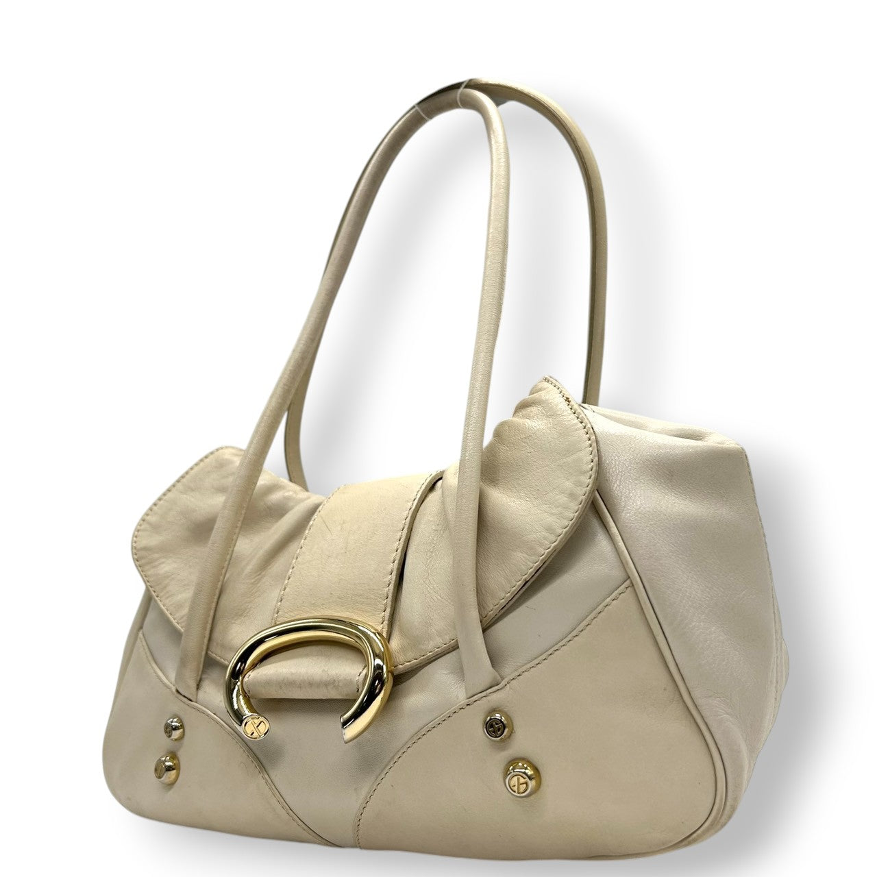 フランチェスコビアジア ハンドバッグ ショルダーバッグ ワンショルダー 肩掛け フラップ ギャザー レザー 本革 アイボリー C型リング ゴールド金具 レディース おしゃれ エレガント フェミニン 高級感 パーティ デート お出かけ s97