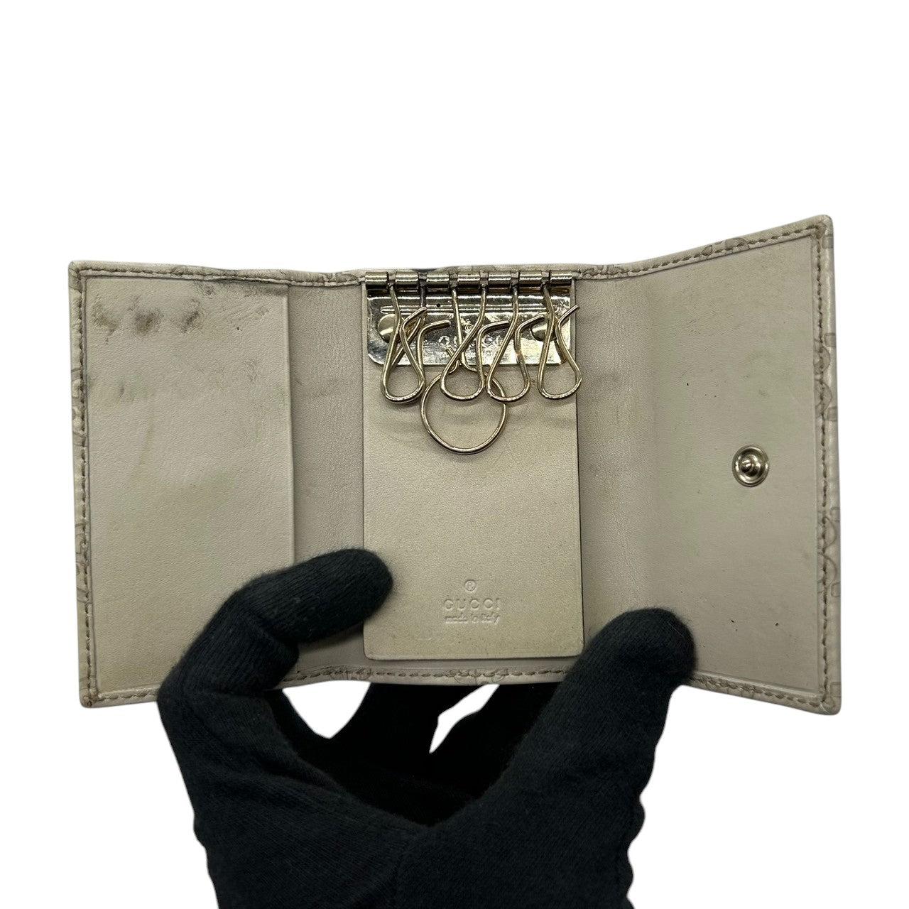 グッチ GUCCI グッチシマ キーケース 6連 GGエンボス GG柄 レザー 本革 アイボリー シルバー金具 スナップボタン メンズ レディース ユニセックス コンパクト 定番 人気 w6