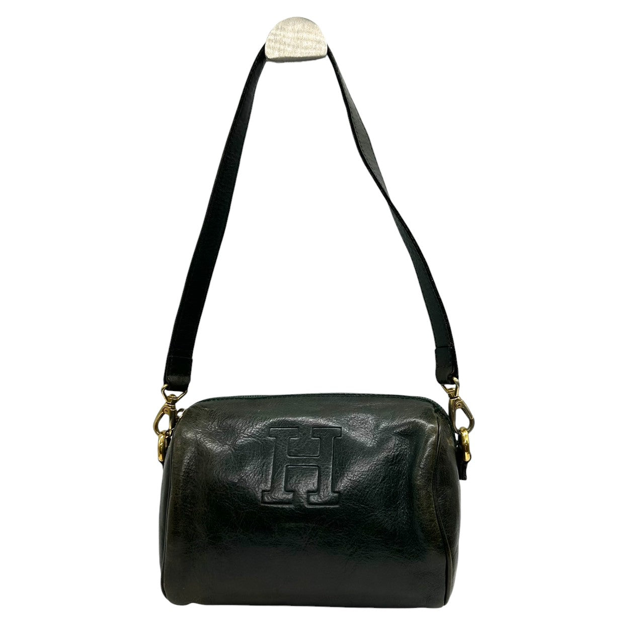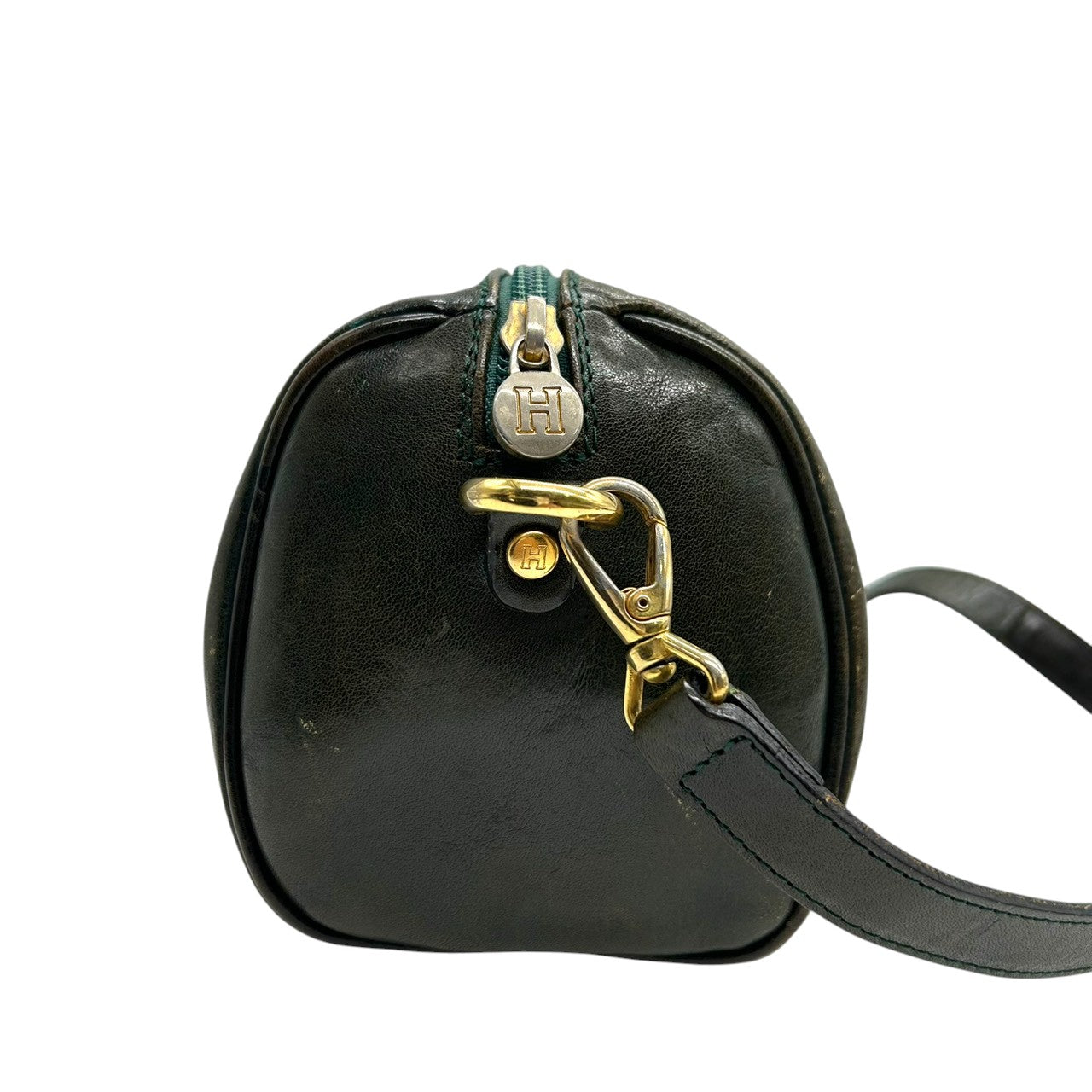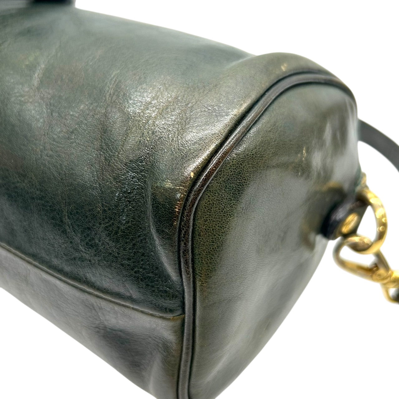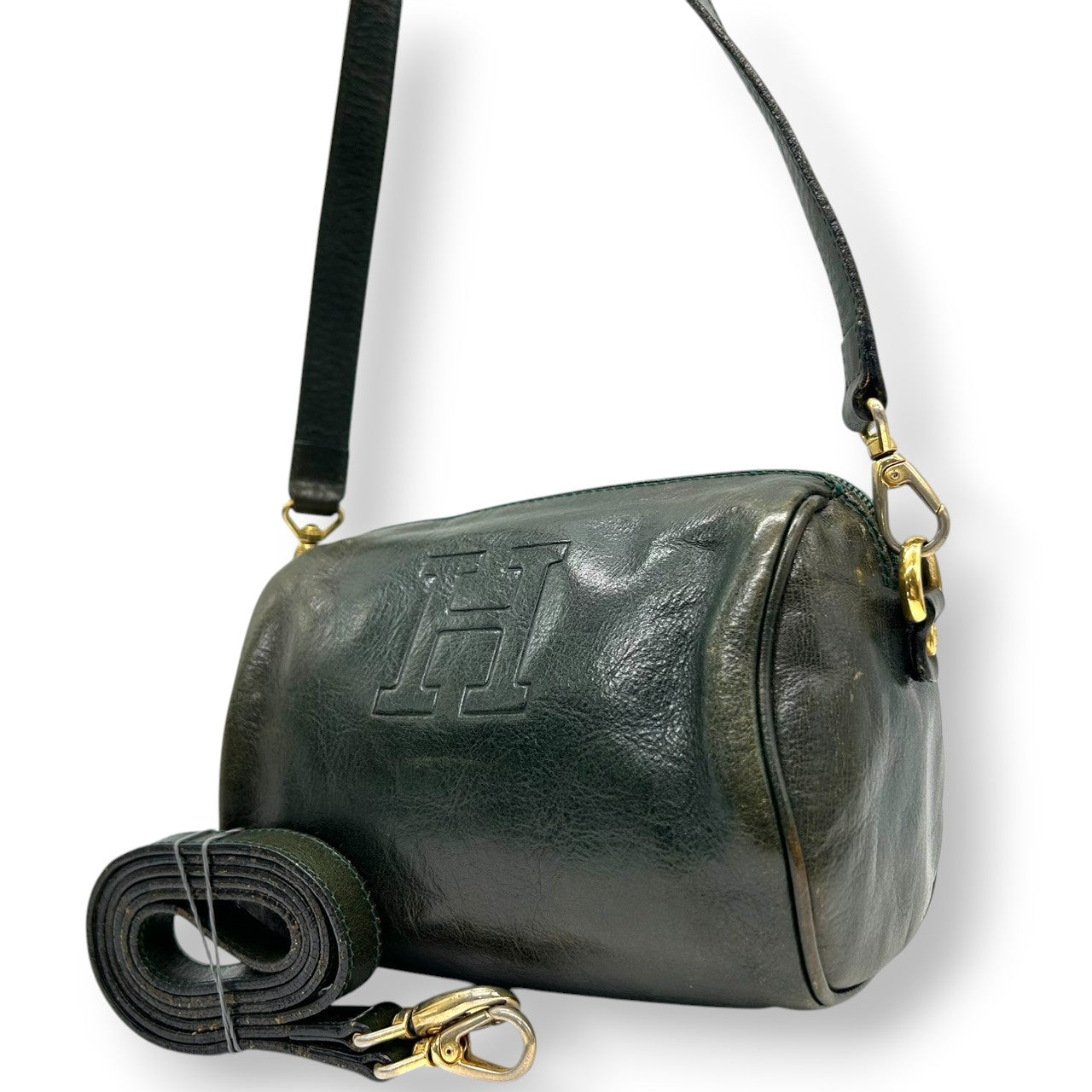 ヒロフ HIROFU 2WAY ショルダーバッグ ポシェット ミニバッグ 斜め掛け可 Hロゴ ドラム 筒型 レザー 本革 ダークグリーン 緑 ヴィンテージ クラシック レディース ハンドバッグ コンパクト レトロ s77