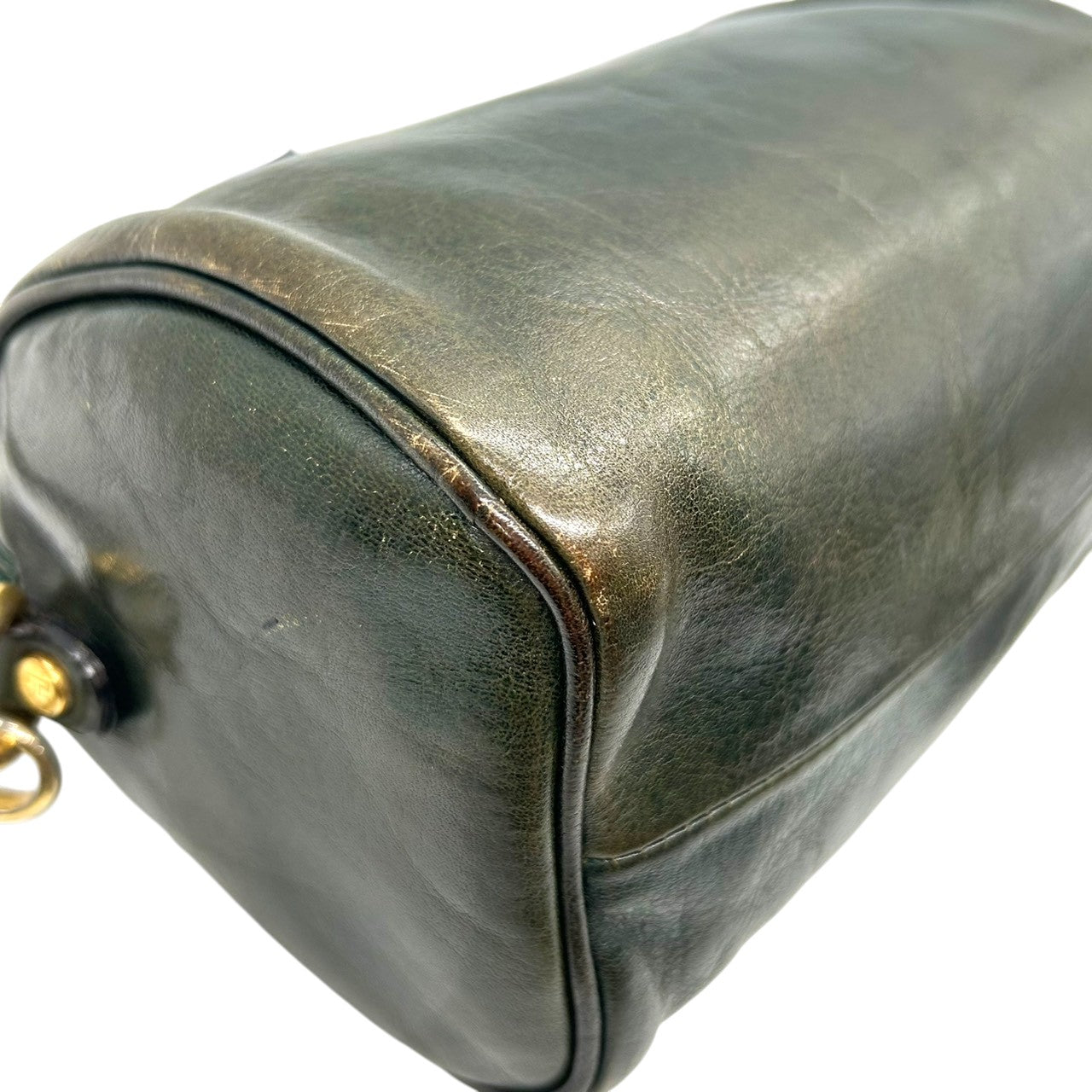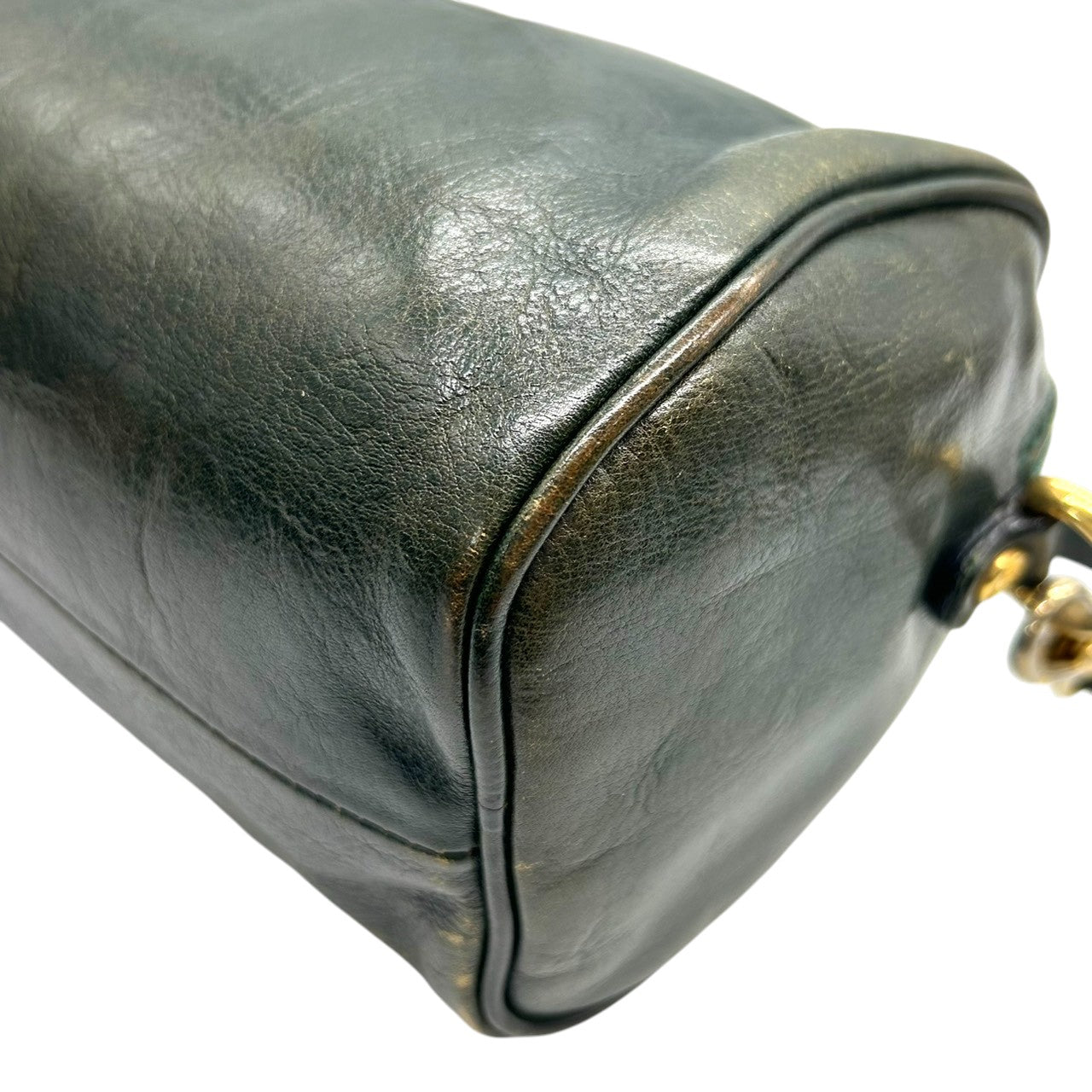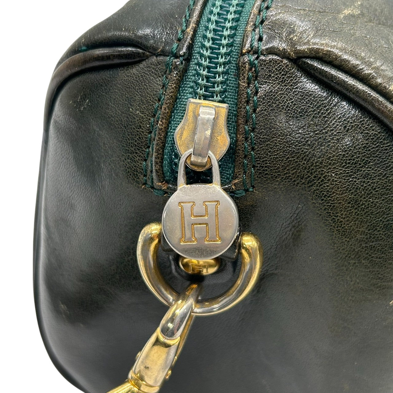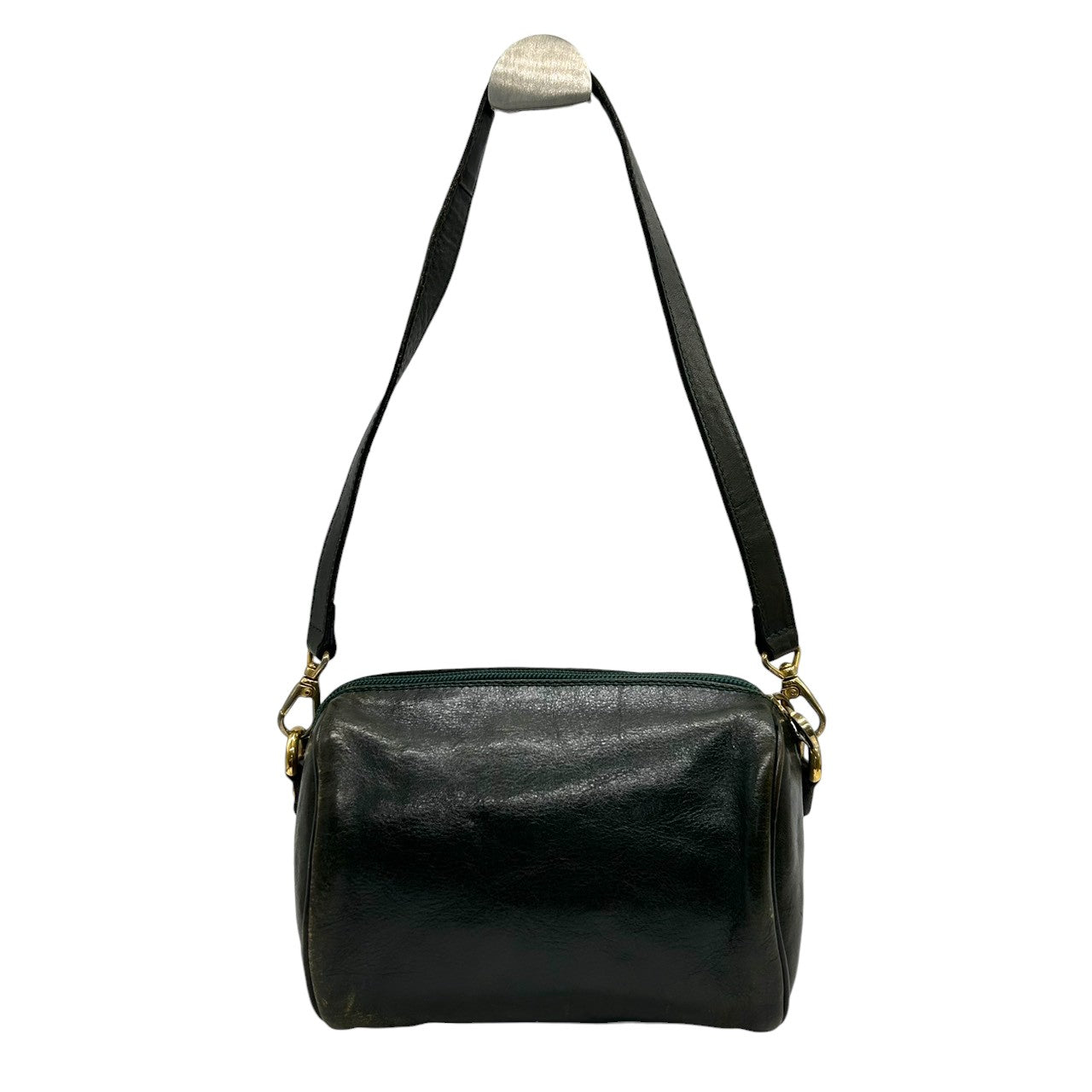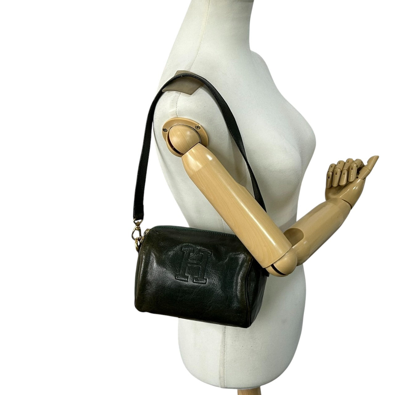 ヒロフ HIROFU 2WAY ショルダーバッグ ポシェット ミニバッグ 斜め掛け可 Hロゴ ドラム 筒型 レザー 本革 ダークグリーン 緑 ヴィンテージ クラシック レディース ハンドバッグ コンパクト レトロ s77