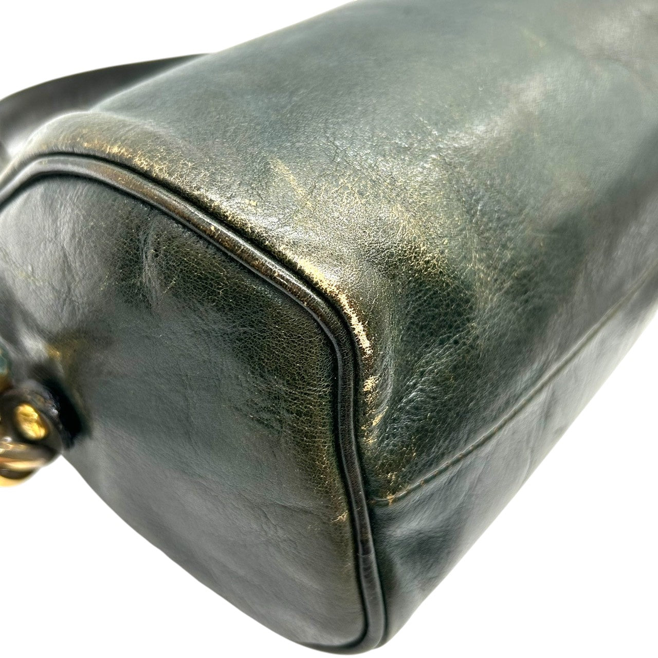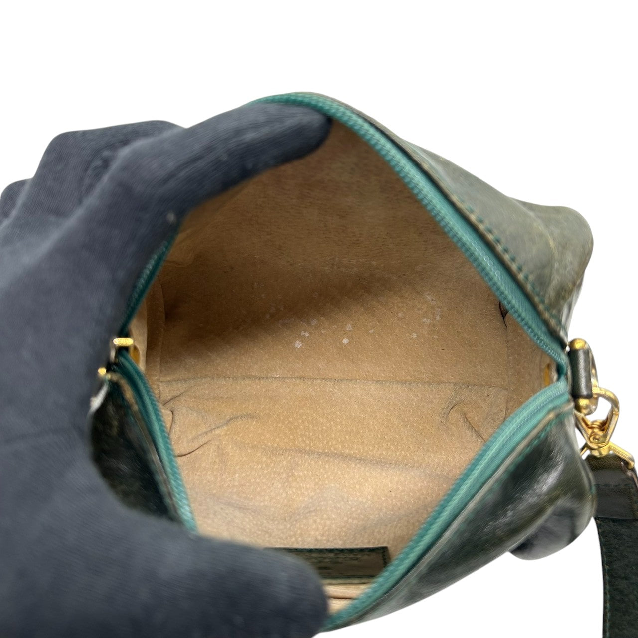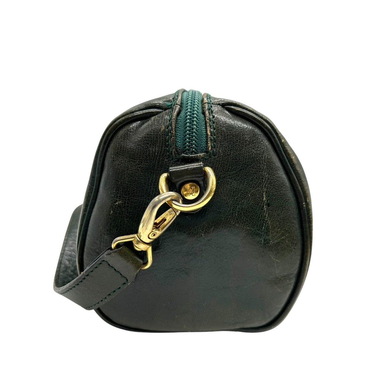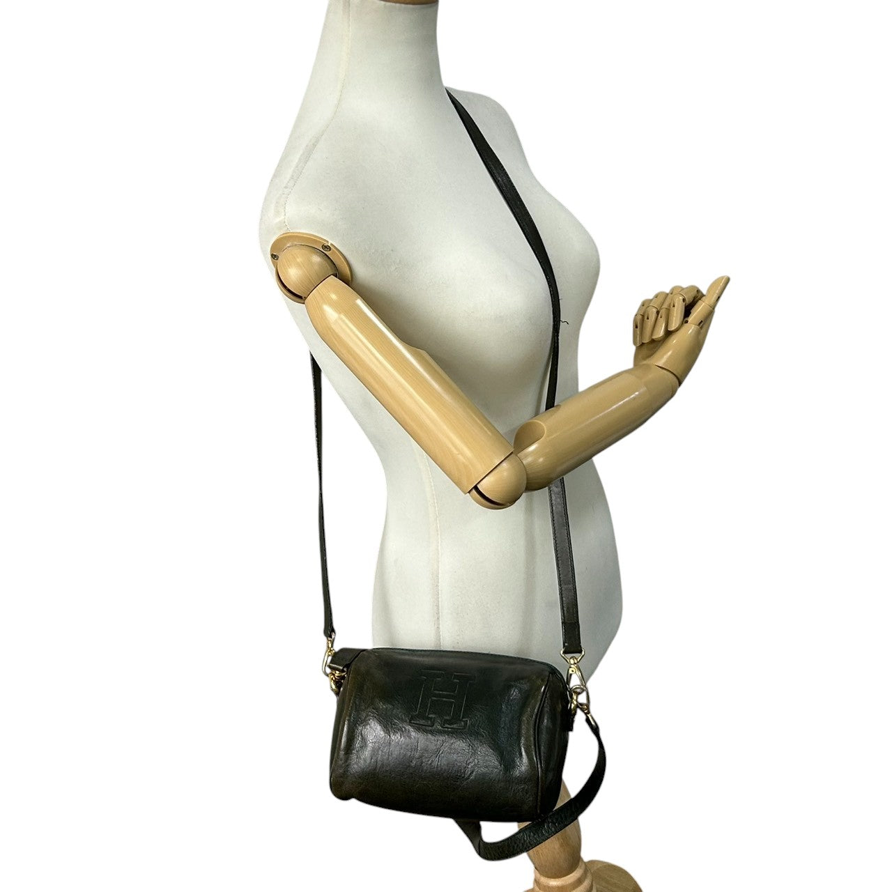 ヒロフ HIROFU 2WAY ショルダーバッグ ポシェット ミニバッグ 斜め掛け可 Hロゴ ドラム 筒型 レザー 本革 ダークグリーン 緑 ヴィンテージ クラシック レディース ハンドバッグ コンパクト レトロ s77