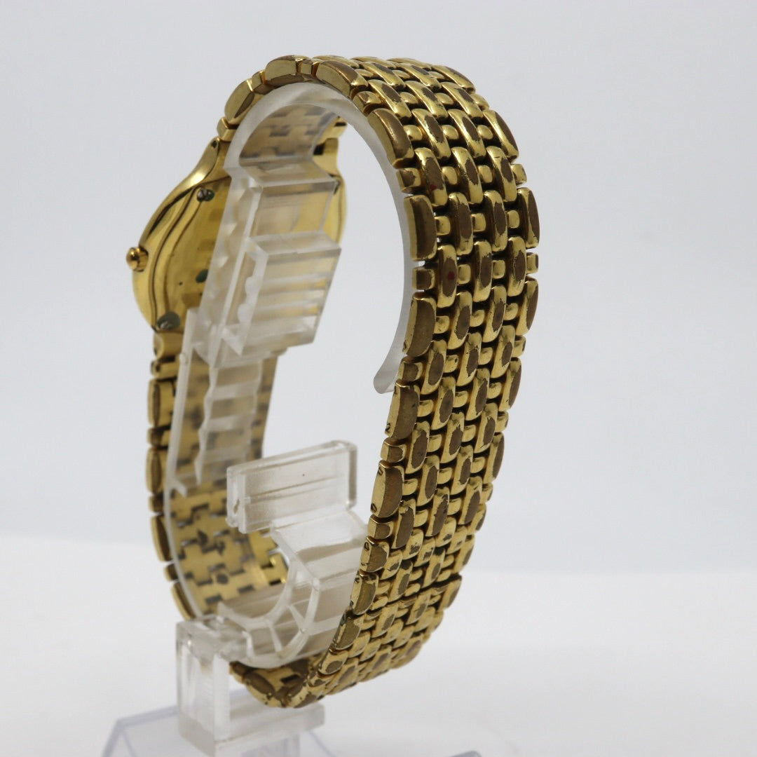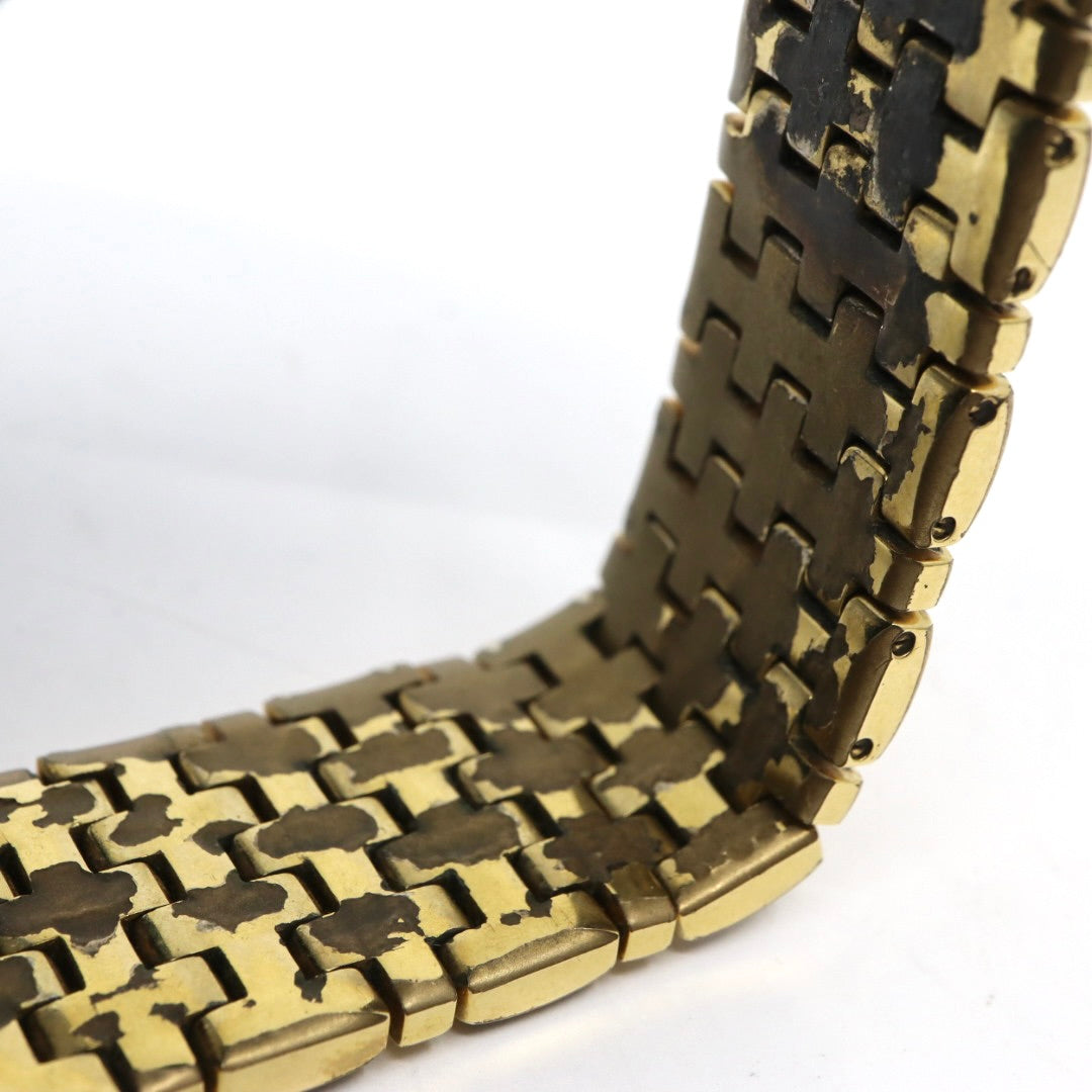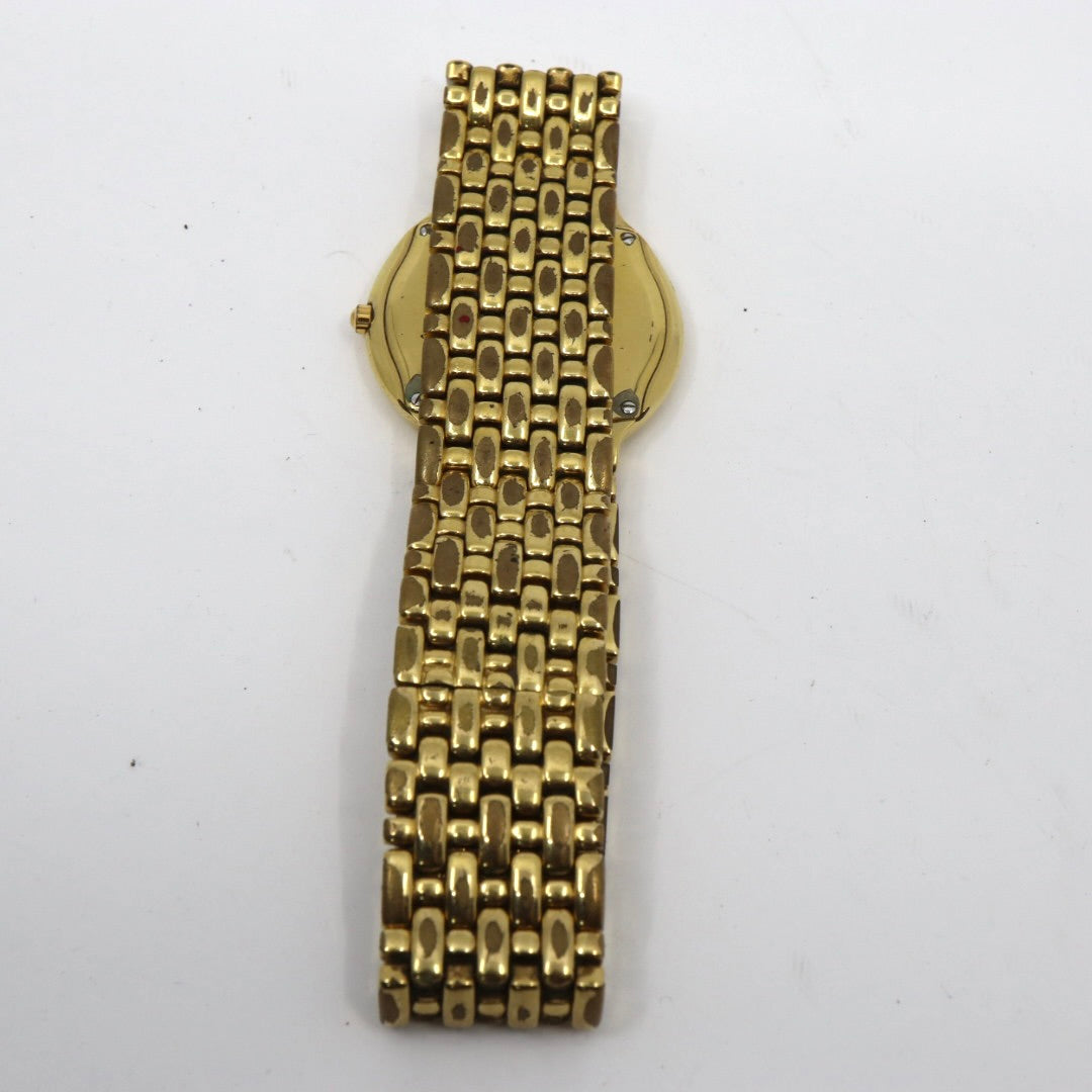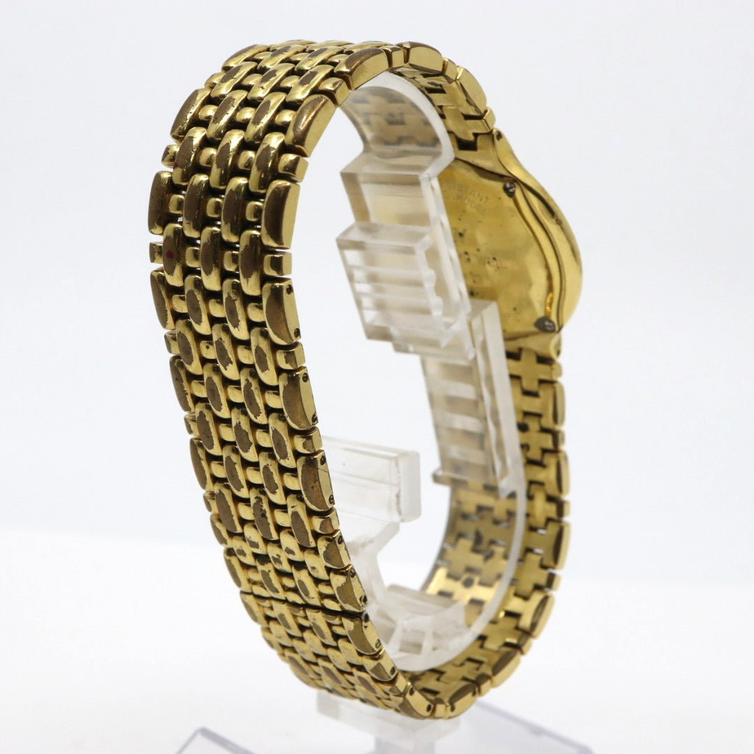 | 商品説明 | スイス独立系メゾンとして知られるRaymond Weilが1990年代に手掛けた「Fidélio(フィデリオ)」は、クラシック音楽へのオマージュを込めたエレガントなコレクション。本作はシンプルなラウンドケースに、華やかなクリスタルベゼル(約94石)を配したラグジュアリーな一本で、シャンパンゴールドの文字盤が上品な輝きを添えます。 ケースおよびブレスレットは18Kゴールド電気メッキを施したステンレススチール製で、見た目の華やかさと耐久性を両立。6時位置には日付表示を配置し、クラシックなデザインの中に実用性もしっかり備えています。ユニセックスで着用できる32mmのサイズ感は、日常使いからフォーマルまで幅広くマッチします。 Raymond Weilはスイスの家族経営ブランドとして知られ、上質なスイス製時計を手の届きやすい価格帯で展開してきたことで世界中で支持を集めています。このFidélioはその精神を体現する、端正で普遍的な魅力を持つモデルです。 【商品詳細】 ・ブランド:Raymond Weil ・モデル:Fidélio ・ムーブメント:クオーツ ・ケース素材:18Kゴールド電気メッキ/ステンレススチール ・ブレスレット素材:18Kゴールド電気メッキ/ステンレススチール ・ケース径:32mm ・腕回り:約20cm ・文字盤:シャンパンゴールド、クリスタルベゼル(約94石) ・付属品:なし 【状態】 Aランク。通常使用による軽微な擦れやメッキ薄れが裏蓋・ブレスレットに見られますが、全体として良好な外観を保っています。文字盤・針は視認性良好。クオーツムーブメントは掲載時点で正常に稼働しています。 クラシック音楽に着想を得たFidélioらしい端正な美しさが際立つ一本で、気品ある雰囲気を腕元に添えてくれます。``` |