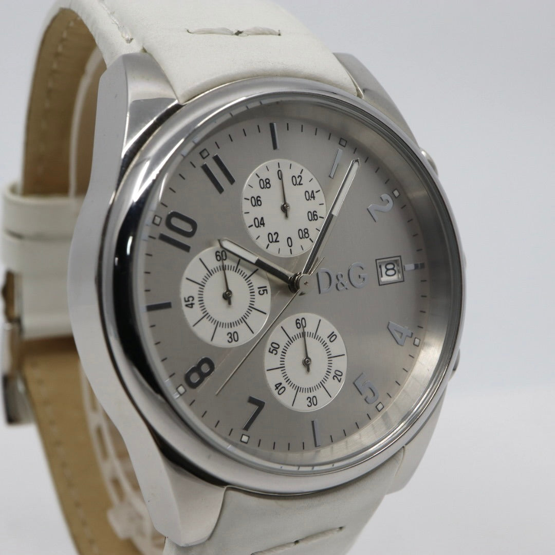 ドルチェ&ガッバーナ DOLCE & GABBANA クロノグラフ 44mm メンズ腕時計 ステンレススチール シルバーダイヤル レザーベルト イタリアデザイン クォーツ G10
