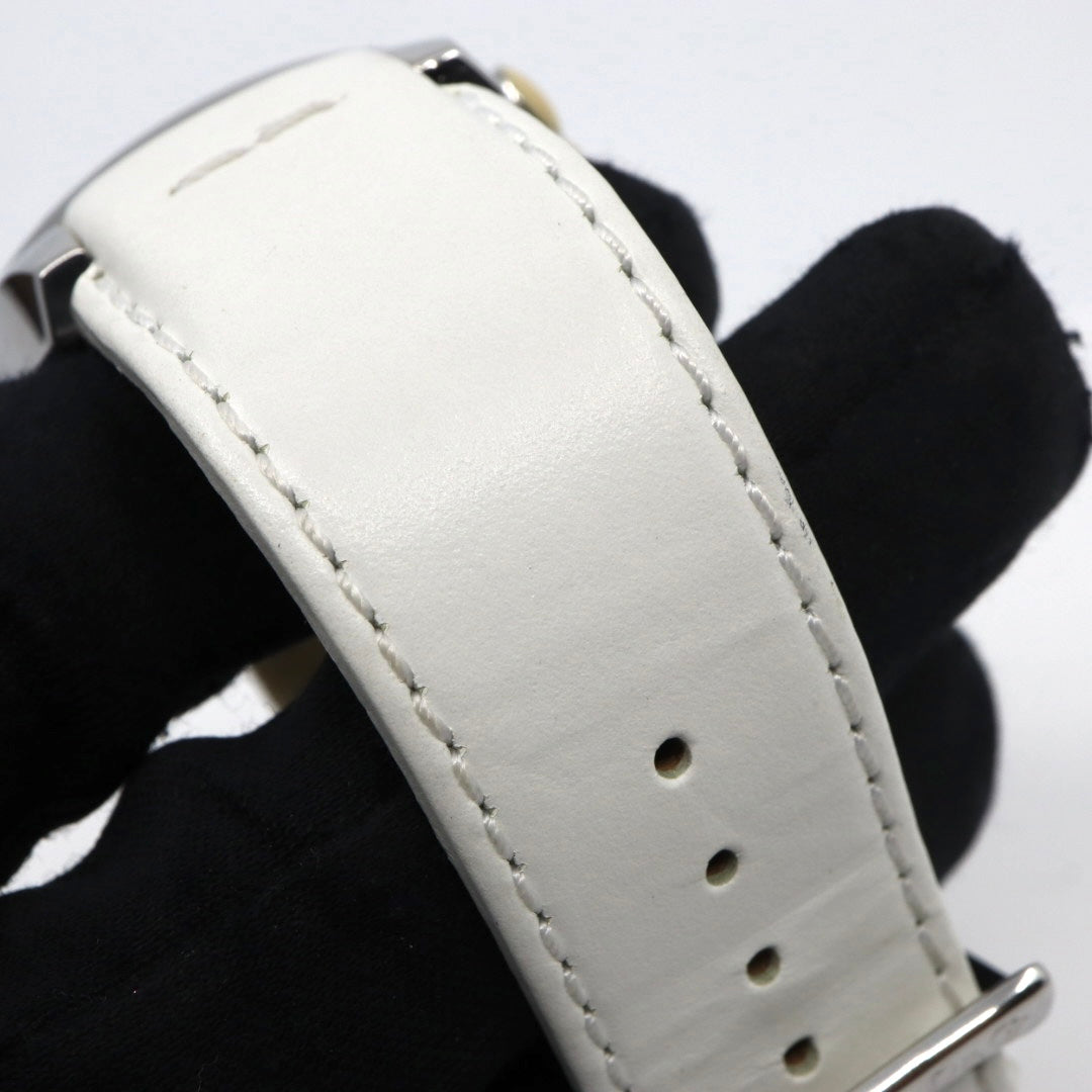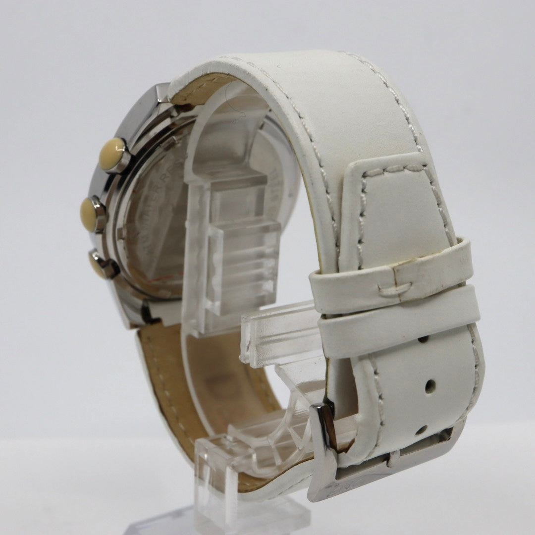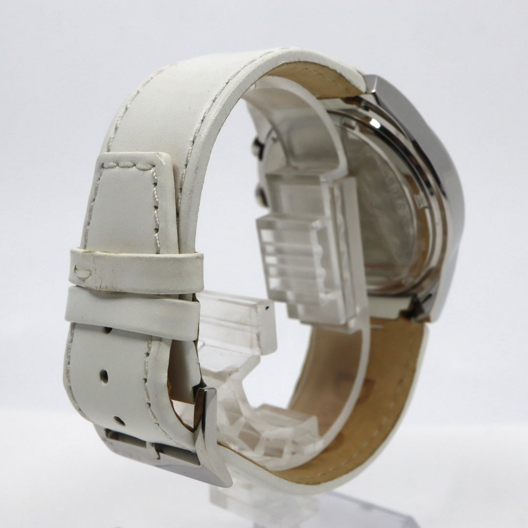 | 商品説明 | ドルチェ&ガッバーナらしい洗練された存在感を放つ、44mmクロノグラフウォッチ。重厚感のあるステンレススチールケースに、ミニマルなシルバーダイヤルを合わせた、2000年代D&Gらしいモードな佇まいが魅力の一本です。 ダイヤルには3カウンターのクロノグラフを配置し、視覚的なバランスの良さと実用性を両立。シンプルなインデックスや端正なハンズが映えるデザインで、カジュアルからドレススタイルまで幅広く合わせやすい洗練された印象に仕上がっています。 イタリアブランドならではのエレガンスとエッジを併せ持つデザインに、クォーツムーブメントの扱いやすさを備え、日常のアクセサリーとしても存在感を放ちます。ホワイトレザーストラップが全体のモダンな印象を引き立て、スタイルのアクセントとしても活躍するタイムピースです。 【状態】 作動良好。わずかな使用感が見られますが、全体的にきれいな印象です。 |