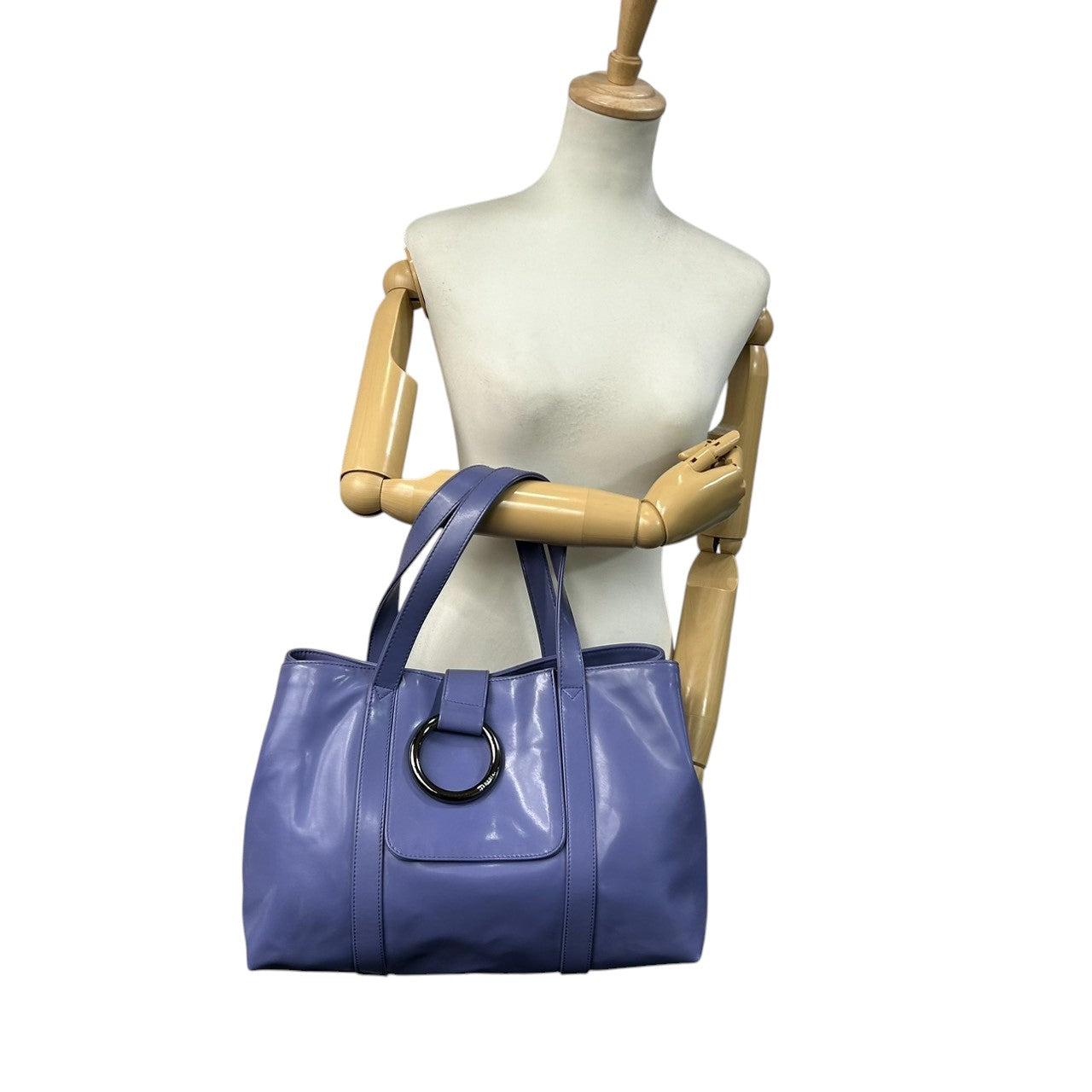 【美品】セコイア SEQUOIA トートバッグ ハンドバッグ レザー Y2K vintage 本革 ブルー パープル 青 紫 リング金具 シルバー金具 ワンショルダー 肩掛け A4収納可 通勤 通学 フランス パリ レディース 鞄 かばん s30