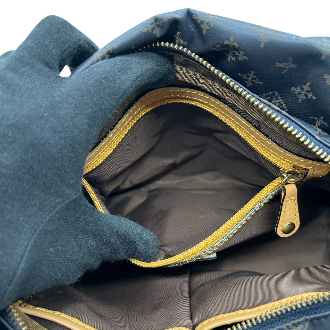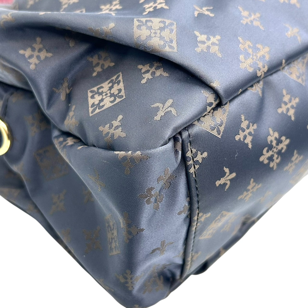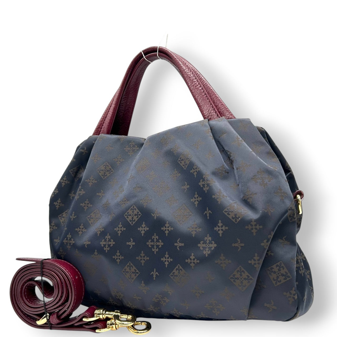 【極美品】ラシット russet 2WAY ショルダーバッグ ハンドバッグ 斜め掛け可 ナイロン レザー 軽量 モノグラム 総柄 ネイビー 紺 レッド 赤 バイカラー タック ギャザー レディース お出かけ 旅行 カジュアル 鞄 かばん s92