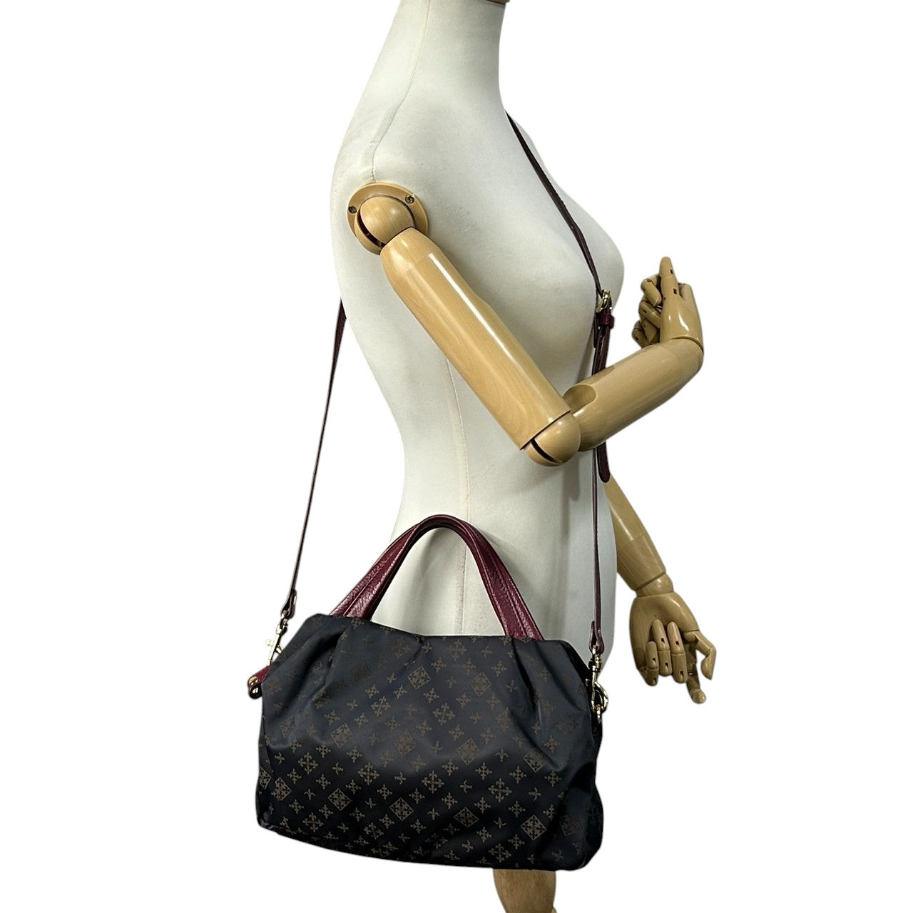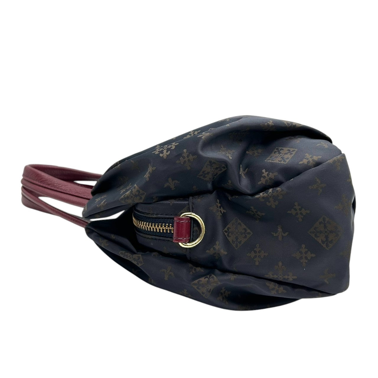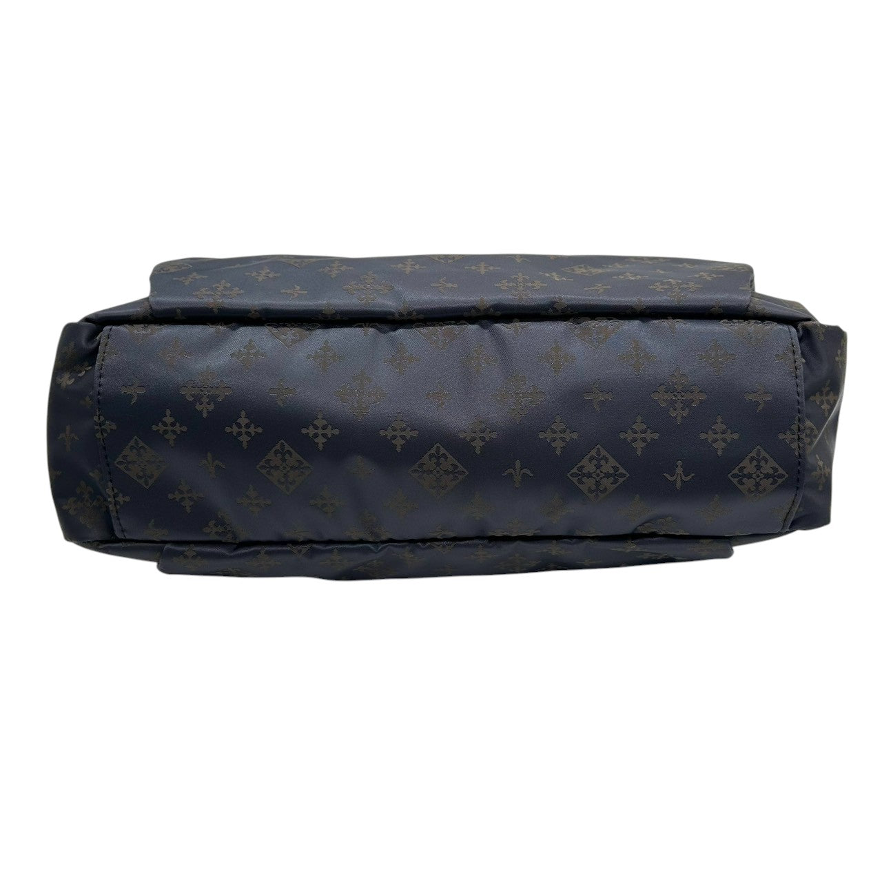 【極美品】ラシット russet 2WAY ショルダーバッグ ハンドバッグ 斜め掛け可 ナイロン レザー 軽量 モノグラム 総柄 ネイビー 紺 レッド 赤 バイカラー タック ギャザー レディース お出かけ 旅行 カジュアル 鞄 かばん s92