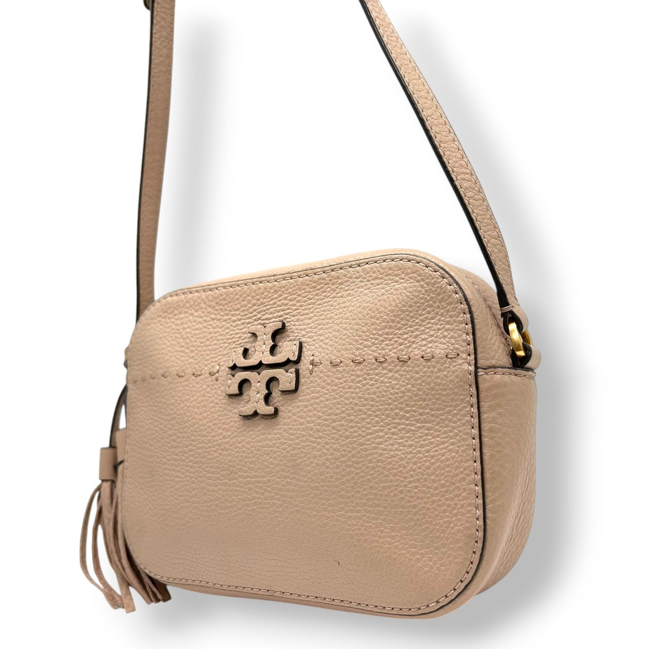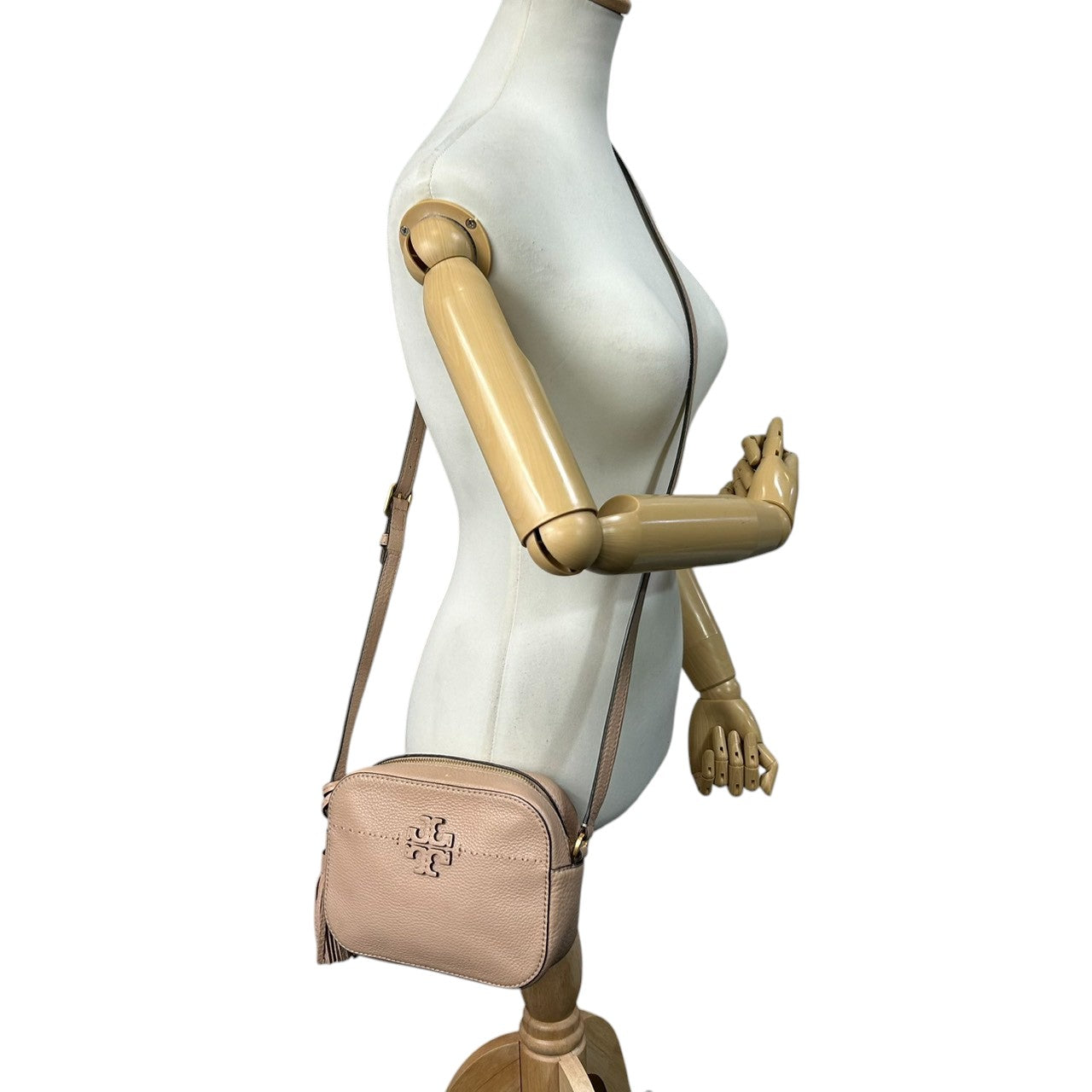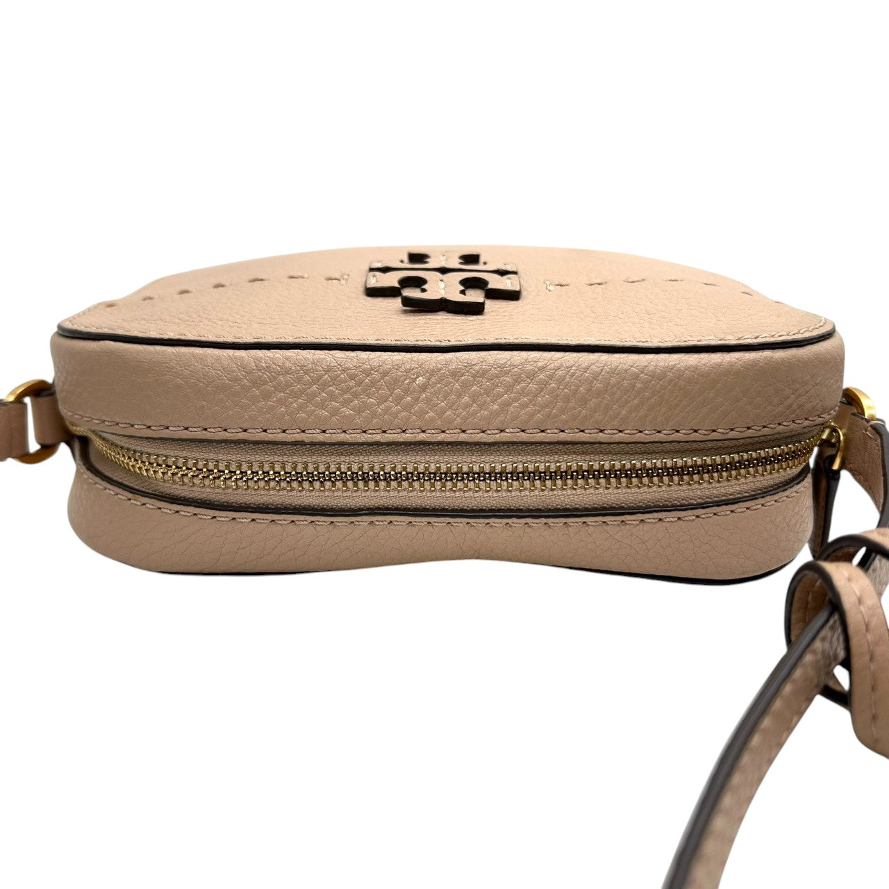 【極美品】トリーバーチ マックグロー ショルダーバッグ カメラバッグ ポシェット 斜め掛け可 カメラバッグ レザー 本革 ピンクベージュ レディース ダブルT ロゴ TORY BURCH McGraw クロスボディ ミニバッグ スクエア s94