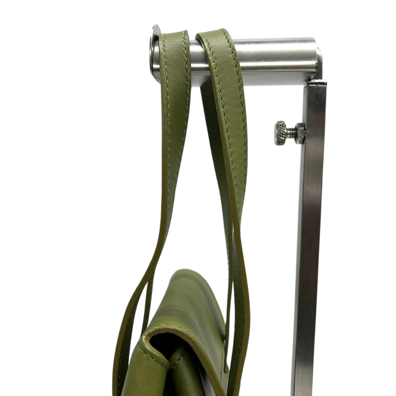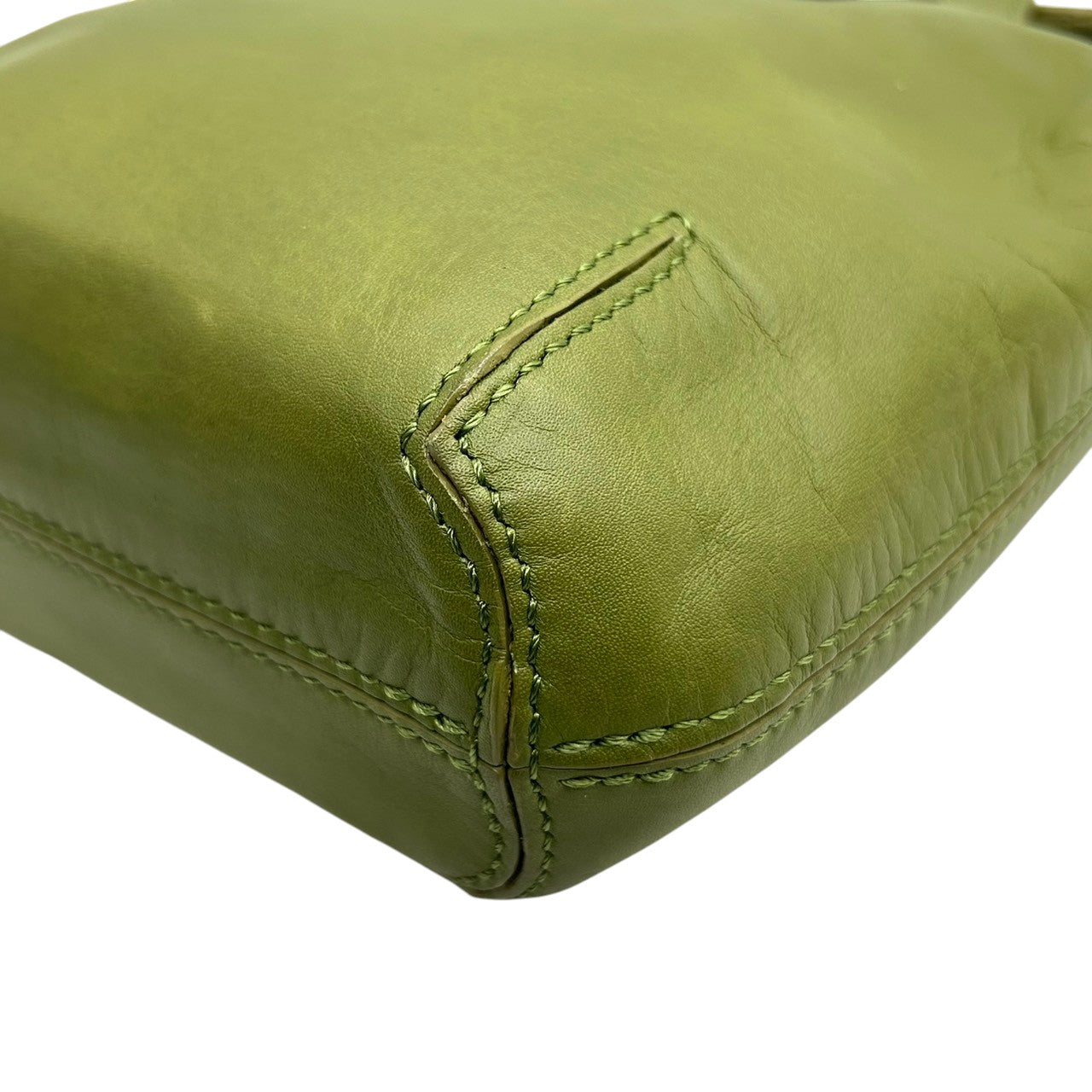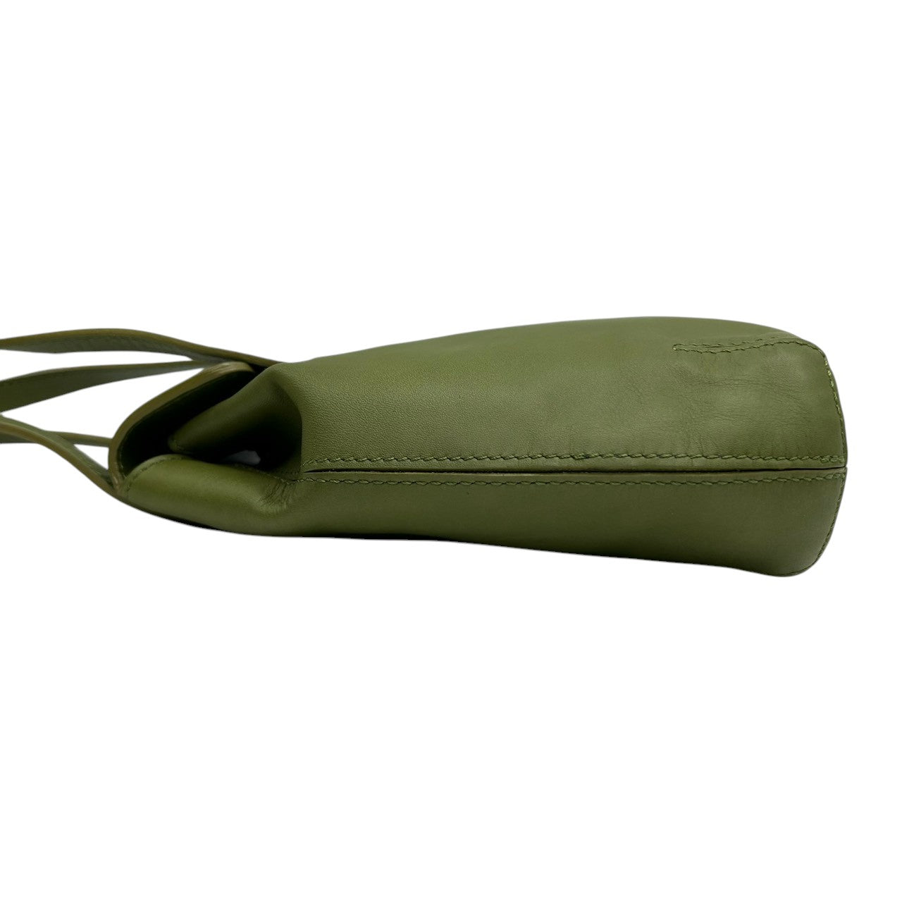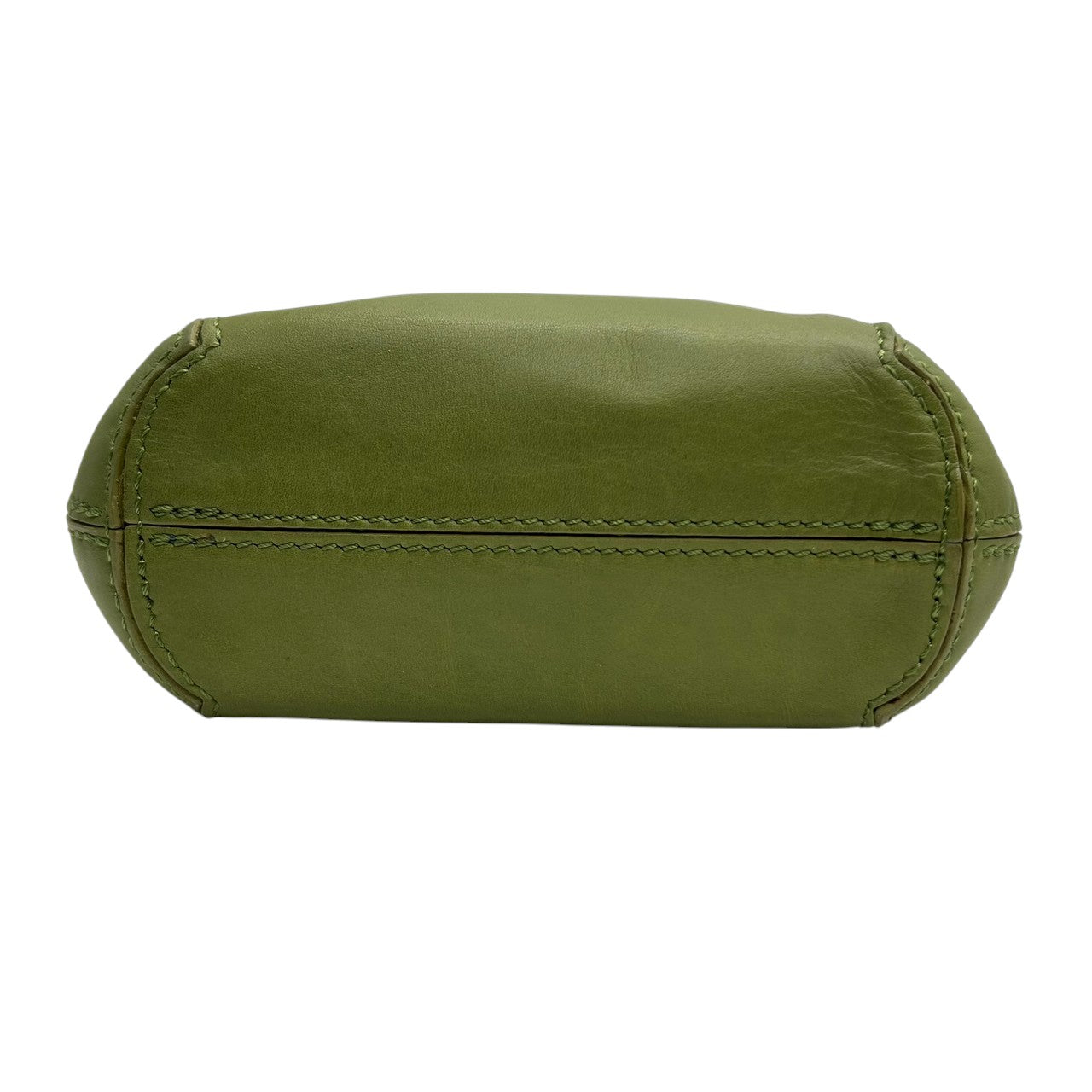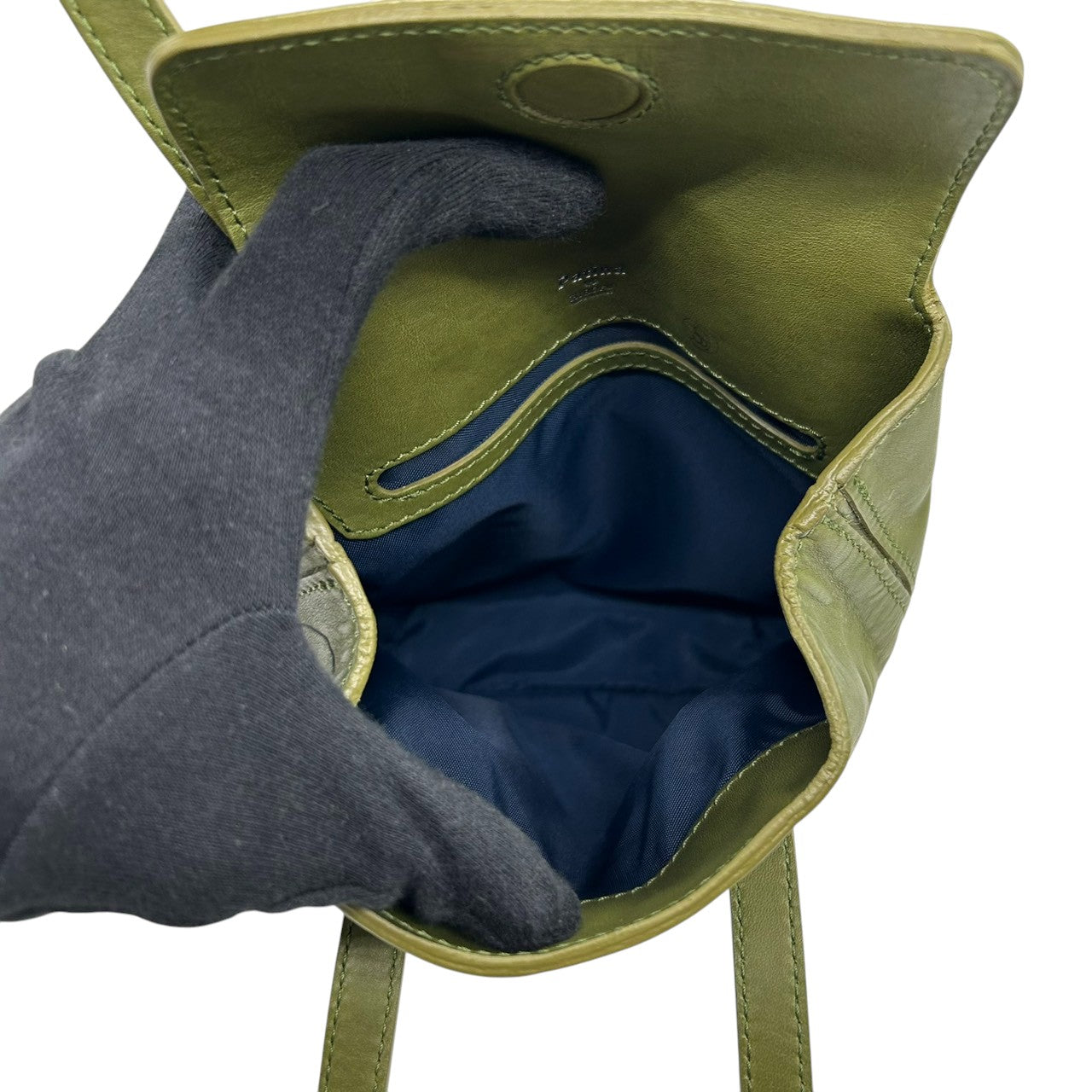 【美品】ヒロフ HIROFU ハンドバッグ ミニトートバッグ ランチバッグ レザー 本革 グリーン オリーブ カーキ 抹茶色 イタリア製 レディース コンパクト シンプル カジュアル ロゴ型押し 自立可 お出かけ デート 散歩 希少 Patina s94