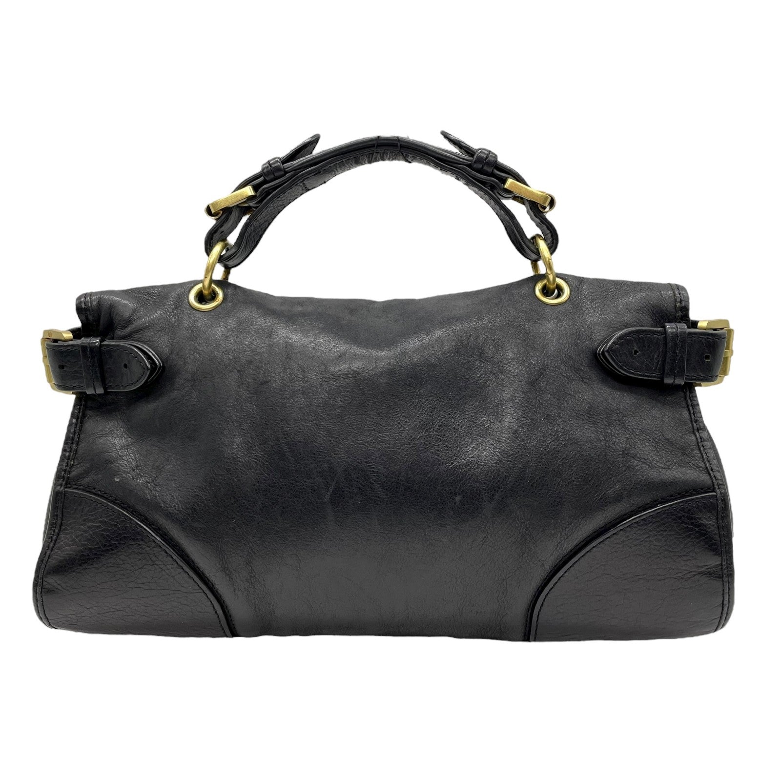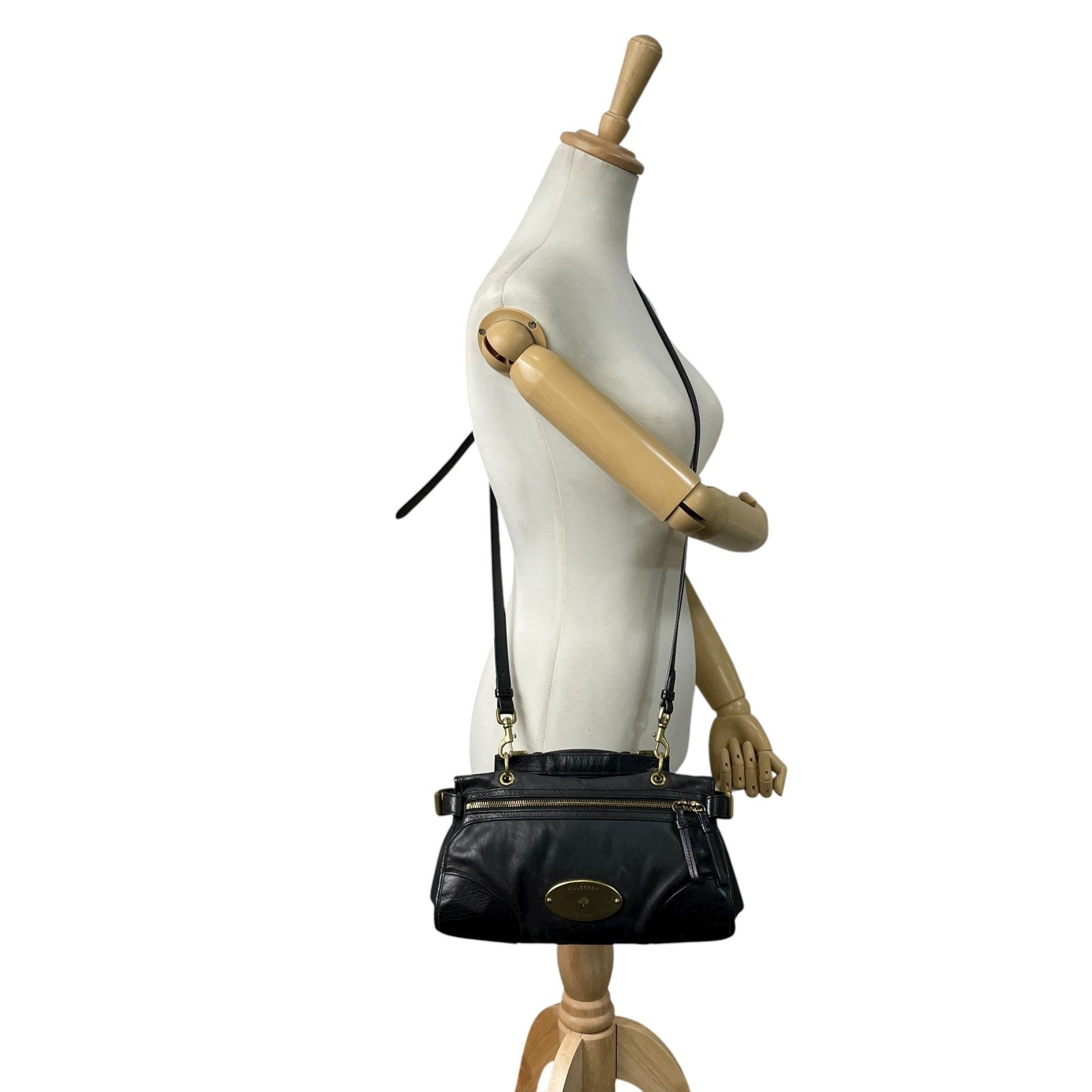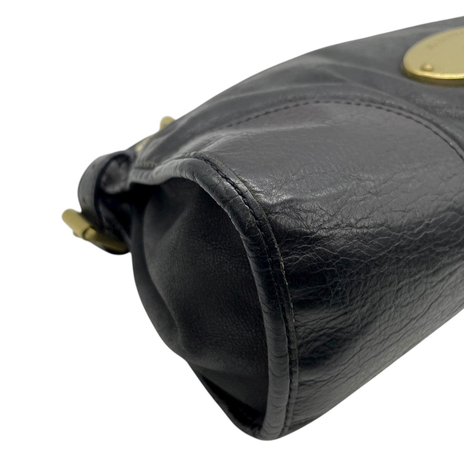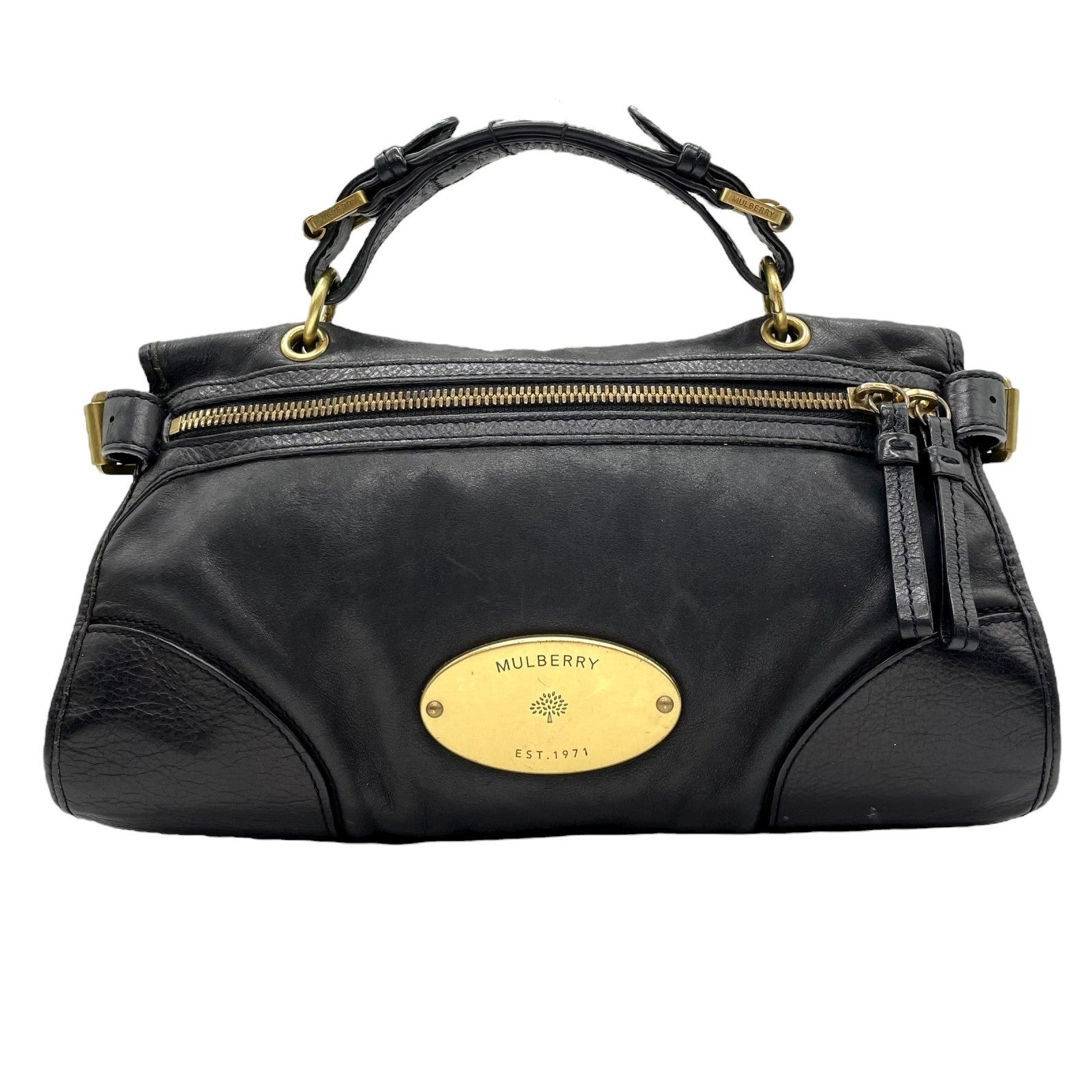 MULBERRY マルベリー 2WAY ハンドバッグ ショルダーバッグ ブラック レザー ゴールド金具 オーバルロゴプレート トップハンドル ヴィンテージ レディース K12