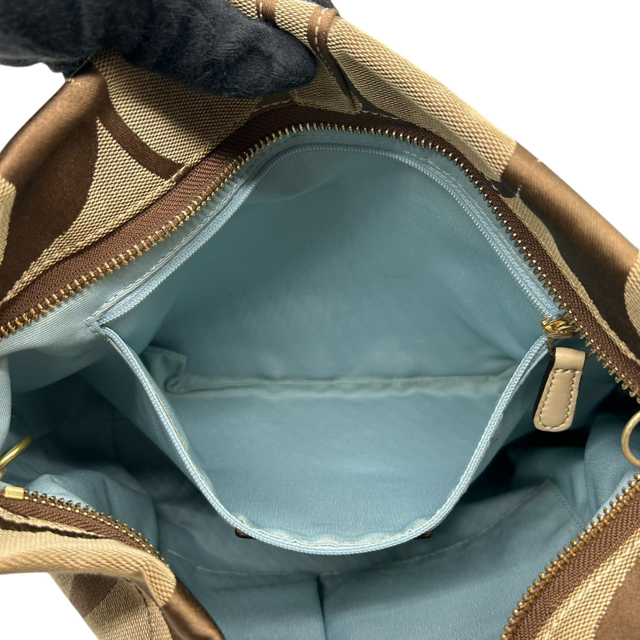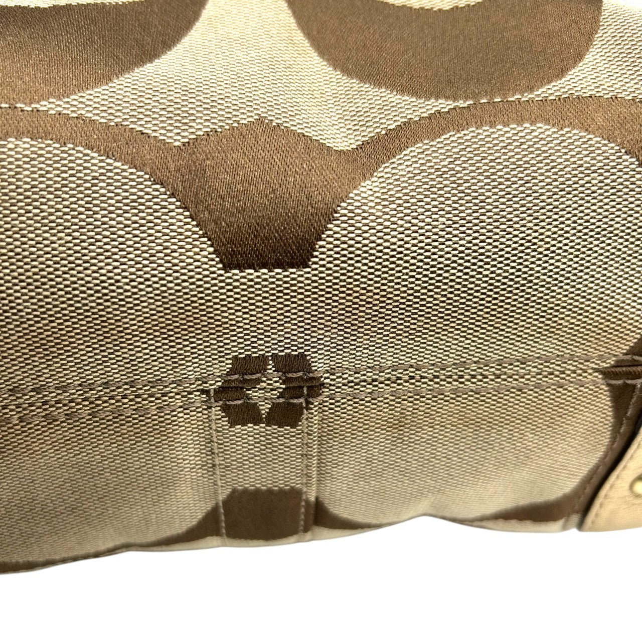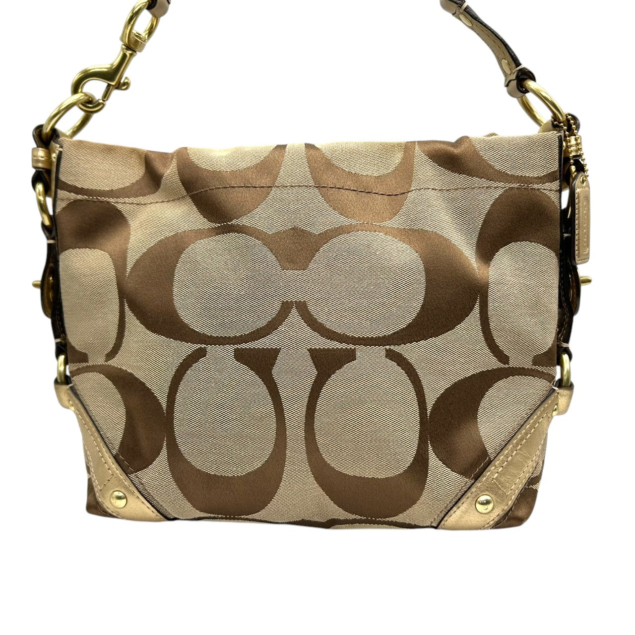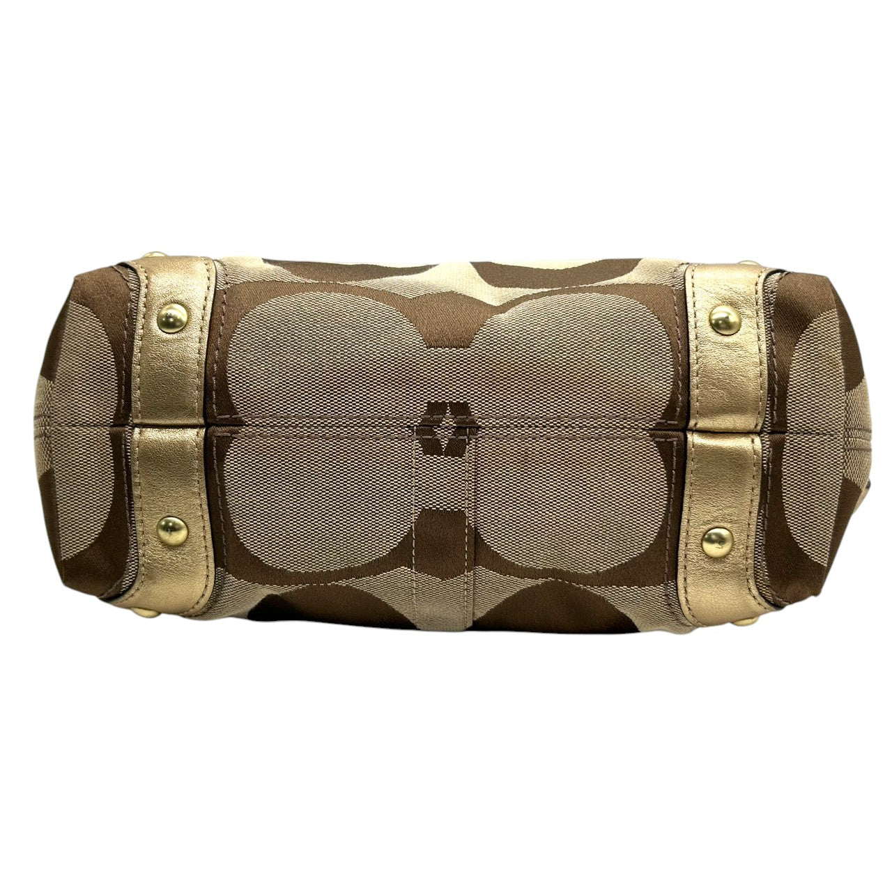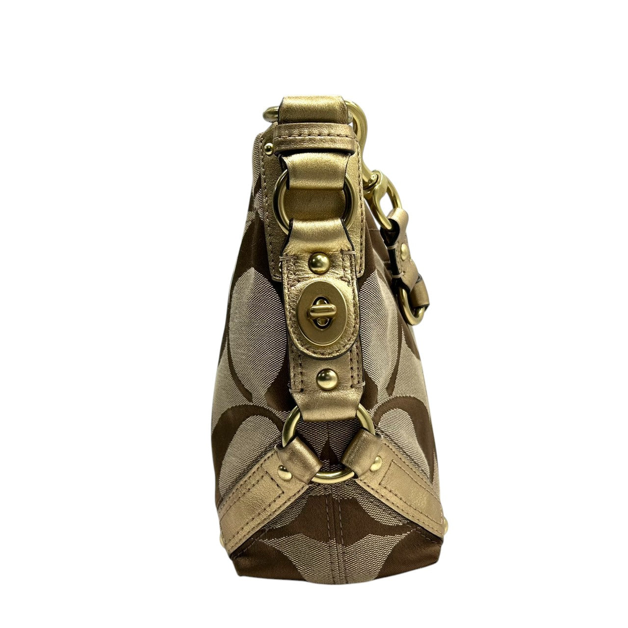【美品】コーチ COACH ゾーイ ショルダーバッグ ハンドバッグ ホーボーバッグ 肩掛け シグネチャー オプアート キャンバス メタリックレザー ゴールド ベージュ レディース チャーム付 軽量 大容量 エレガント フェミニン デート お出かけ 総柄 E6