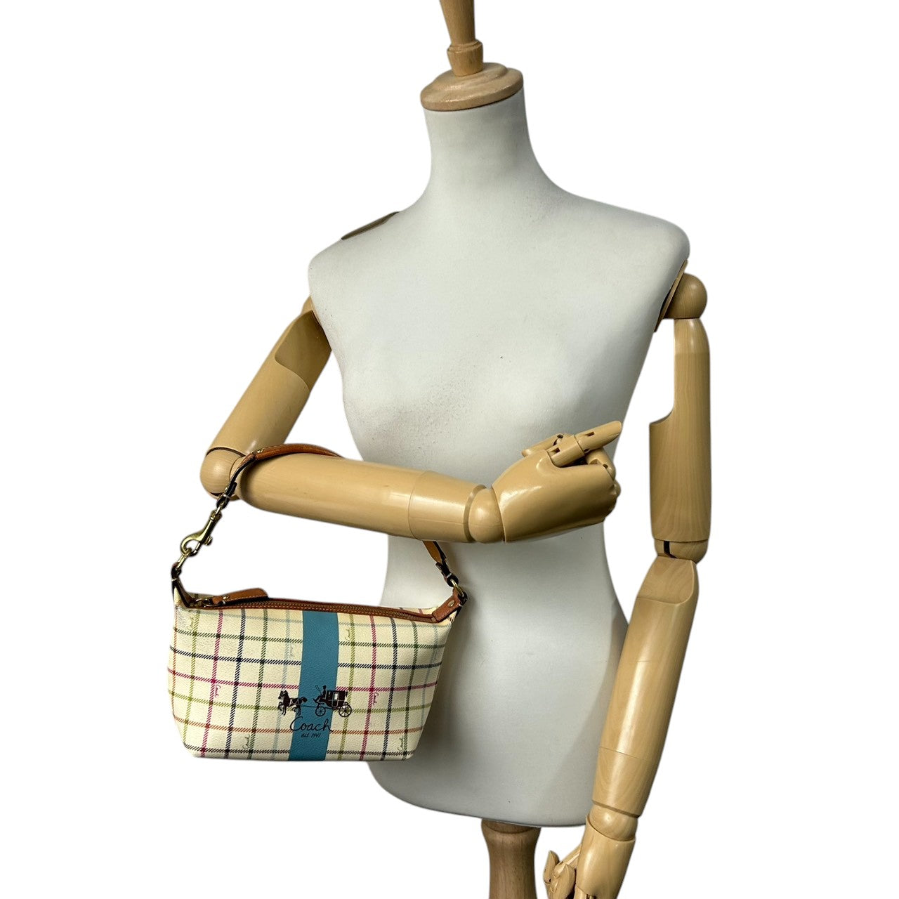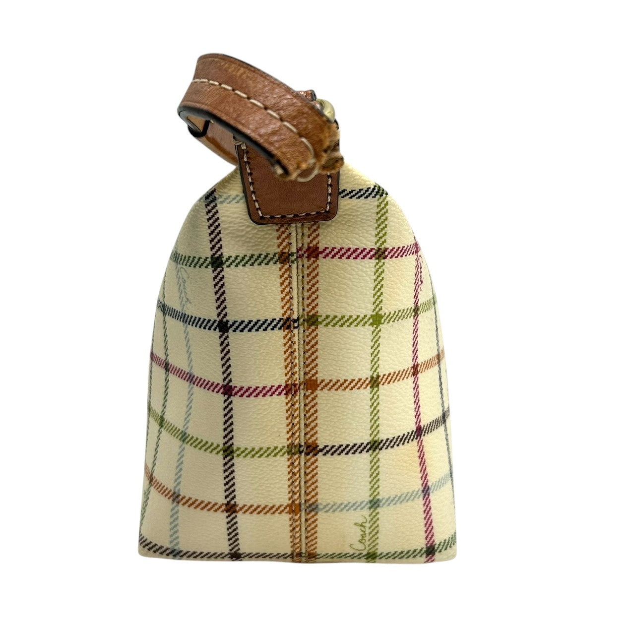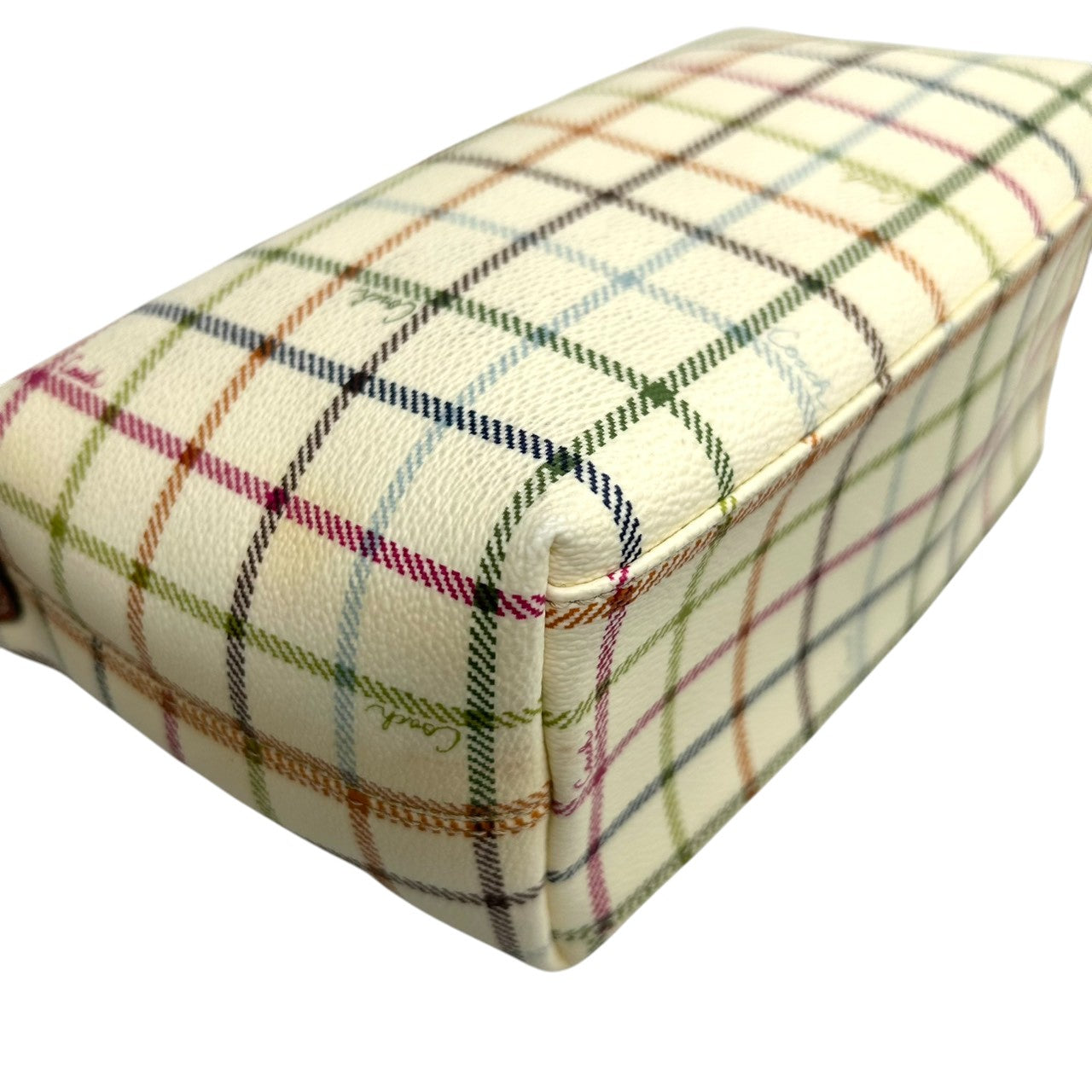 コーチ COACH タッターソール チェック柄 アクセサリーポーチ ハンドバッグ ミニバッグ 41879 マルチカラー PVC レザー 本革 ホワイト クリーム 系 馬車ロゴ ホースアンドキャリッジ 軽量 ランチトート サブバッグ レディース s2