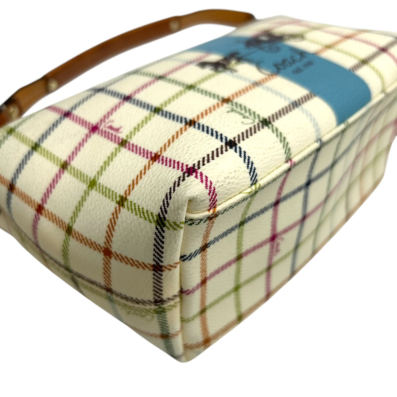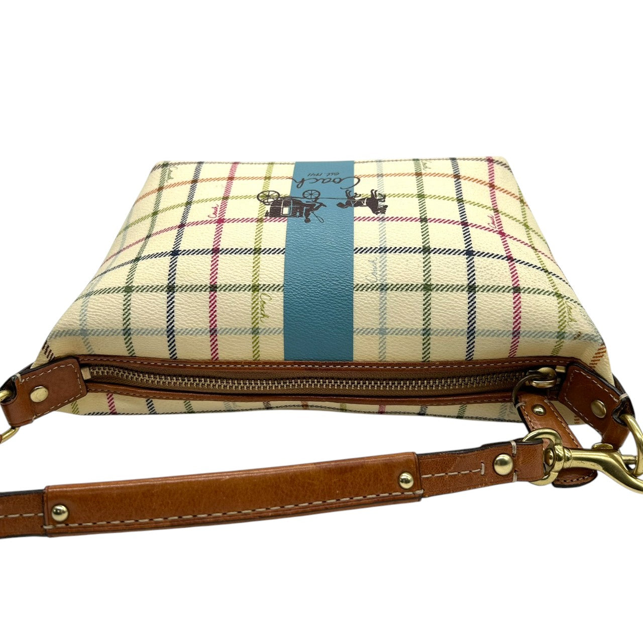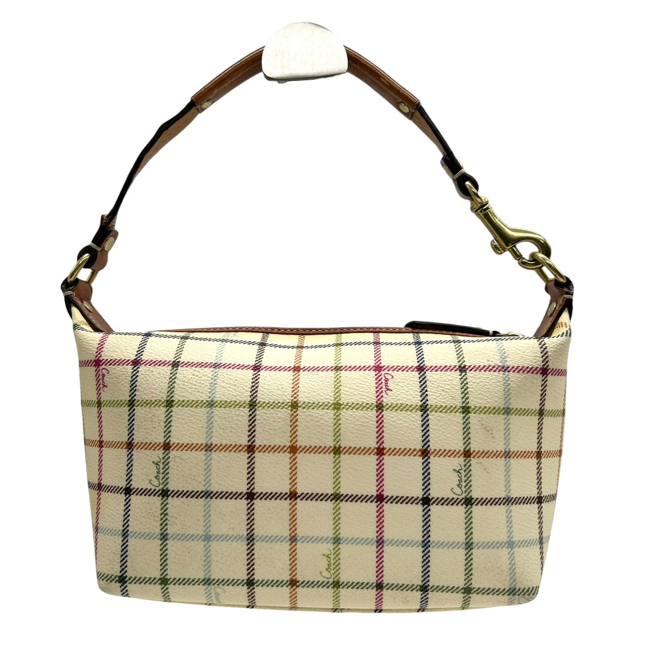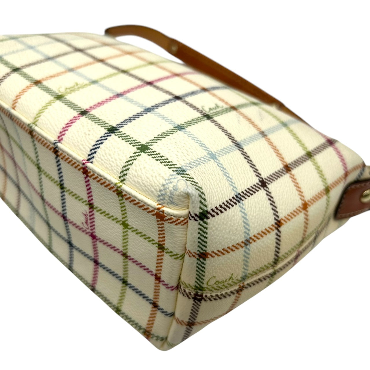 コーチ COACH タッターソール チェック柄 アクセサリーポーチ ハンドバッグ ミニバッグ 41879 マルチカラー PVC レザー 本革 ホワイト クリーム 系 馬車ロゴ ホースアンドキャリッジ 軽量 ランチトート サブバッグ レディース s2