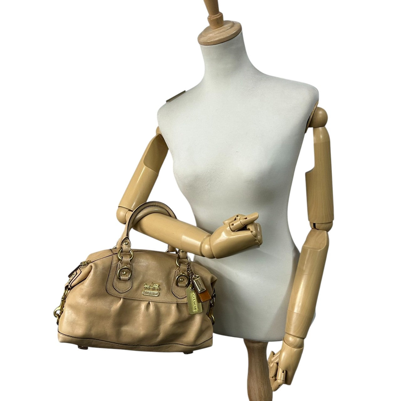 美品 コーチ COACH マディソン サブリナ 12937 ショルダーバッグ ハンドバッグ 2WAY ミニボストン ドクターズバッグ レザー 本革 ベージュ キャメル 馬車金具 ロゴチャーム レディース 肩掛け ワンショルダー 上品 高級 鞄 カバン s85