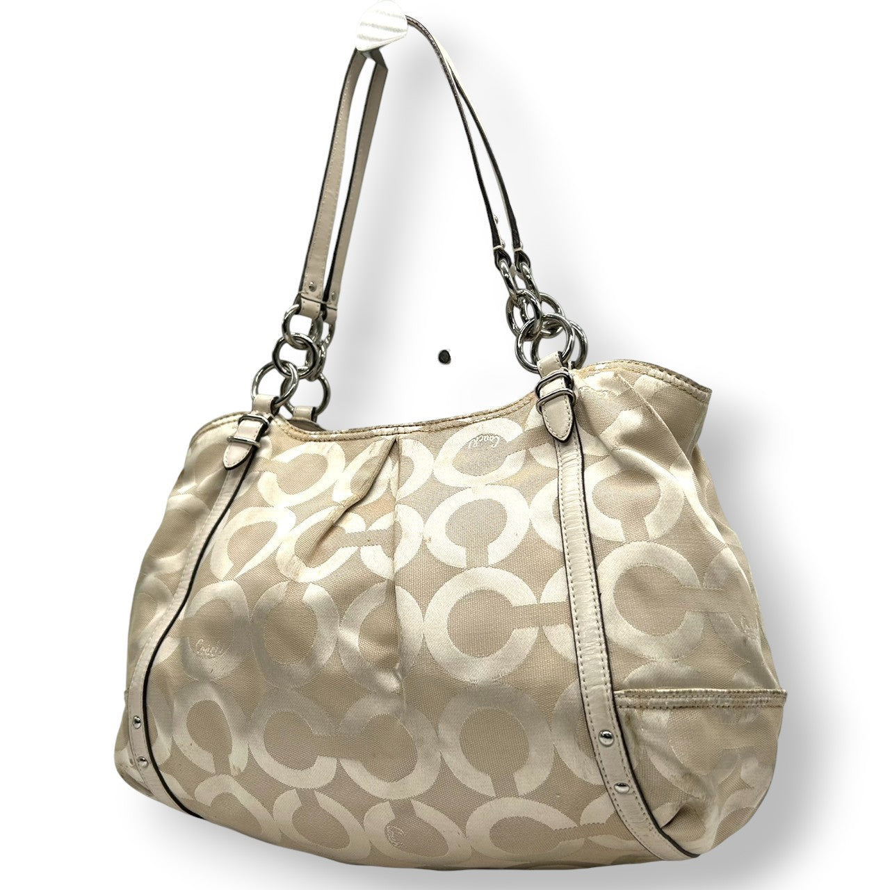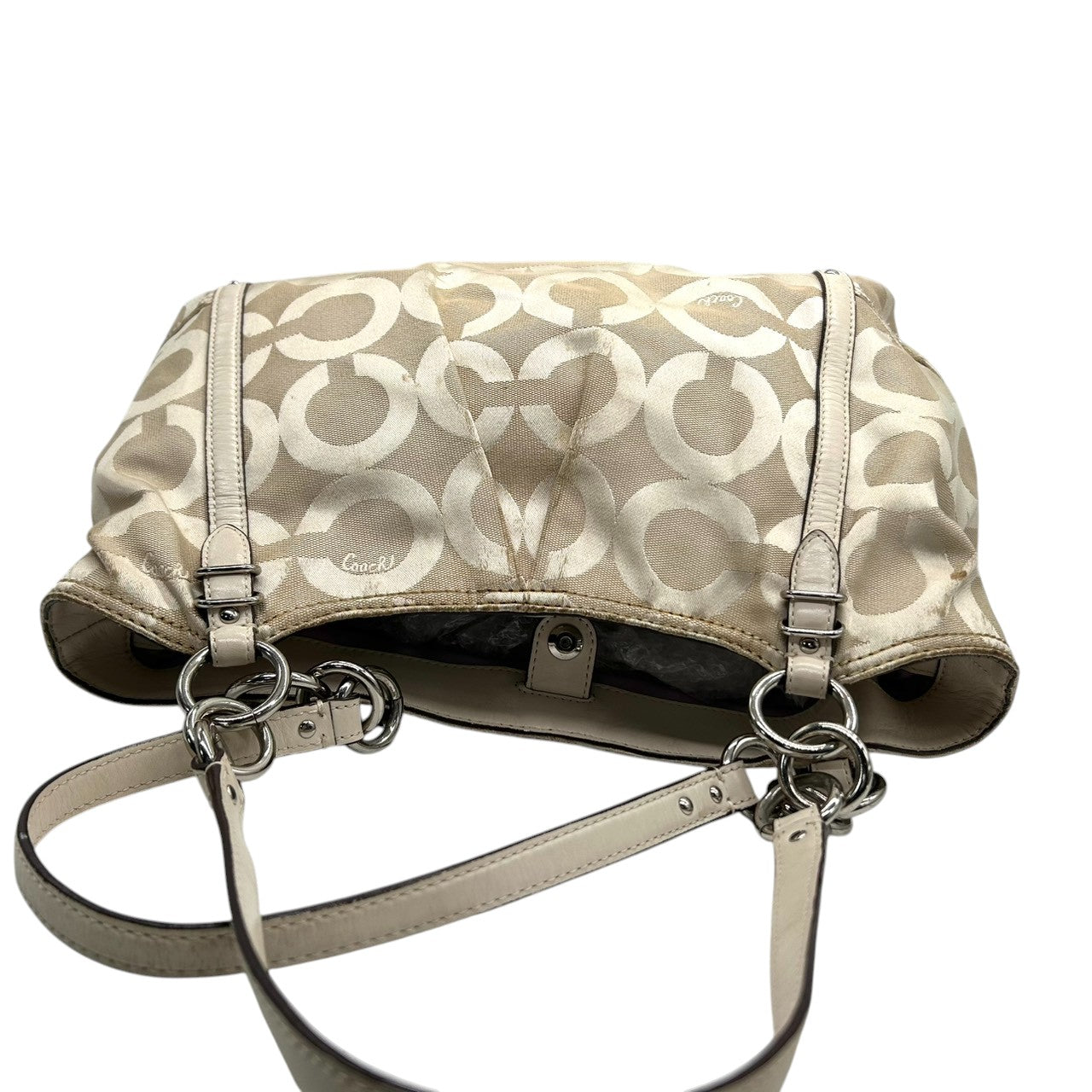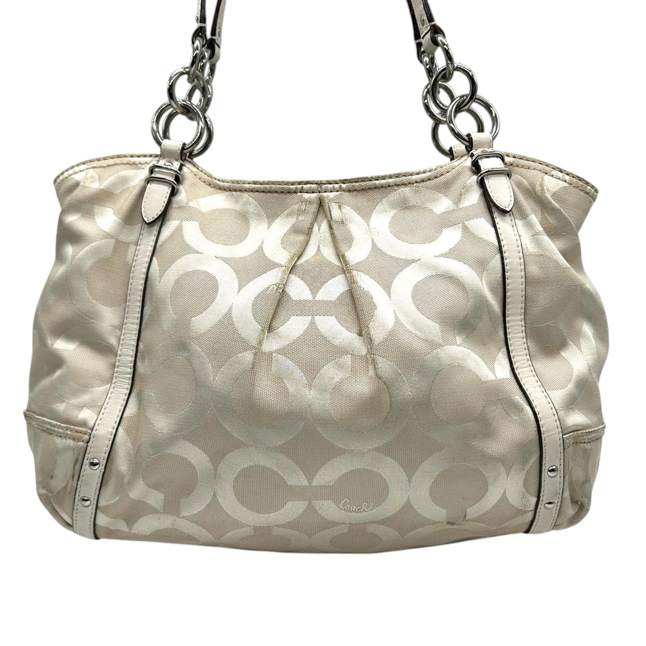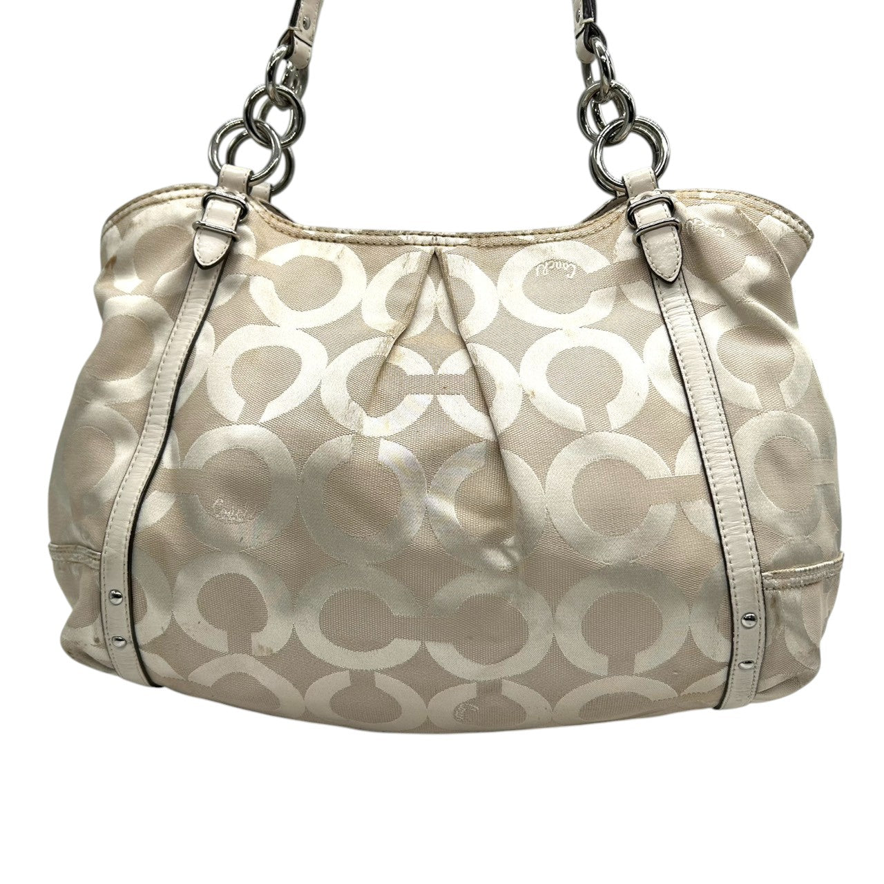 コーチ COACH アレクサンドラ 16233 マディソン オプアート トートバッグ ショルダーバッグ キャンバス レザー ベージュ アイボリー チェーン レディース 肩掛け ワンショルダー 大容量 エレガント ロゴ 鞄 カバン 通勤 通学 E8