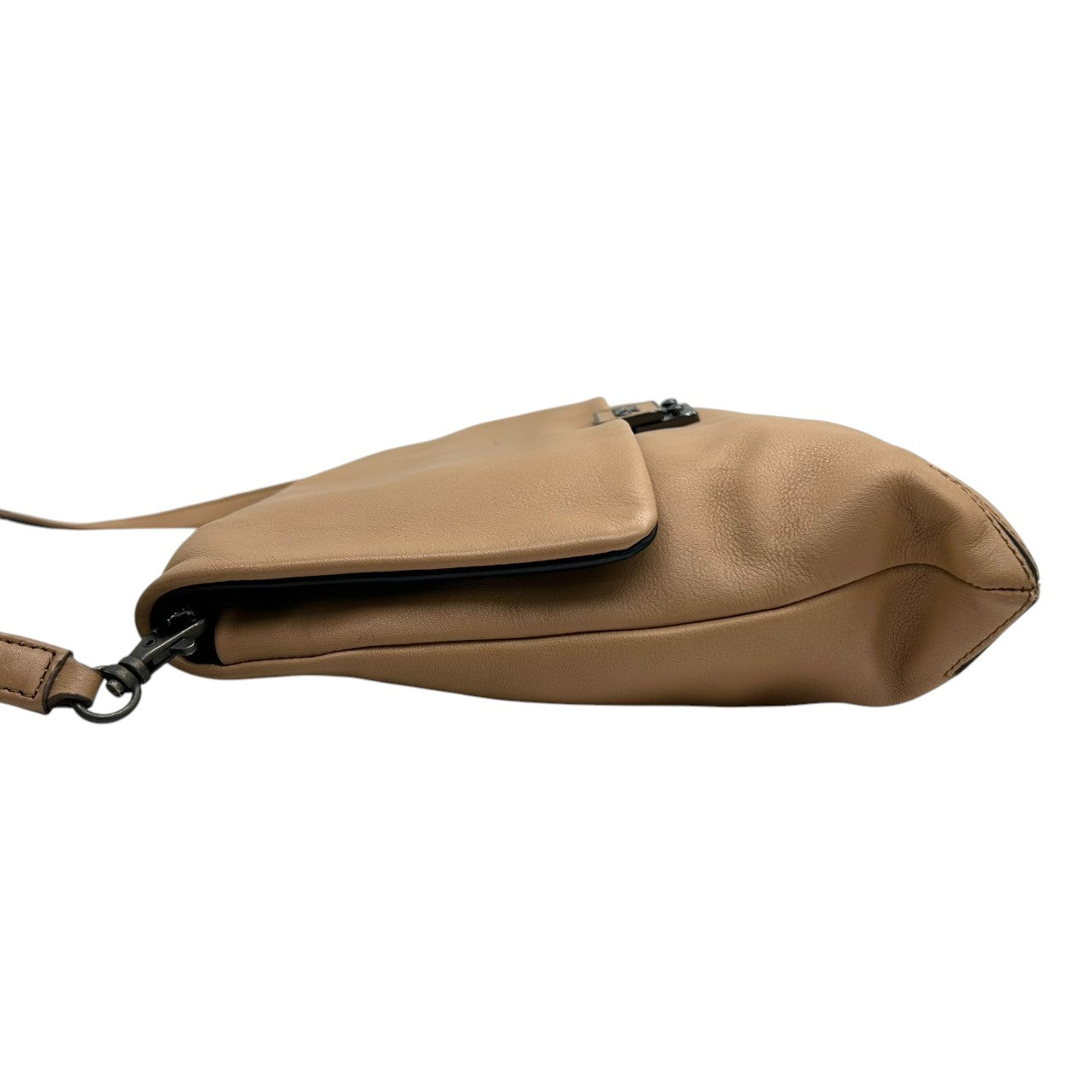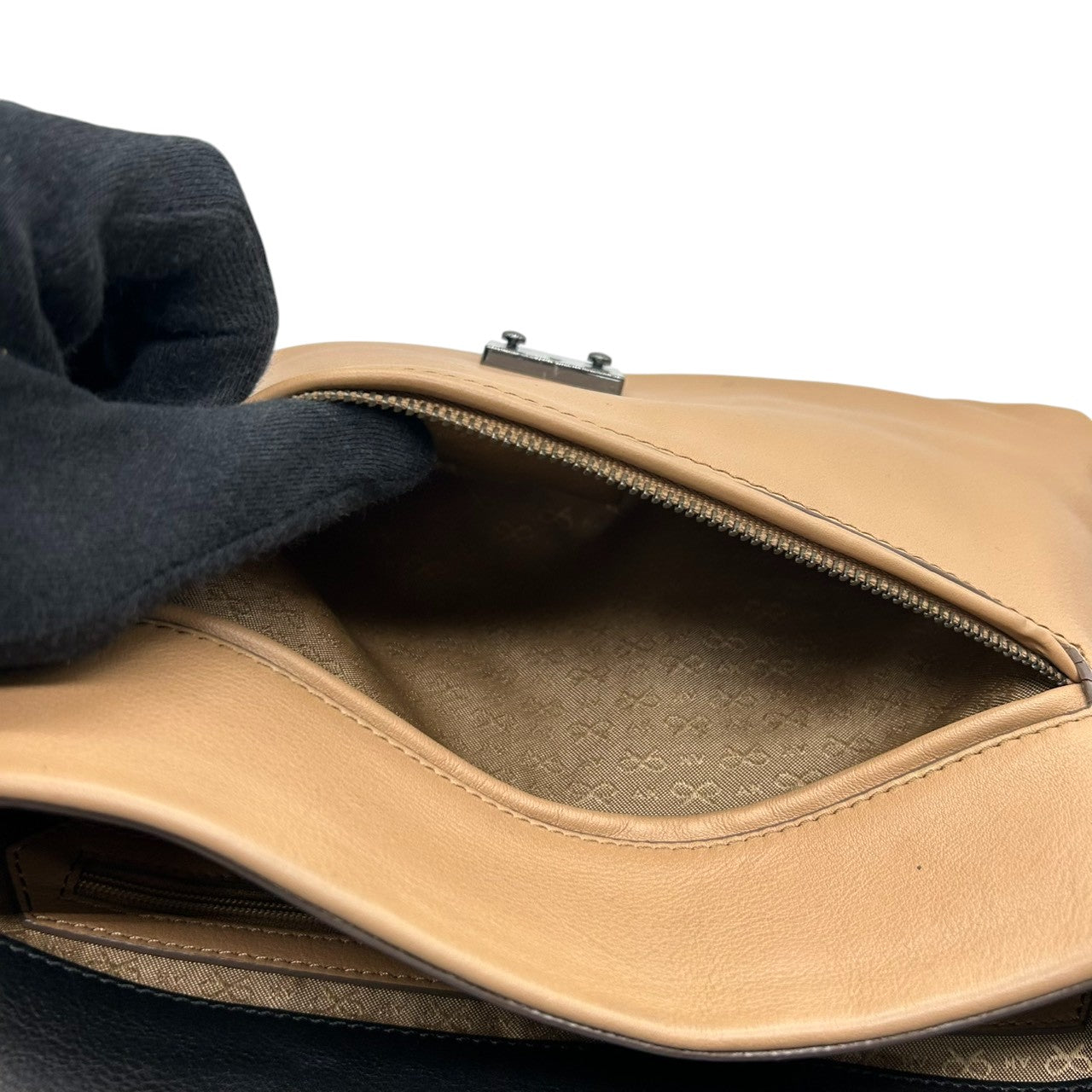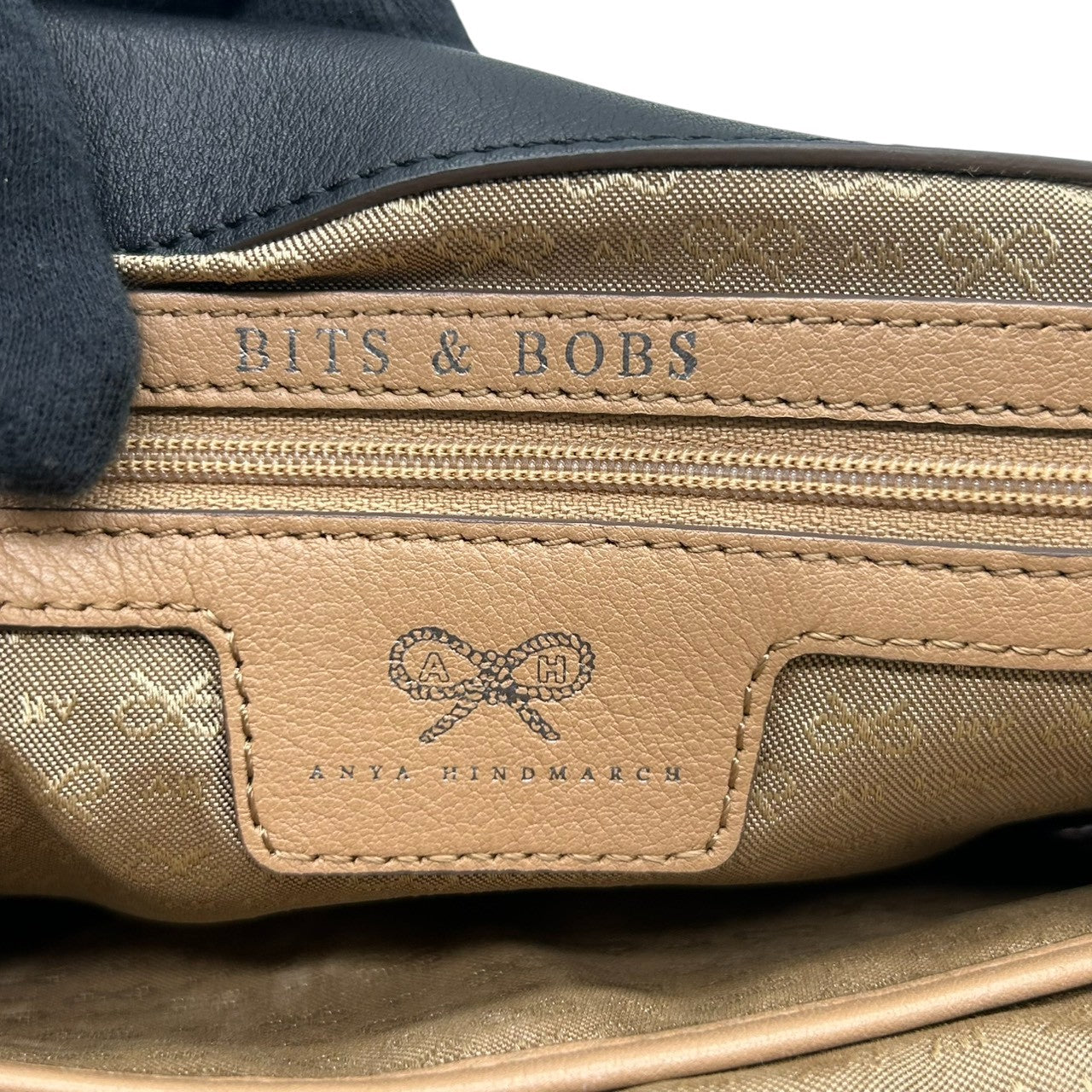 極 美品 アニヤハインドマーチ Anya Hindmarch ショルダーバッグ ハンドバッグ 2WAY 斜め掛け可 レザー 本革 ベージュ キャメル リボンロゴ エレガント クラシック レディース 肩掛け クロスボディ 通勤 通学 鞄 カバン 上品 高級 E8