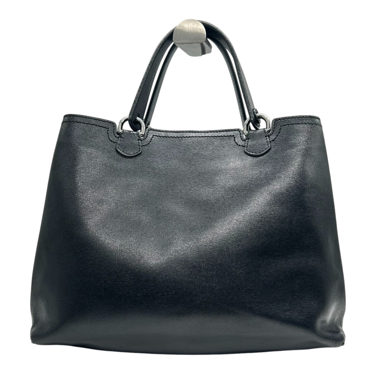 美品 エンポリオアルマーニ EMPORIO ARMANI トートバッグ ショルダーバッグ 2WAY 斜め掛け可 PVC サフィアーノ調 ブラック 黒 ロゴ A4収納可 自立可 ビジネス 通勤 通学 レディース 鞄 カバン 社外ストラップ s90
