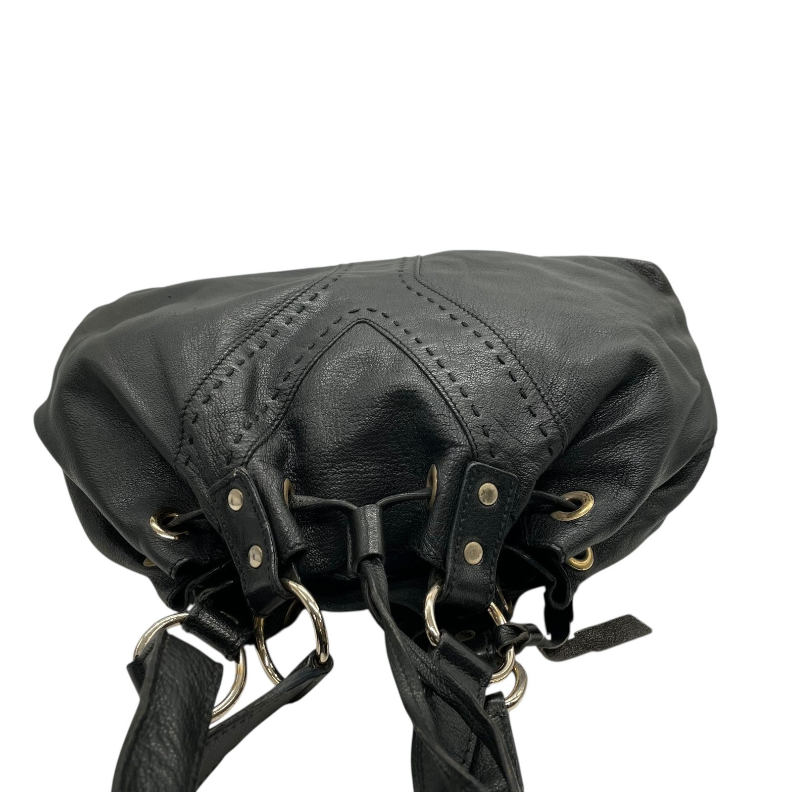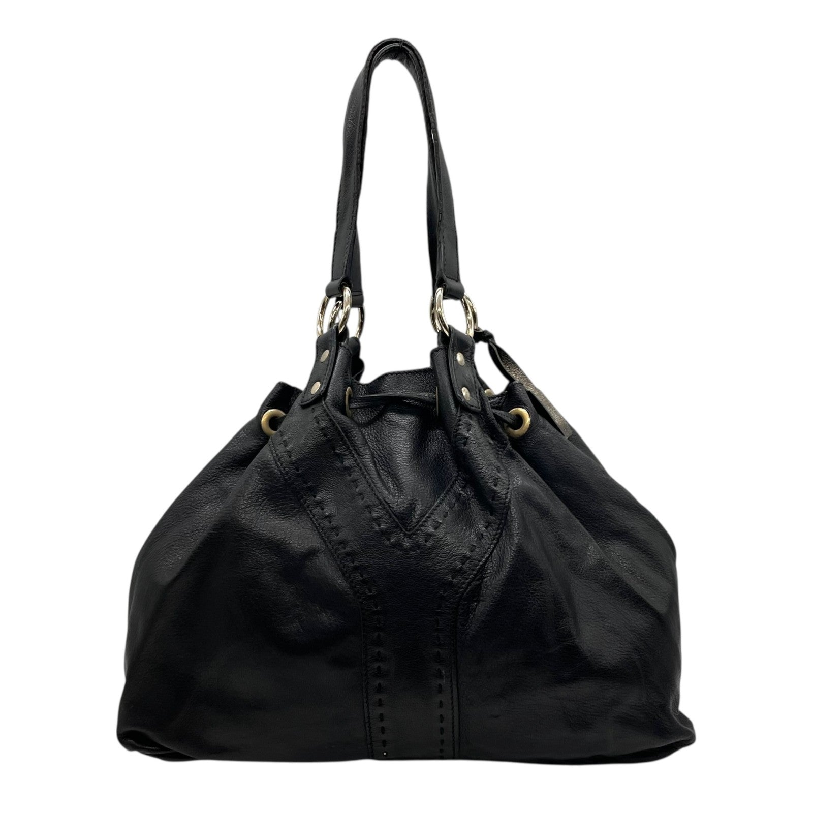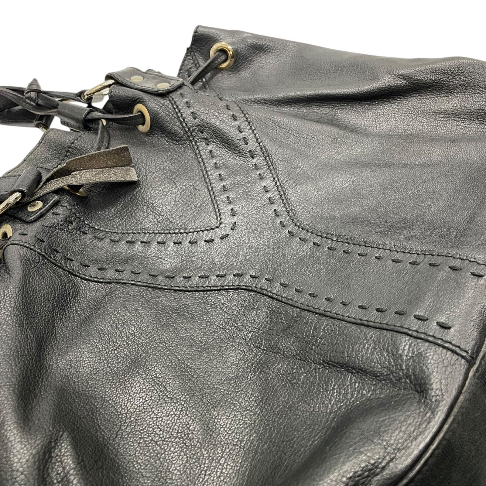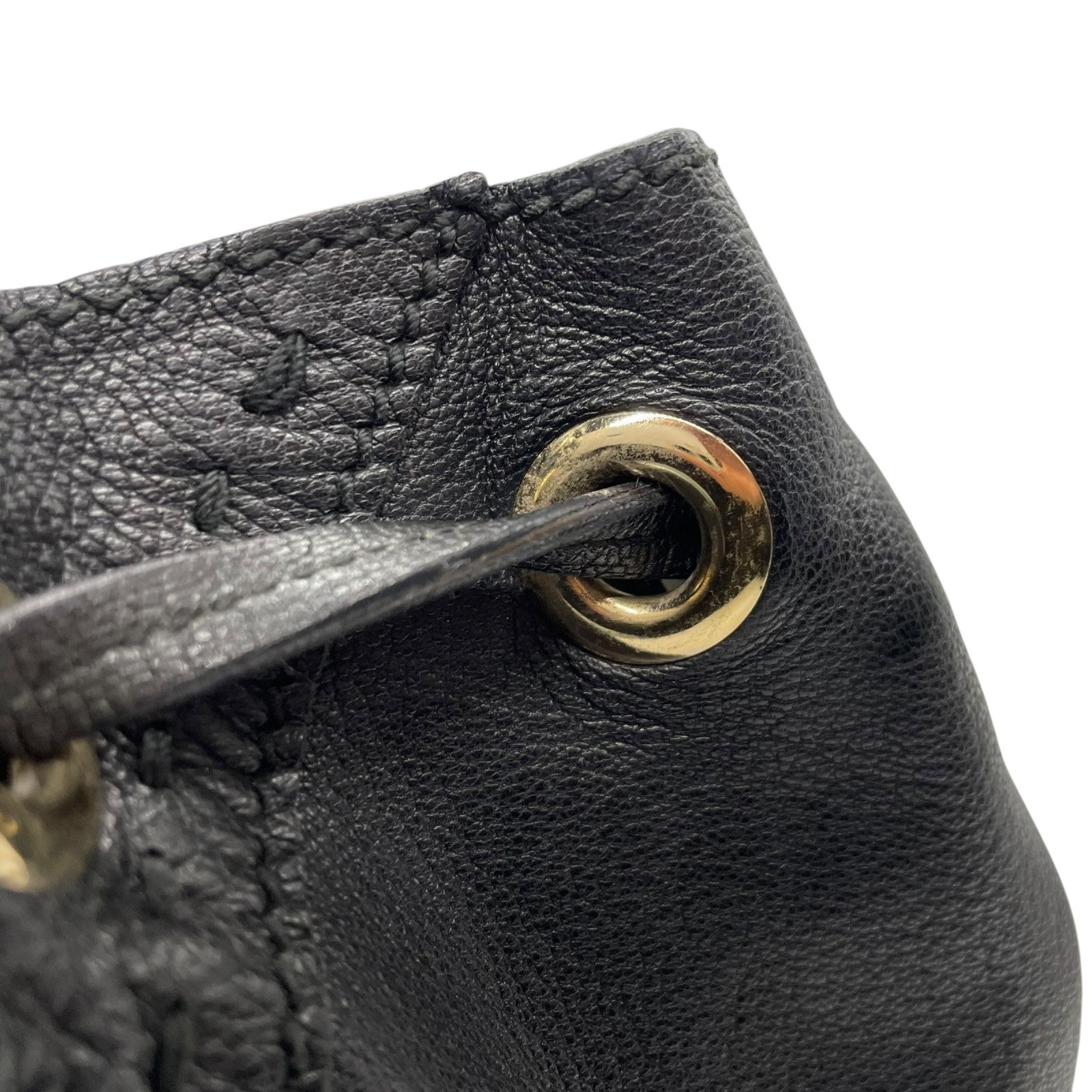 イヴ・サンローラン YVES SAINT LAURENT ネオ ダブル 巾着 レザー トートバッグ ブラック ゴールド金具 ヴィンテージ 肩掛け 収納力抜群 D7