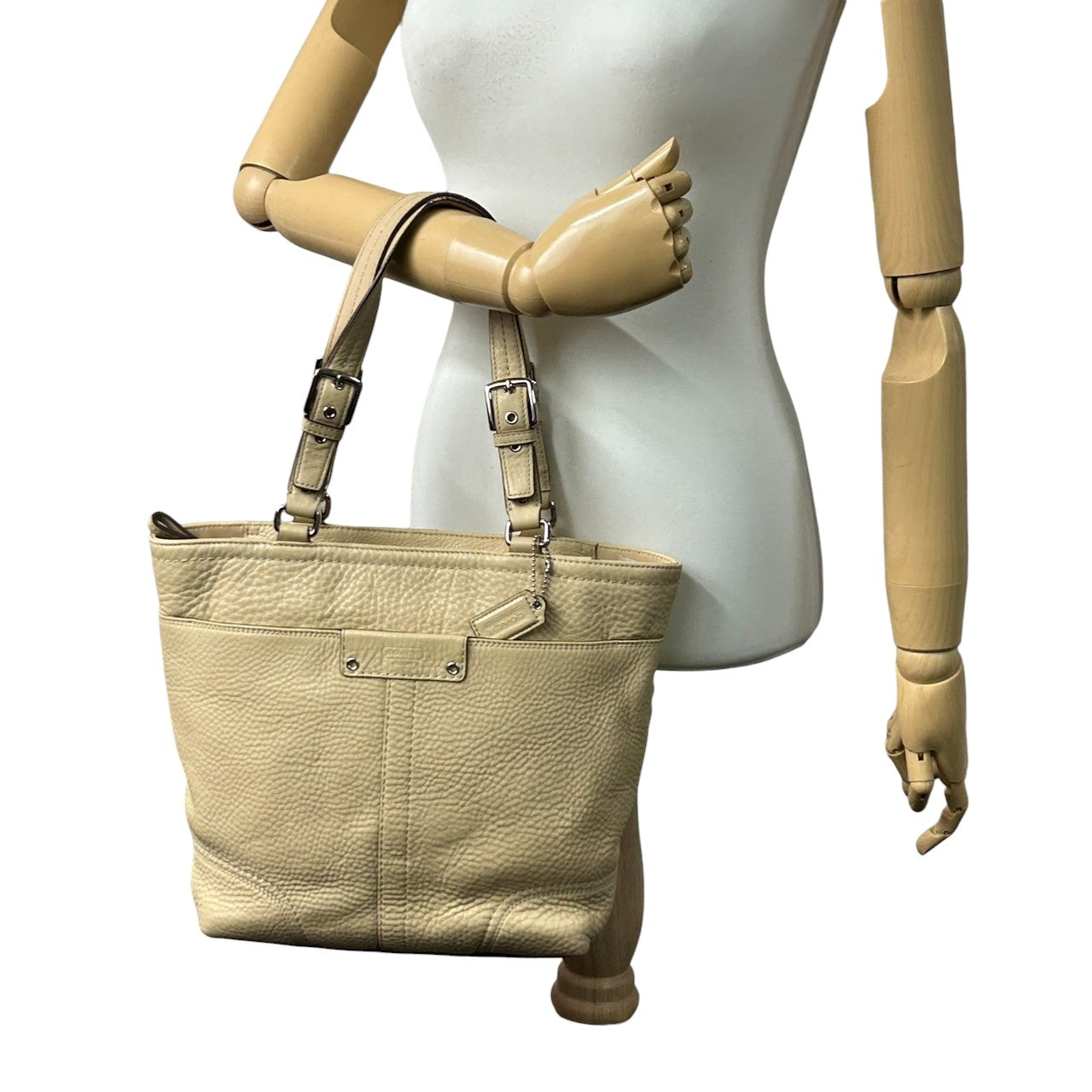 美品 コーチ COACH ブリーカー F13089 トートバッグ ショルダーバッグ レザー 本革 ベージュ クリーム アイボリー 肩掛け ワンショルダー A4収納可 シンプル エレガント バックル レディース 通勤 通学 鞄 カバン U7
