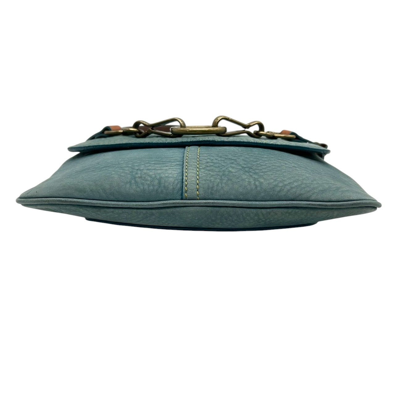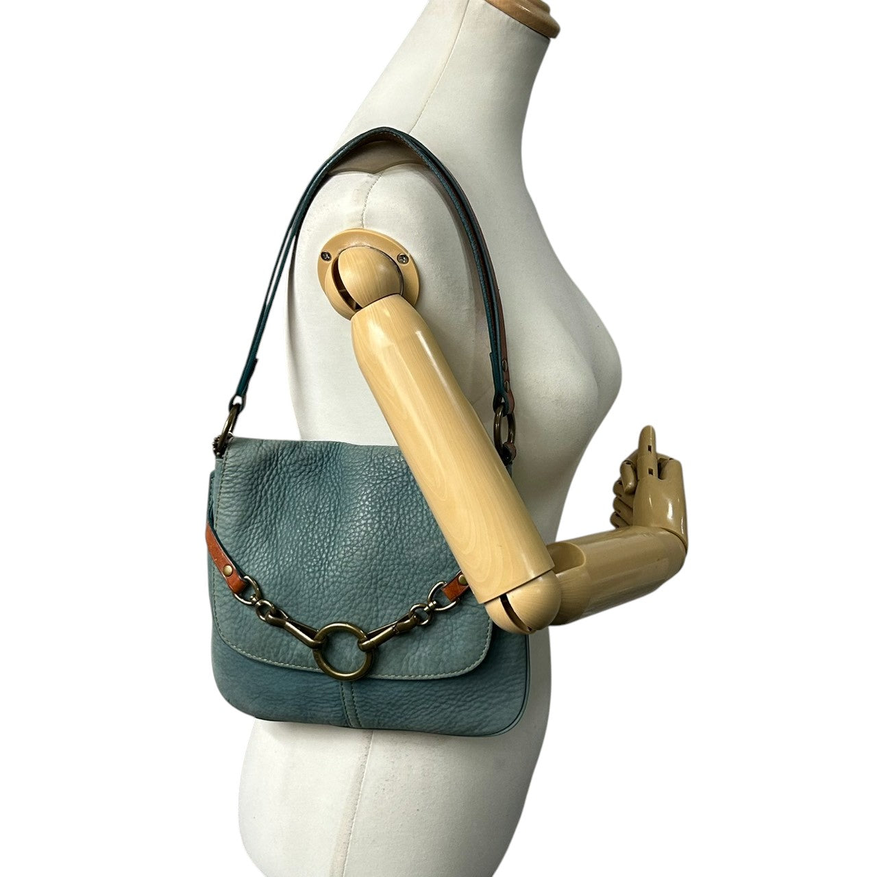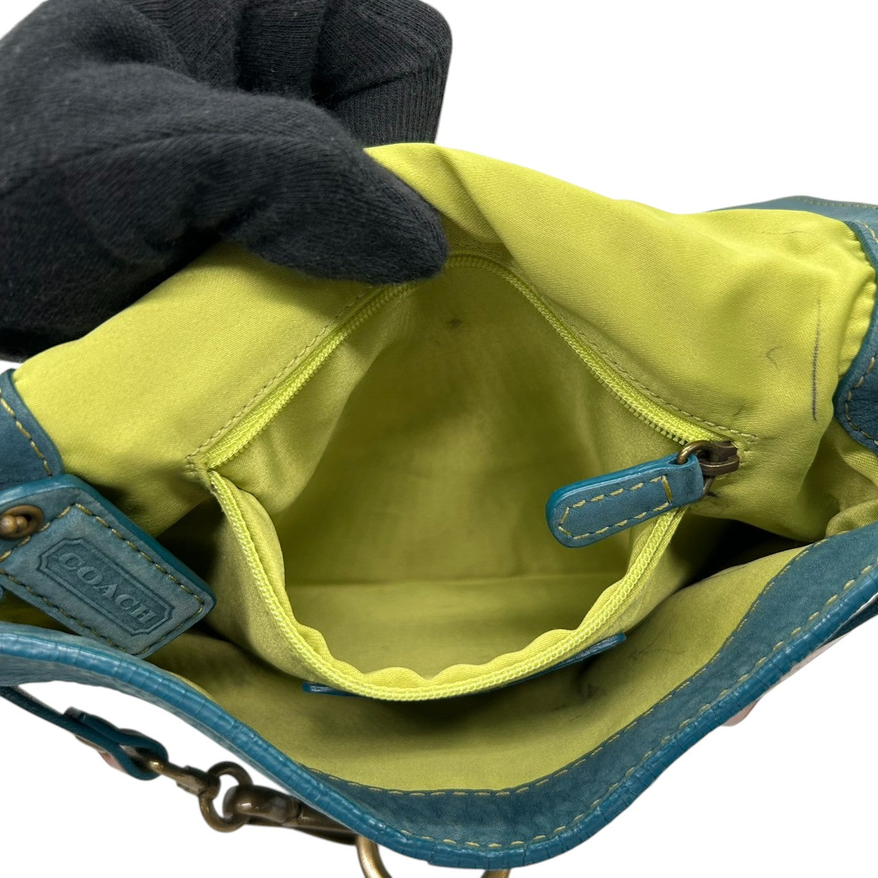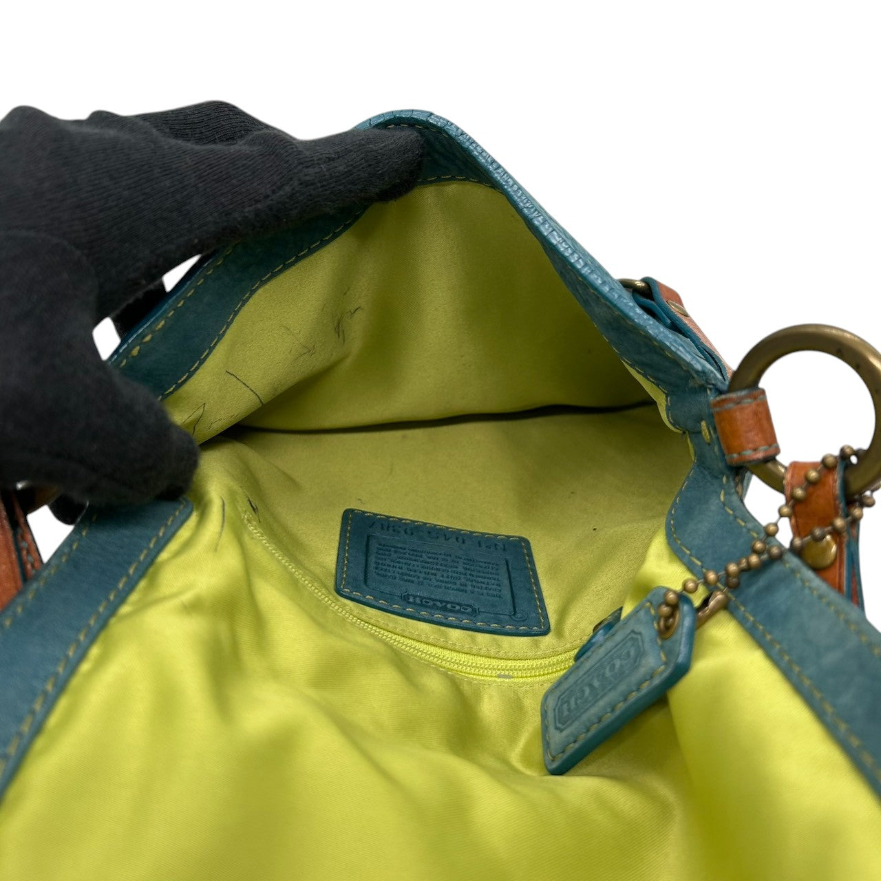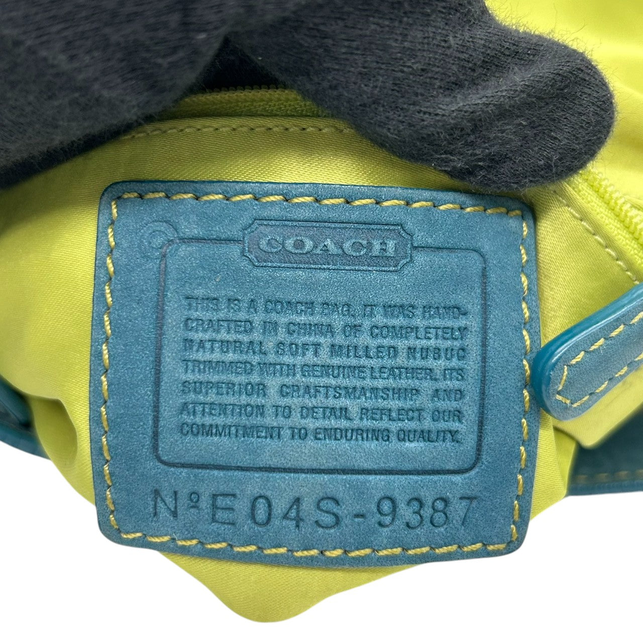 コーチ COACH 9387 ショルダーバッグ ワンショルダー ヌバック レザー 本革 ブルー ターコイズ 青 リング金具 チェーン 肩掛け ビンテージ レトロ 裏地ライムグリーン ネオンカラー レディース 鞄 カバン 希少 s38