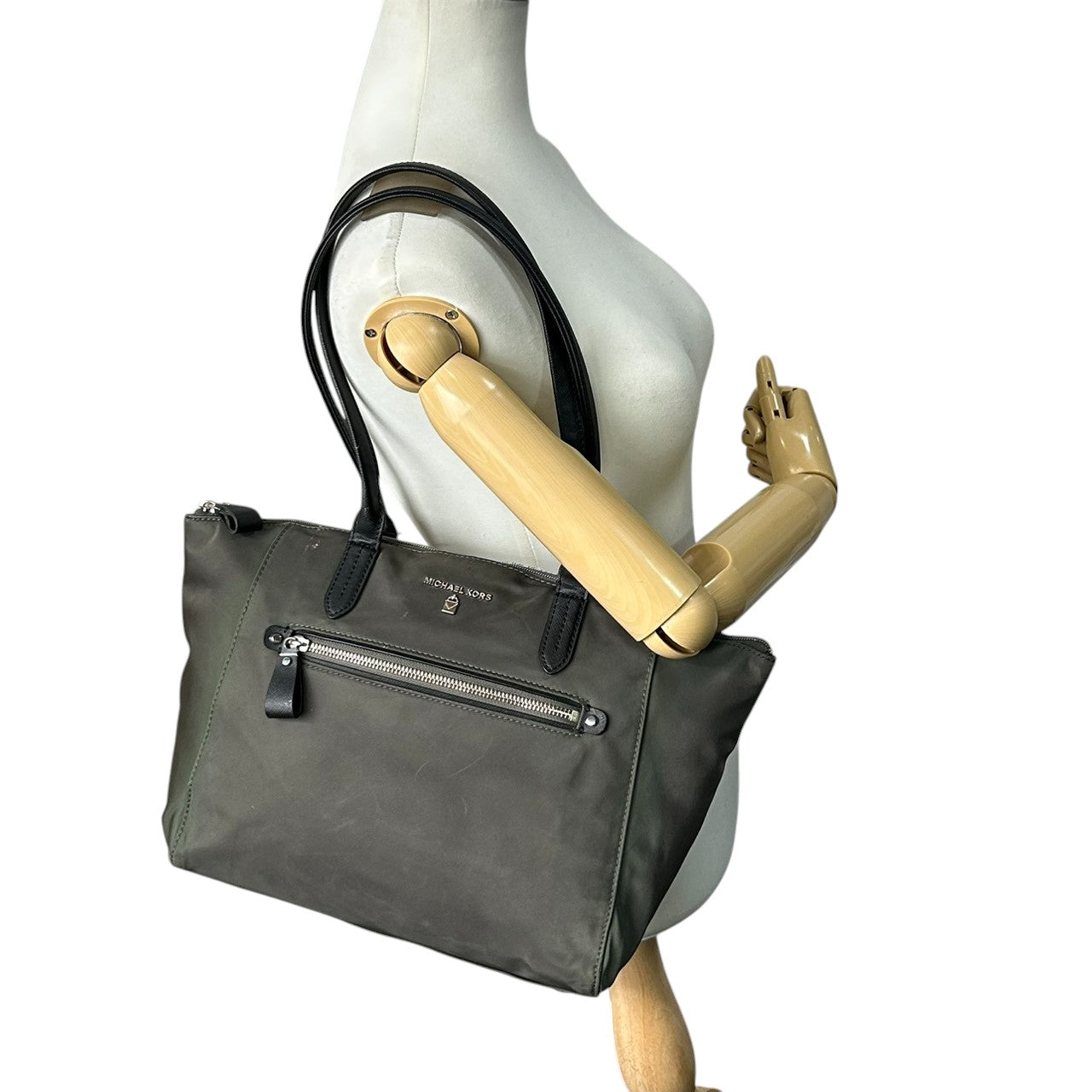 マイケルコース MICHAEL KORS トートバッグ ハンドバッグ ナイロン レザー カーキ オリーブ 深緑 黒 肩掛け ワンショルダー A4収納可 大容量 軽量 ロゴ パドロック 南京錠 チャーム レディース 通勤 通学 ビジネス 鞄 カバン s38