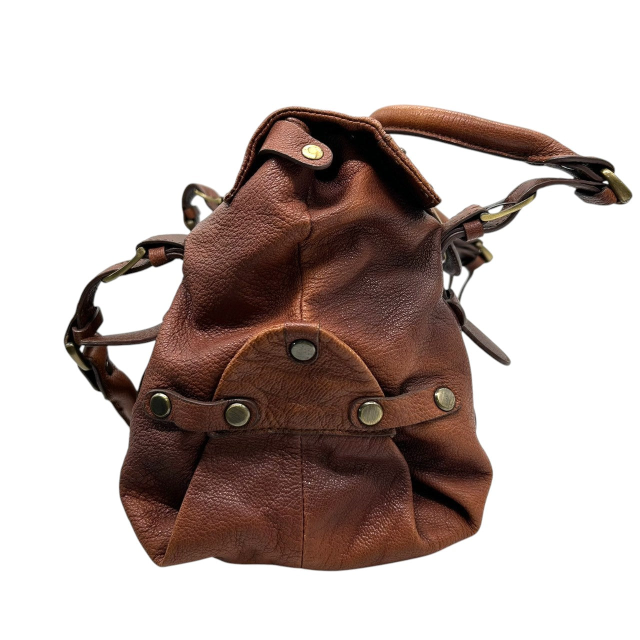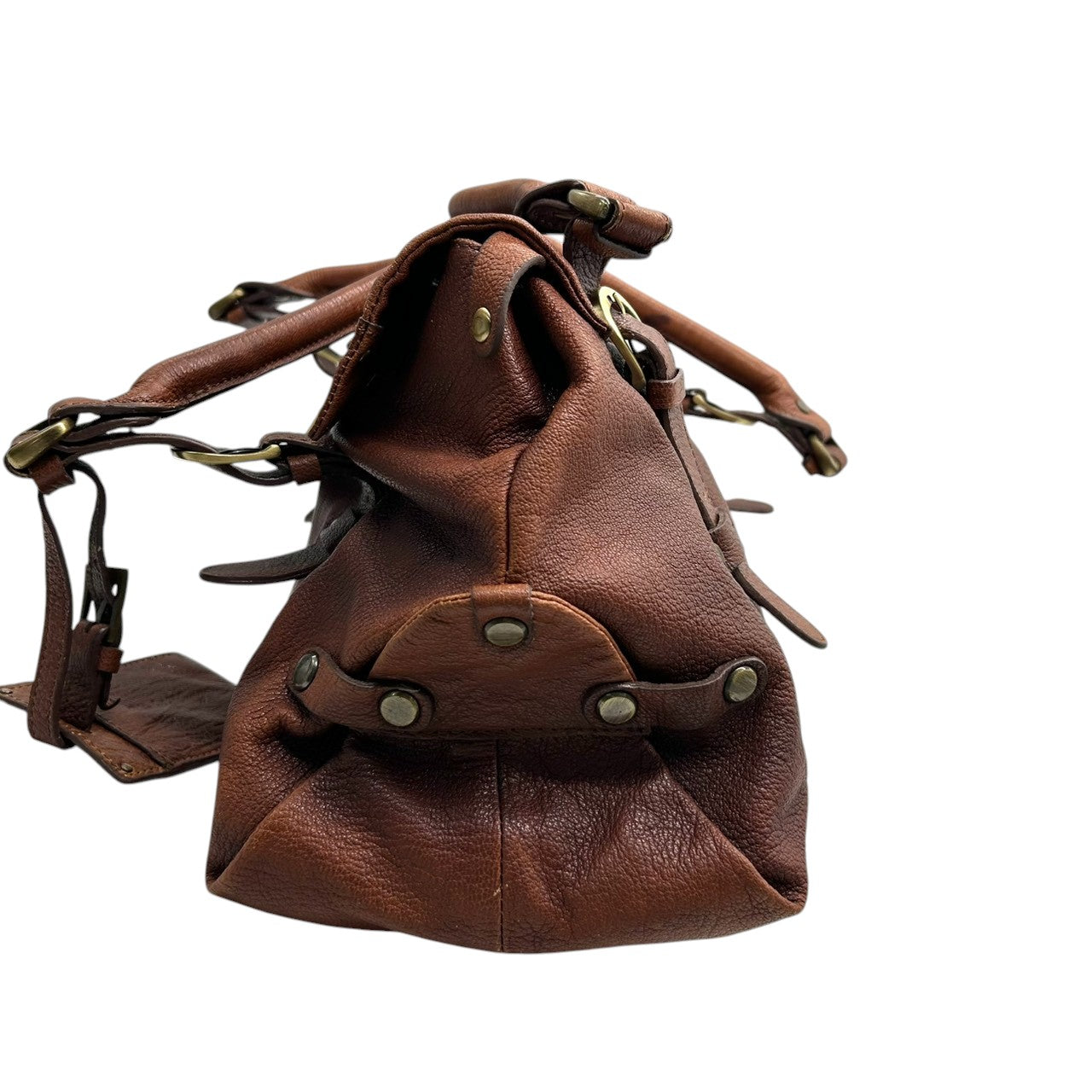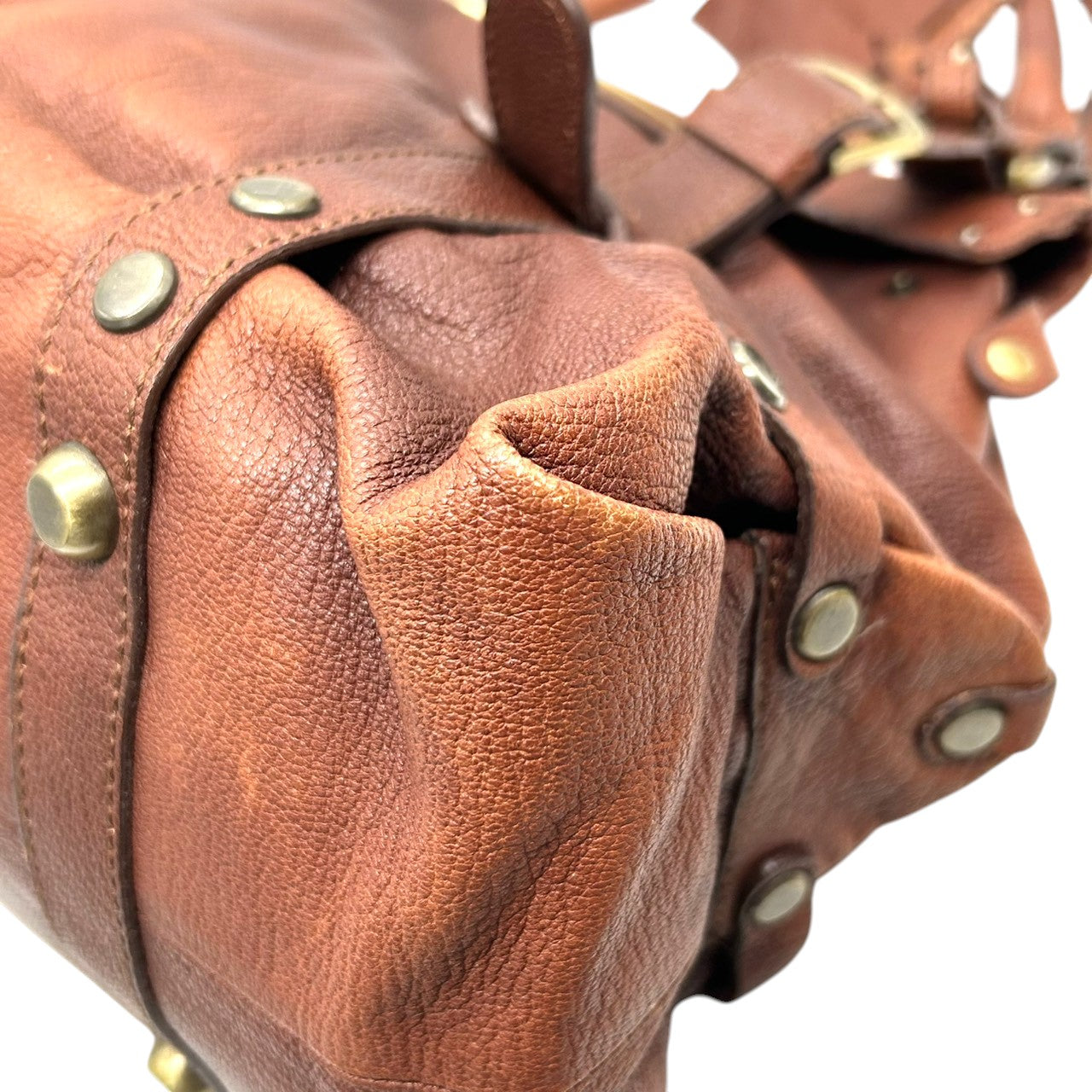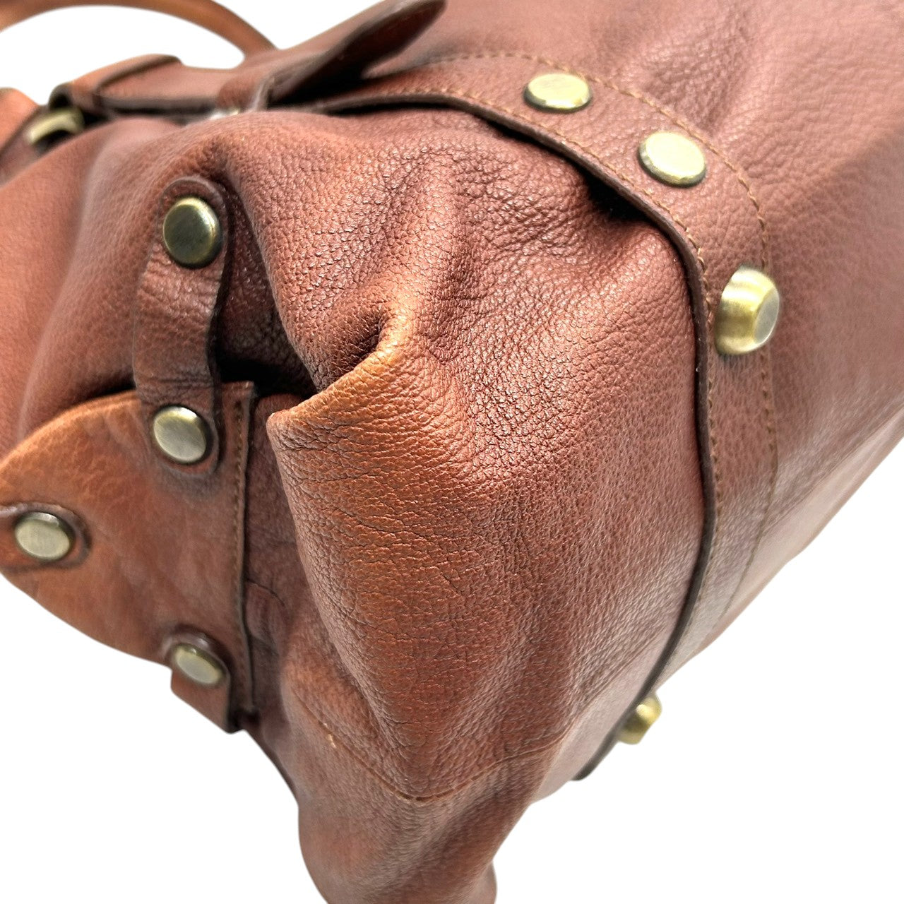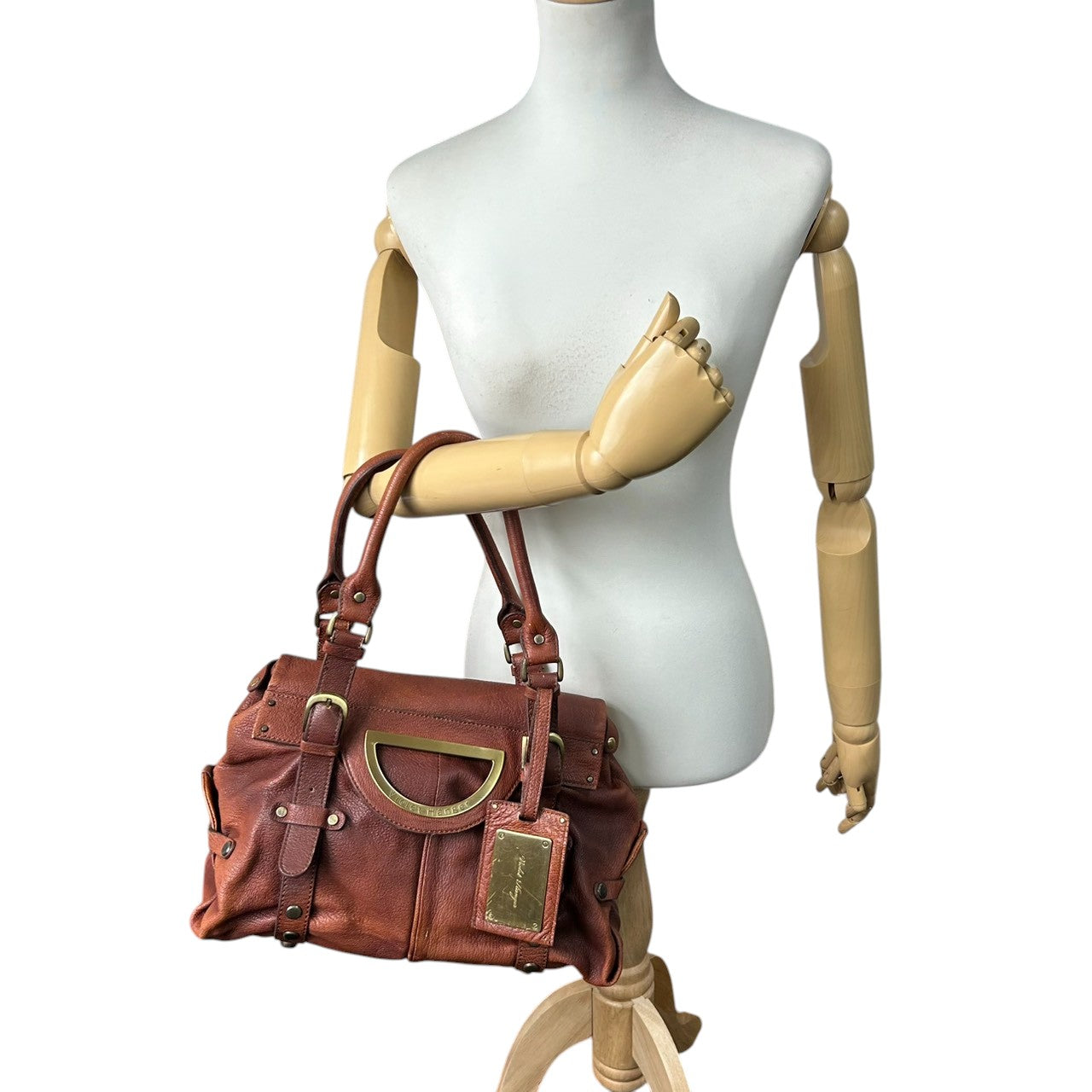 バイオレットハンガー Violet Hanger ハンドバッグ トートバッグ レザー 本革 ブラウン 茶 ゴールド金具 プレートチャーム付 スタッズ Dリング レディース マチ広 収納力 廃盤 希少 レア レトロ ビンテージ調 鞄 カバン s46