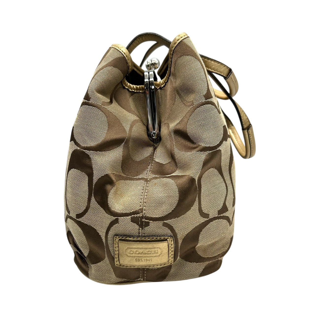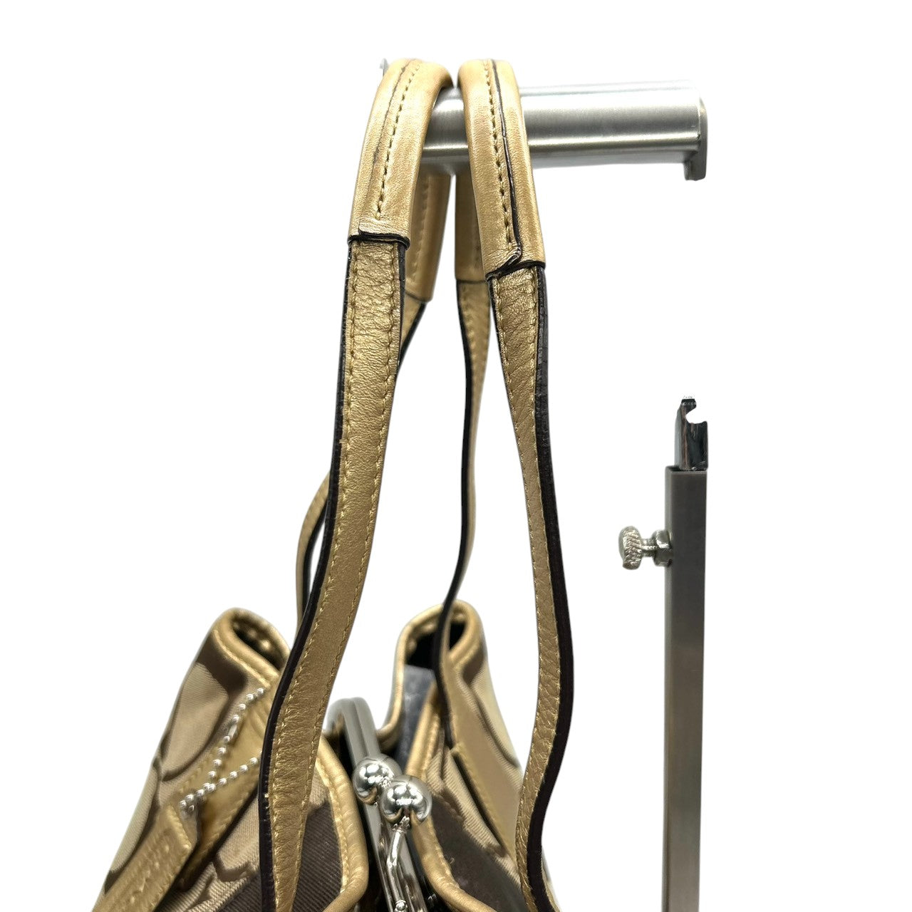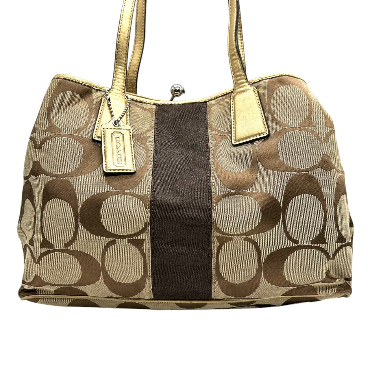 コーチ COACH シグネチャー ストライプ フレーム キャリーオール F13533 トートバッグ ショルダーバッグ ワンショルダー がま口 キスロック キャンバス レザー 本革 カーキ ブラウン ゴールド 肩掛け A4収納可 レディース 鞄 カバン s18