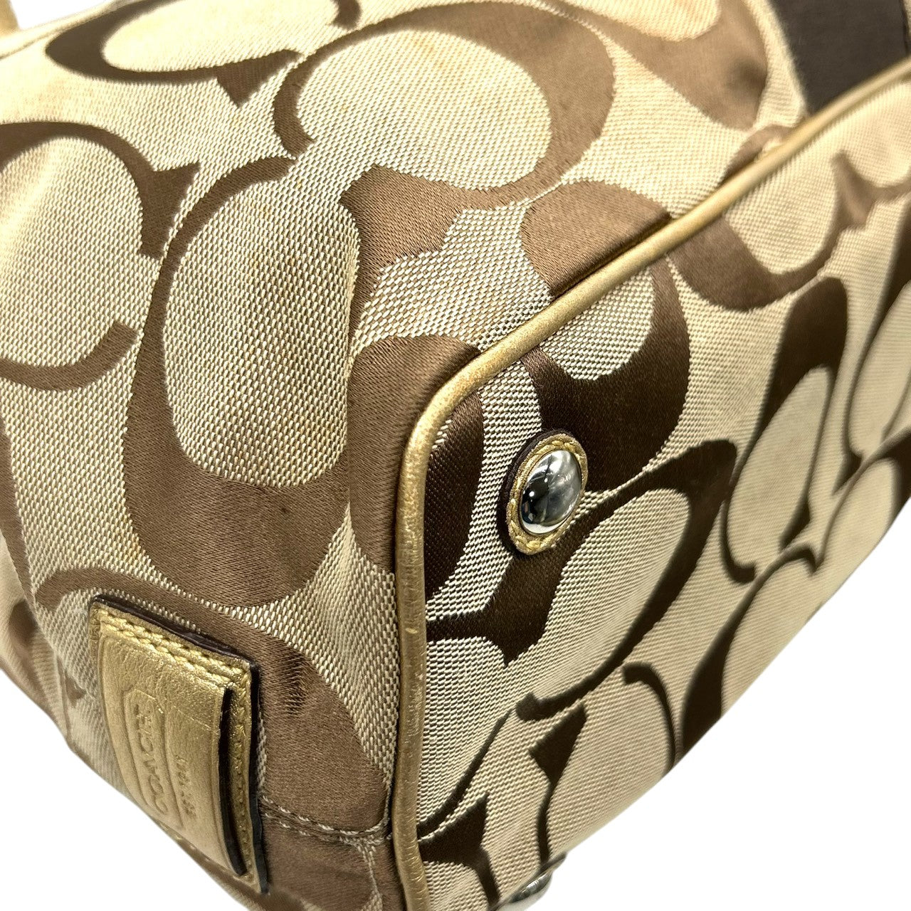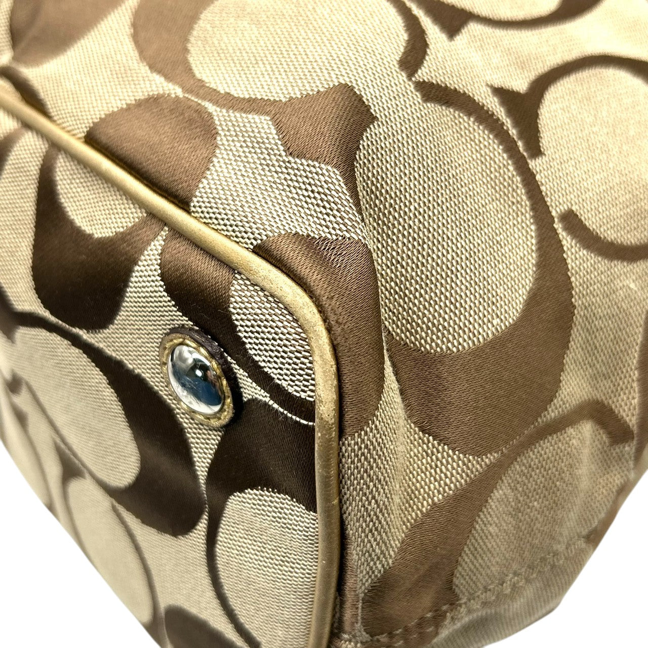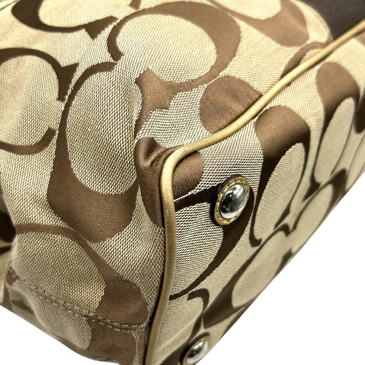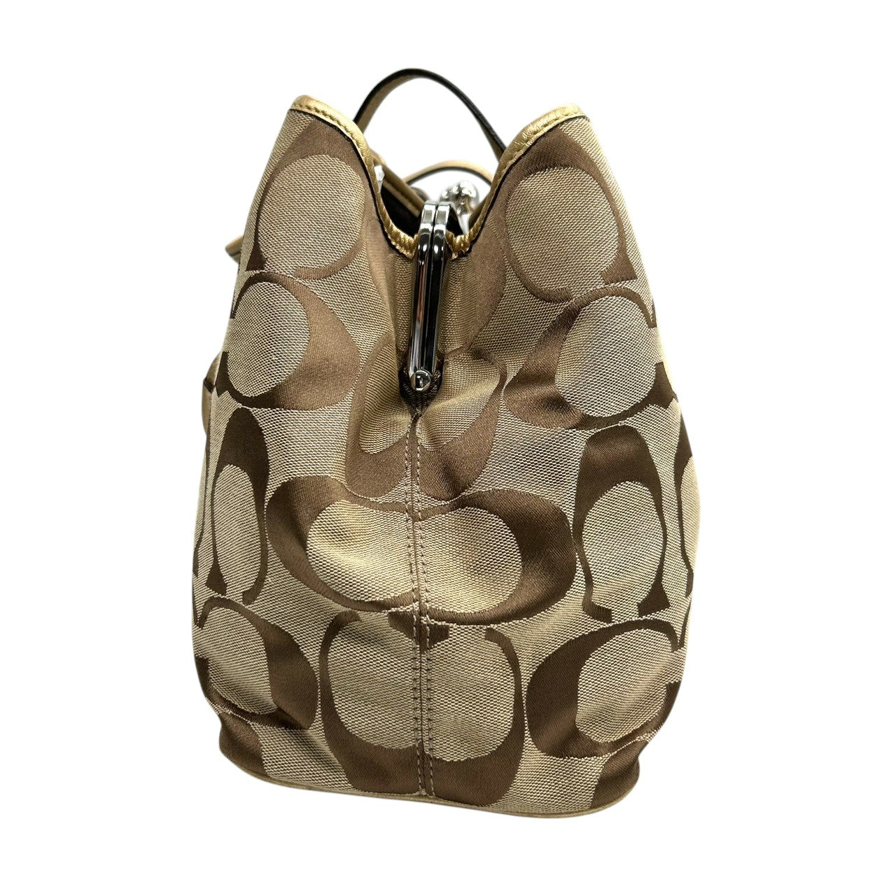 コーチ COACH シグネチャー ストライプ フレーム キャリーオール F13533 トートバッグ ショルダーバッグ ワンショルダー がま口 キスロック キャンバス レザー 本革 カーキ ブラウン ゴールド 肩掛け A4収納可 レディース 鞄 カバン s18