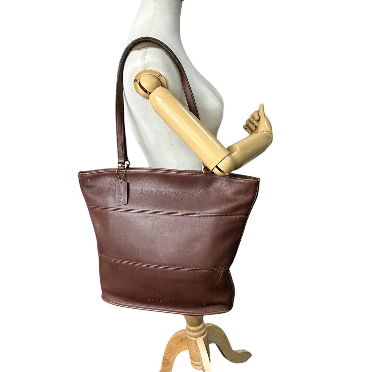 コーチ COACH オールドコーチ OLD COACH 9094 USA製 トートバッグ ショルダーバッグ 肩掛け A4収納可 大容量 レザー 本革 グラブタンレザー ダークブラウン こげ茶 マホガニー アメリカ製 ビンテージ メンズ レディース s56