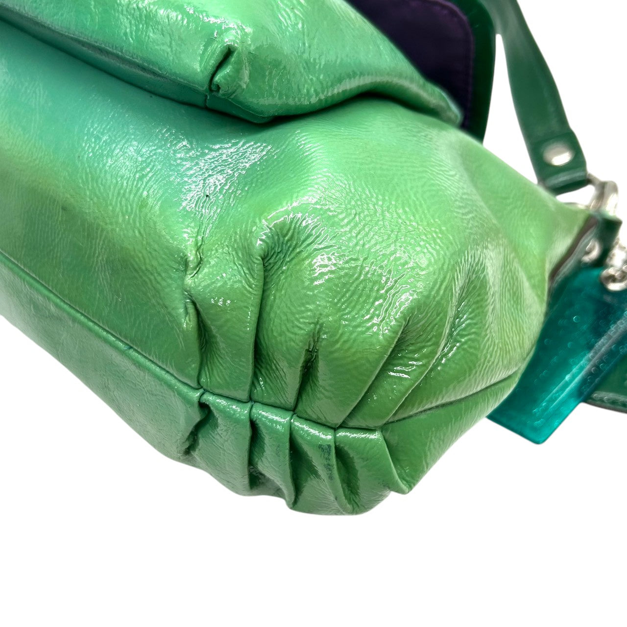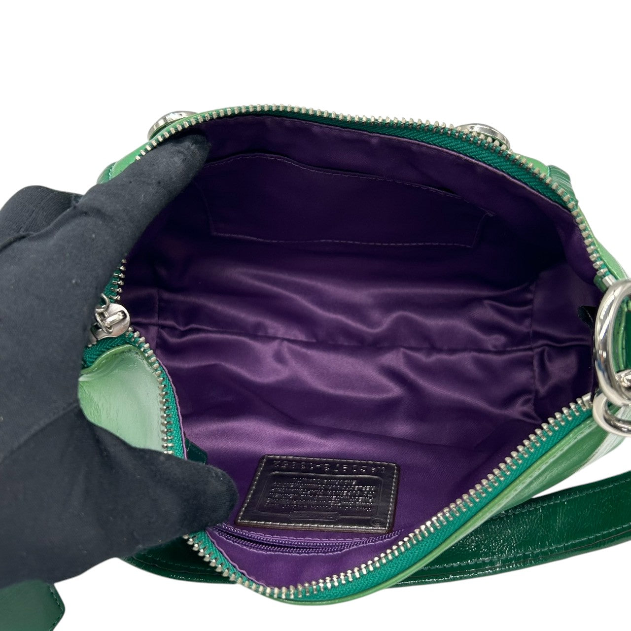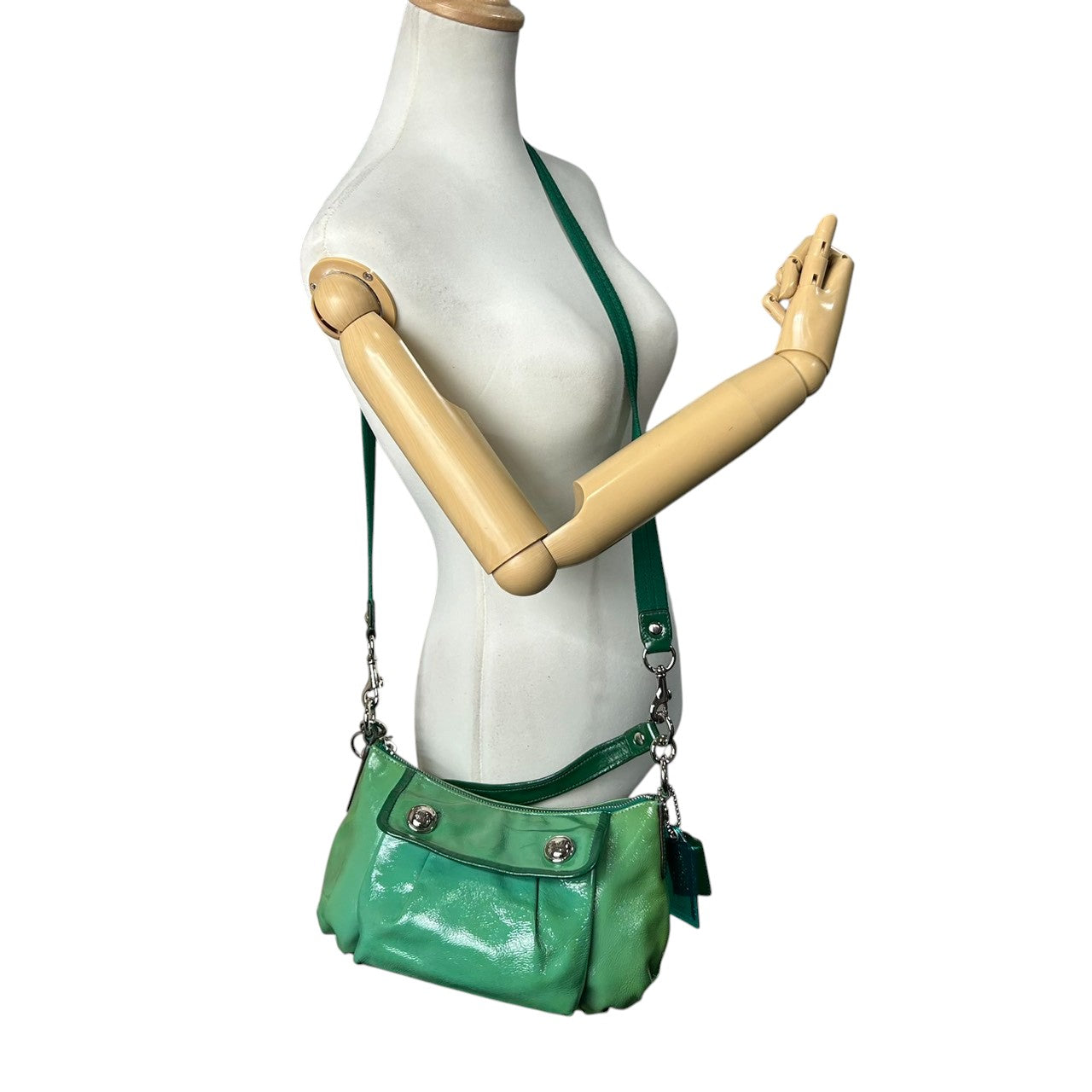 コーチ COACH ポピー パテントレザー 2WAY ショルダーバッグ ワンショルダー ハンドバッグ 13852 エナメル グリーン ラメ チャーム付き 斜め掛け可 レディース ポップ 個性的 s12