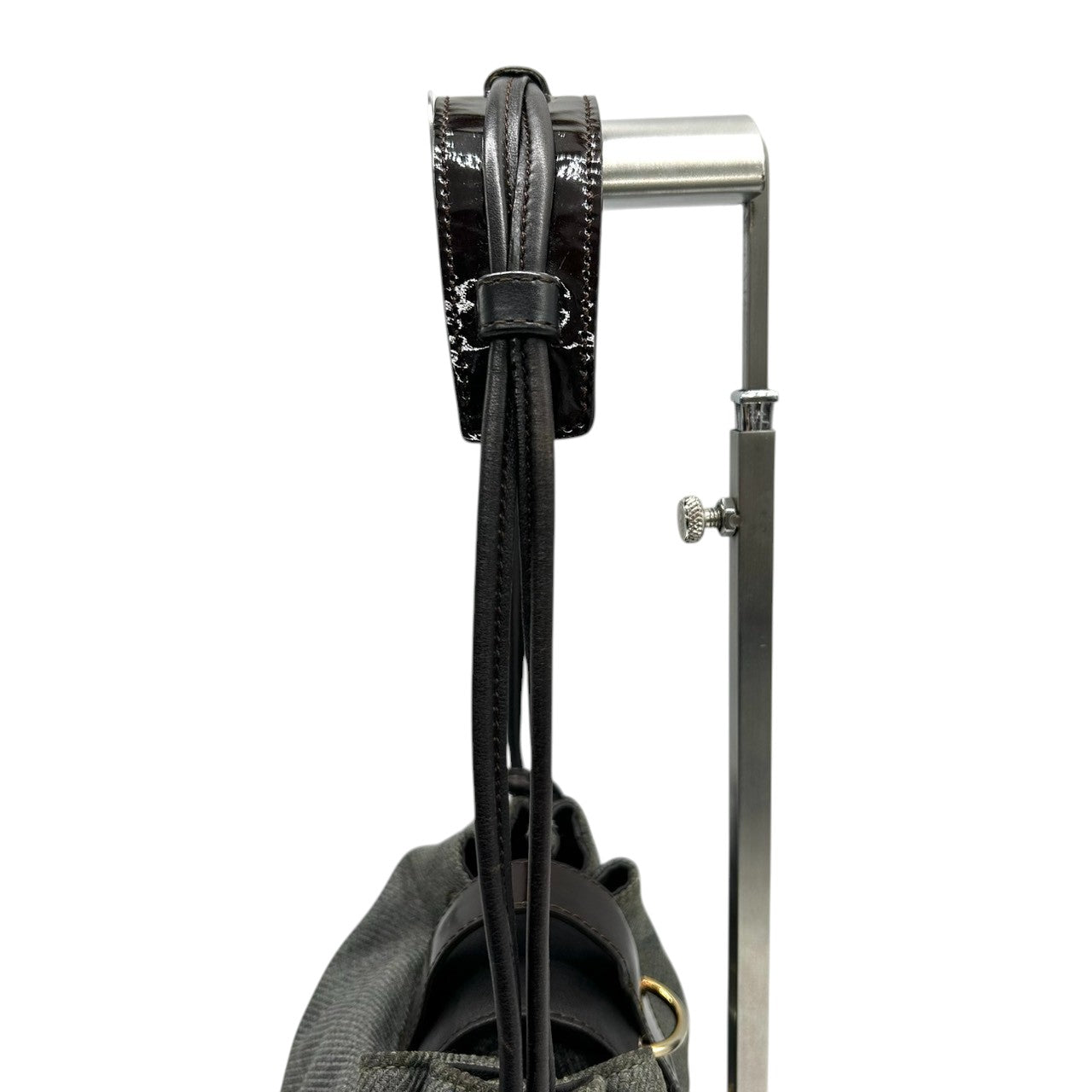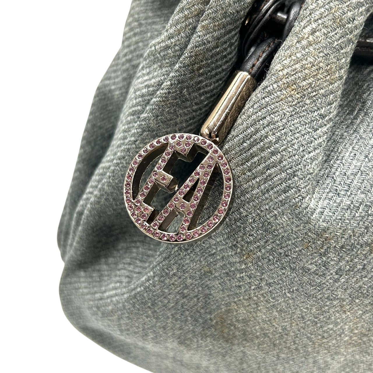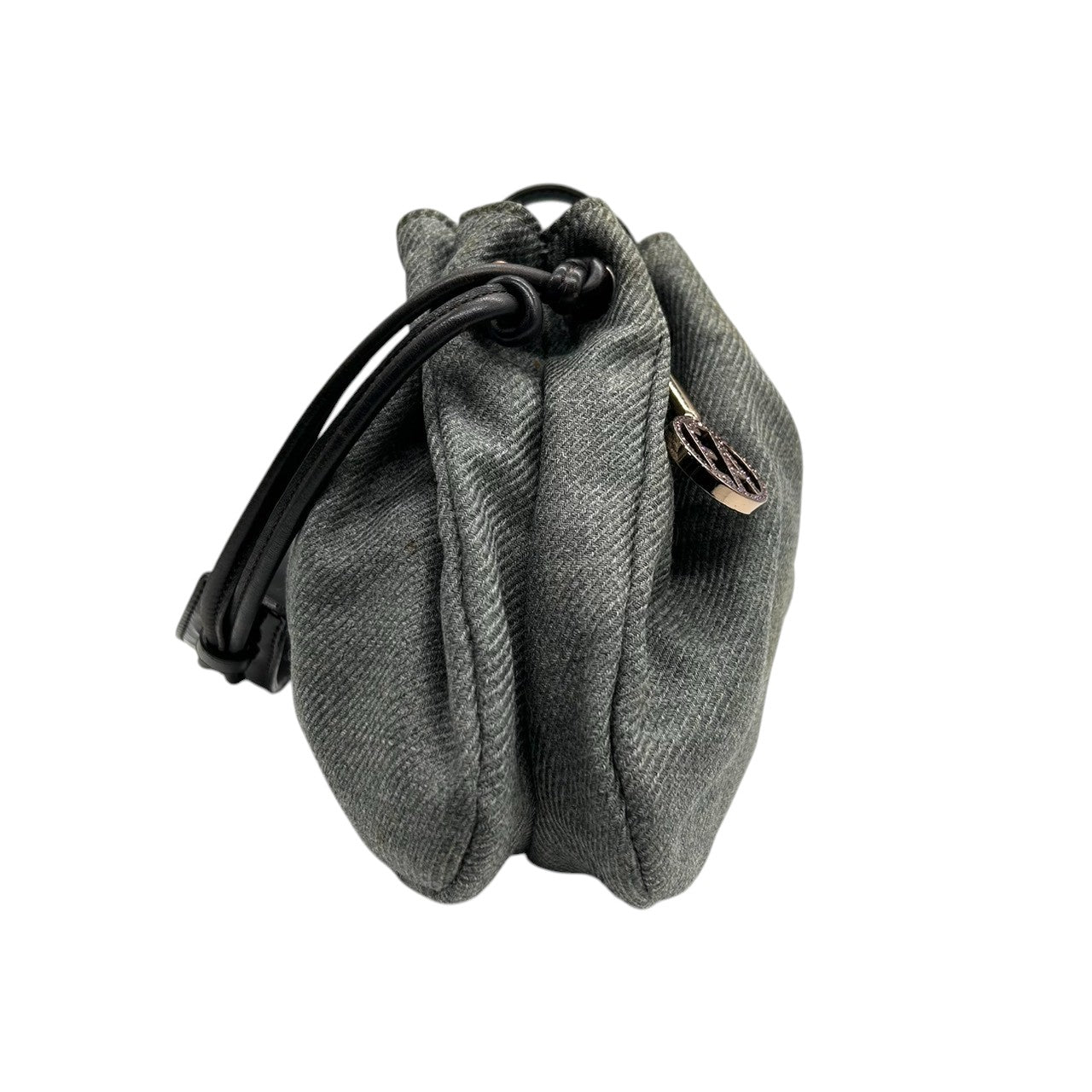 美品 エンポリオアルマーニ EMPORIO ARMANI ショルダーバッグ ハンドバッグ デニム キャンバス レザー 本革 グレー ダークブラウン ロゴチャーム イーグル ギャザー イタリア製 レディース 肩掛け 鞄 カバン カジュアル s88