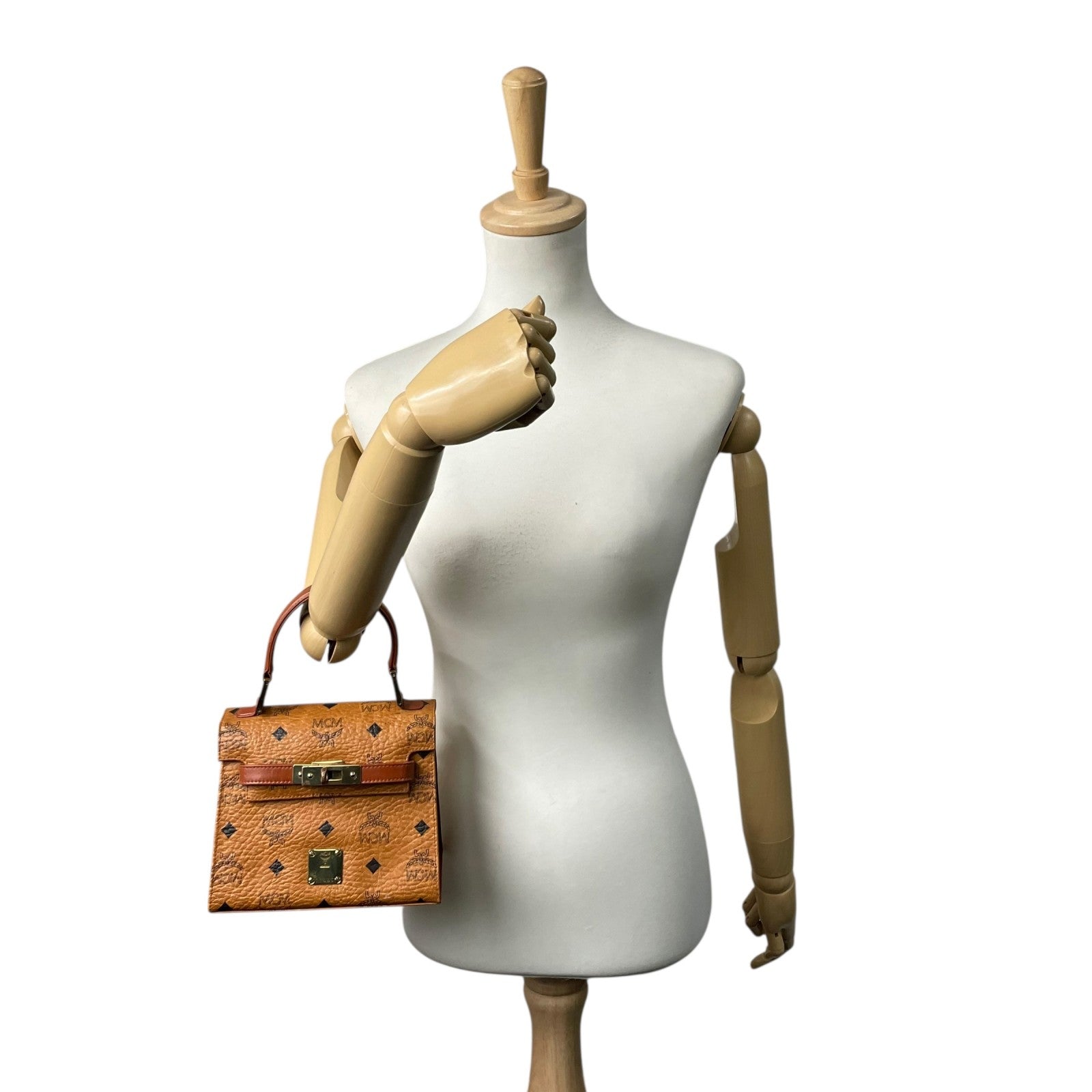MCM エムシーエム ヴィセトス ハンドバッグ トップハンドルバッグ ベルトデザイン コニャック レザー ミニバッグ c4