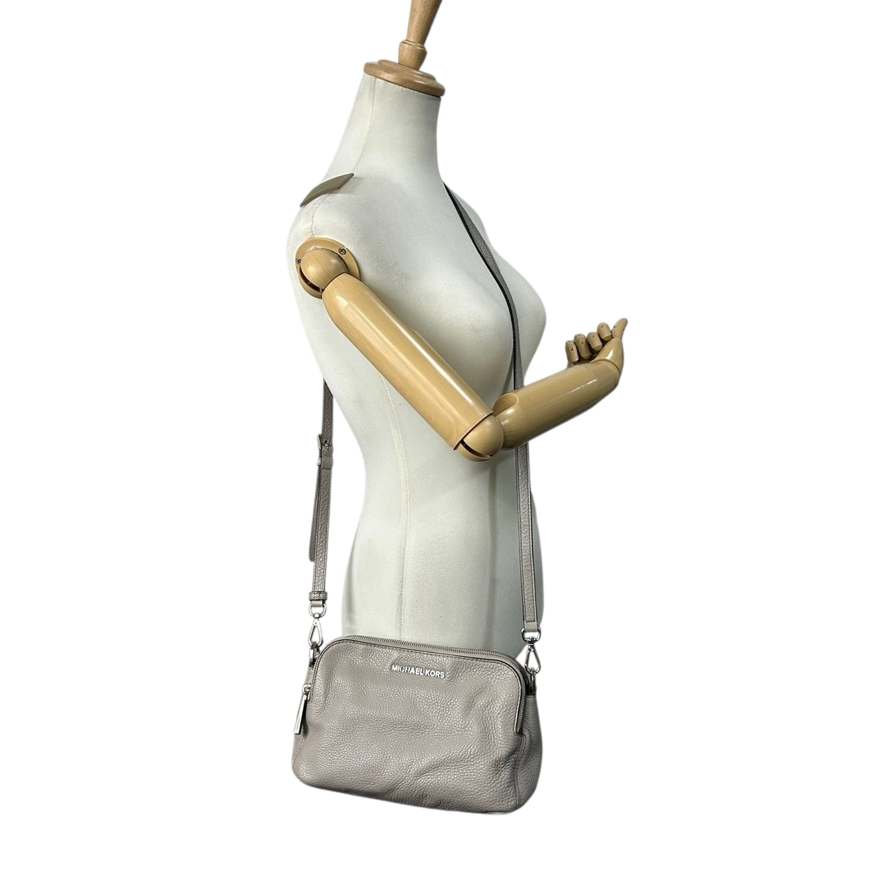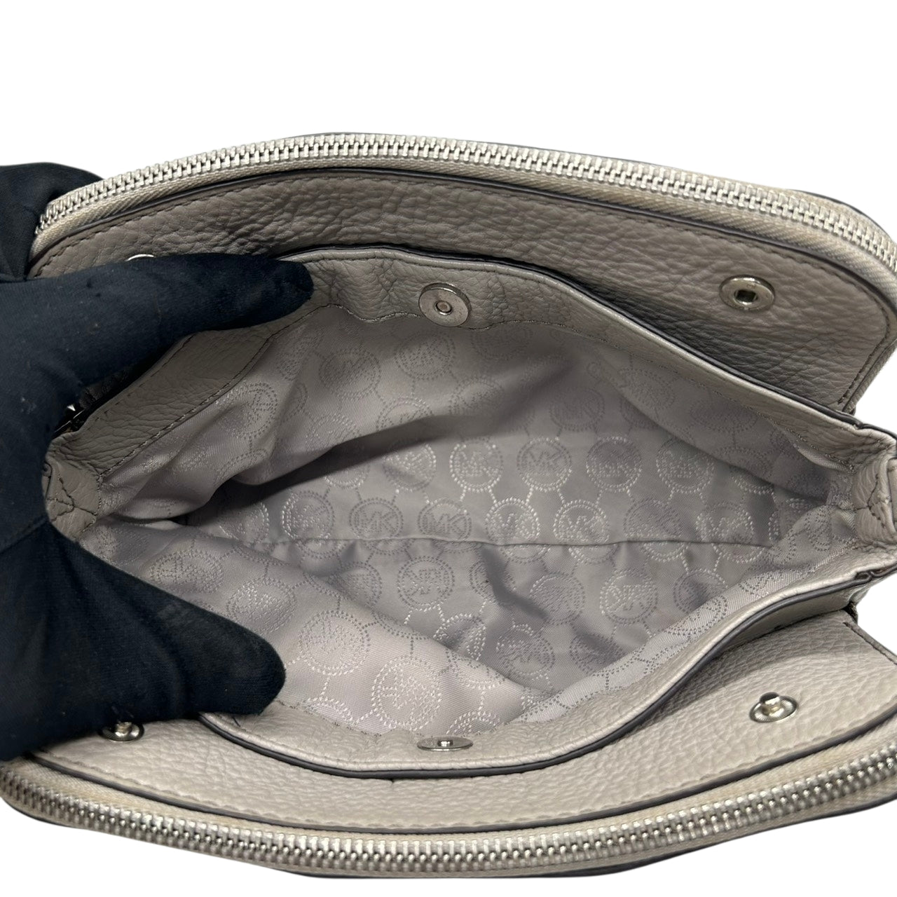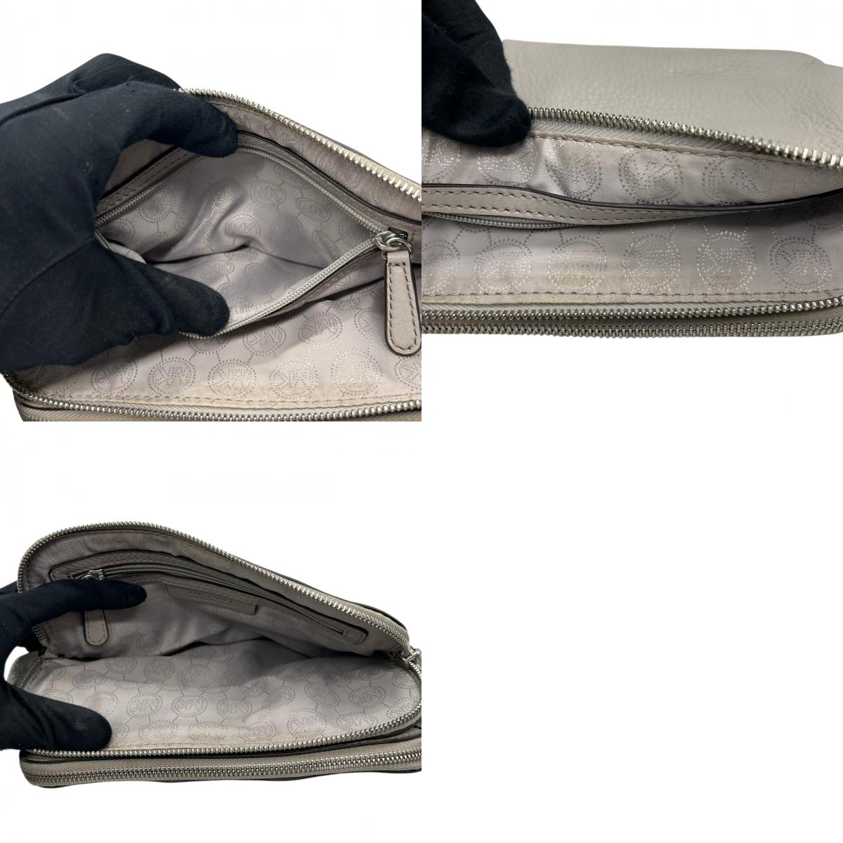 美品 マイケルコース MICHAEL KORS ショルダーバッグ クロスボディ ポシェット 斜め掛け可 レザー 本革 グレー ライトグレー シルバー金具 ロゴ シンプル 軽量 コンパクト レディース お出かけ 旅行 デート サブバッグ s93