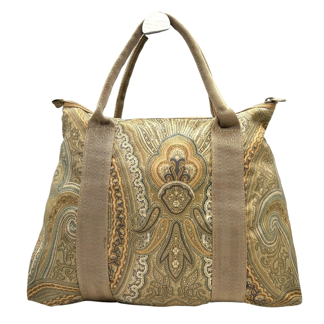 美品 エトロ ETRO トートバッグ ハンドバッグ ペイズリー柄 総柄 ナイロン ベージュ ブラウン マルチカラー ロゴパッチ Profumi レディース ビンテージ クラシック レトロ カジュアル エレガント 手提げ サブバッグ 和装 鞄 カバン s94