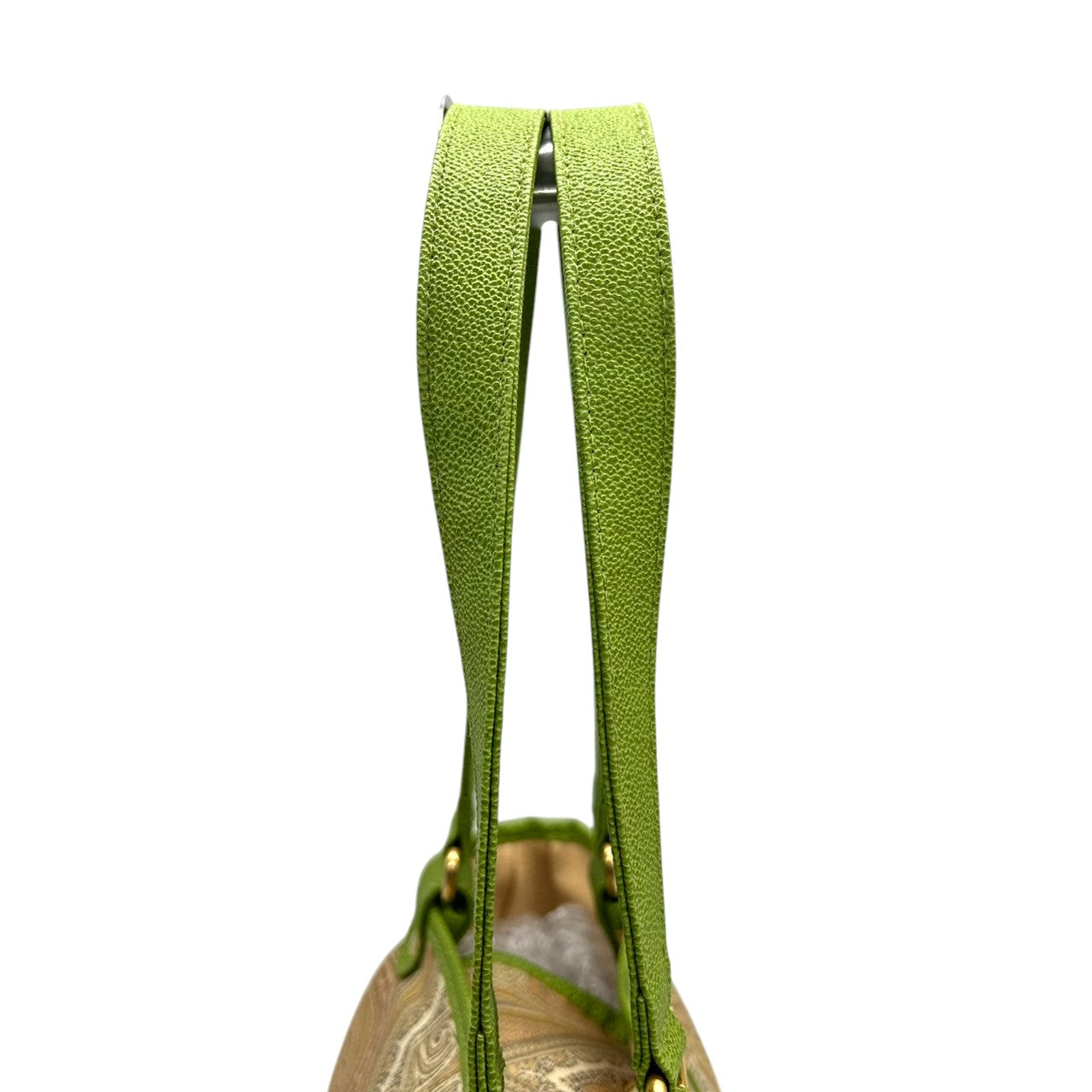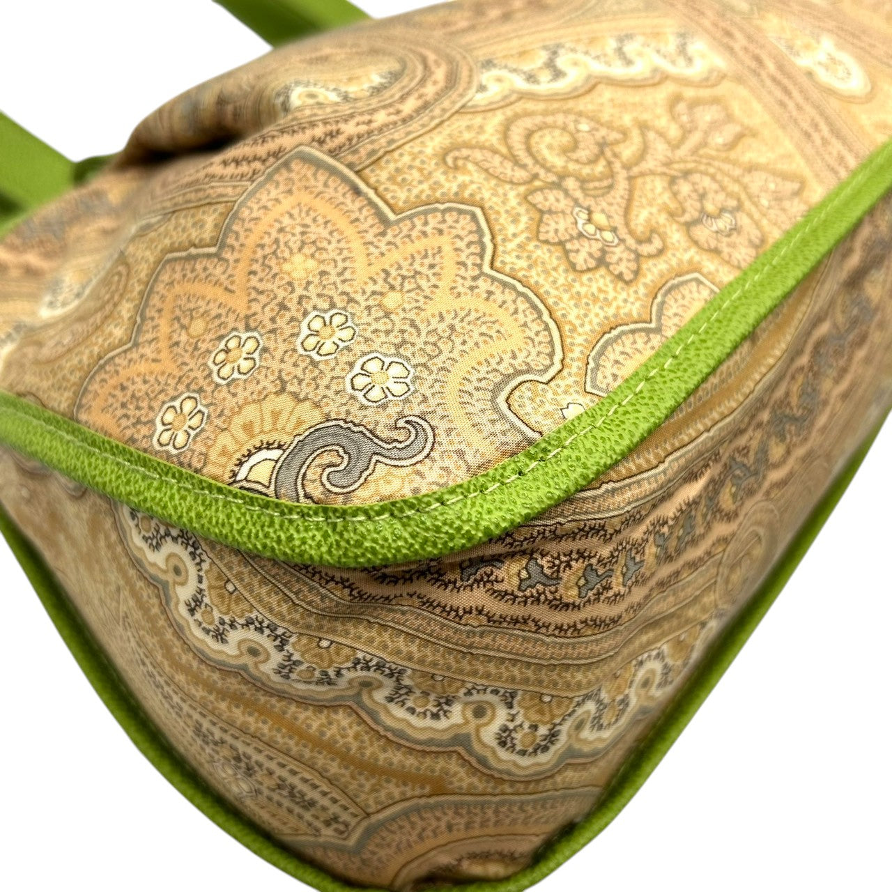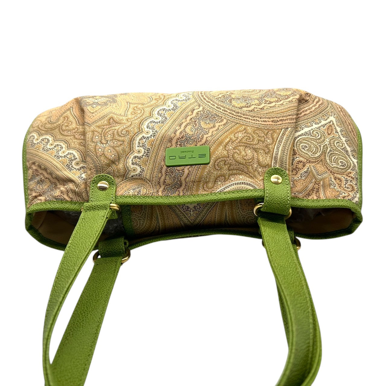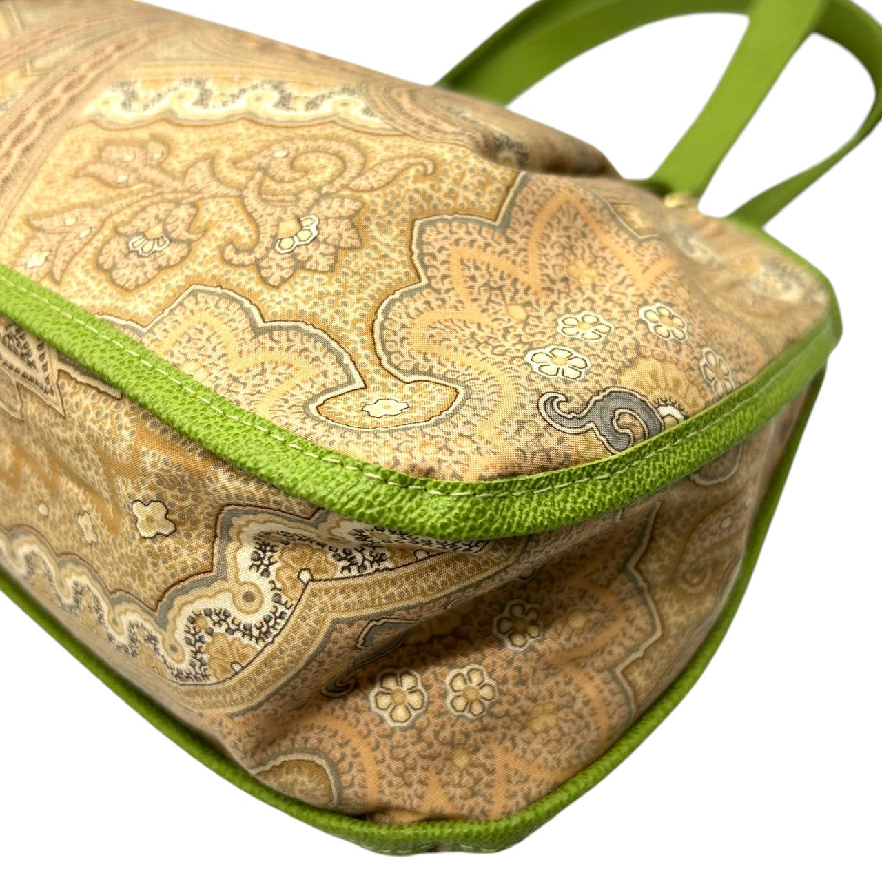 美品 エトロ ETRO ハンドバッグ トートバッグ ペイズリー柄 総柄 ナイロン レザー 本革 グリーン 黄緑 バイカラー ワンショルダー 肩掛け 軽量 Profumi プロフーミ レディース ビンテージ クラシック レトロ カジュアル 鞄 カバン s94