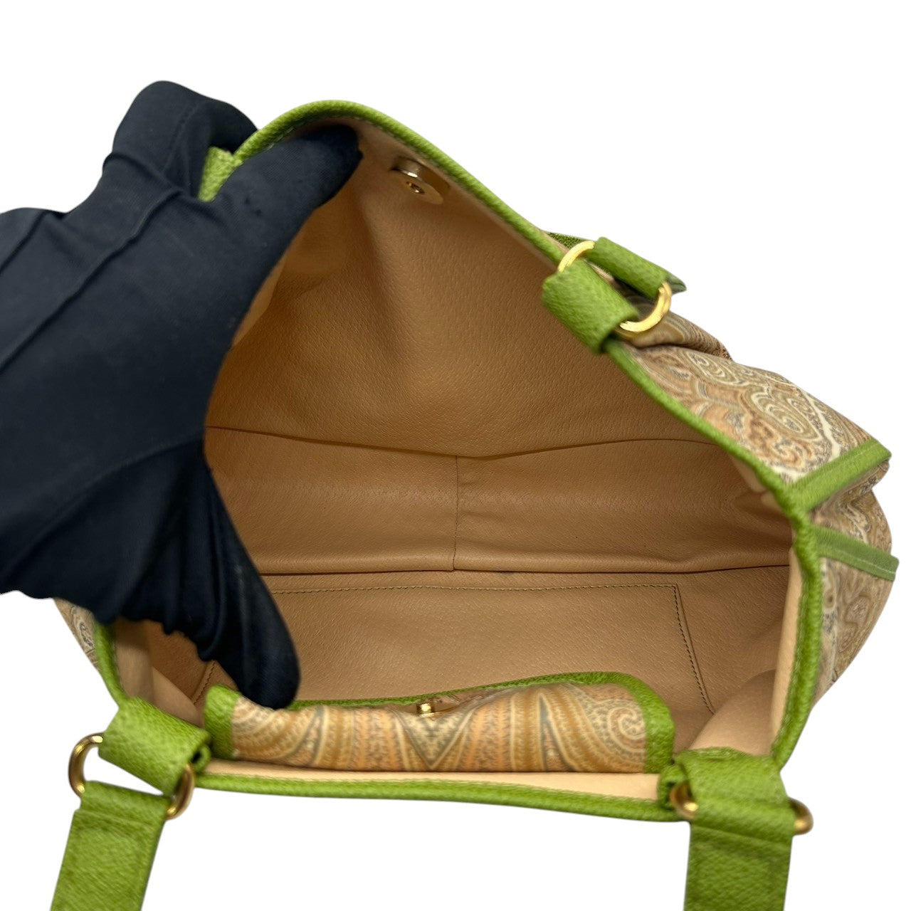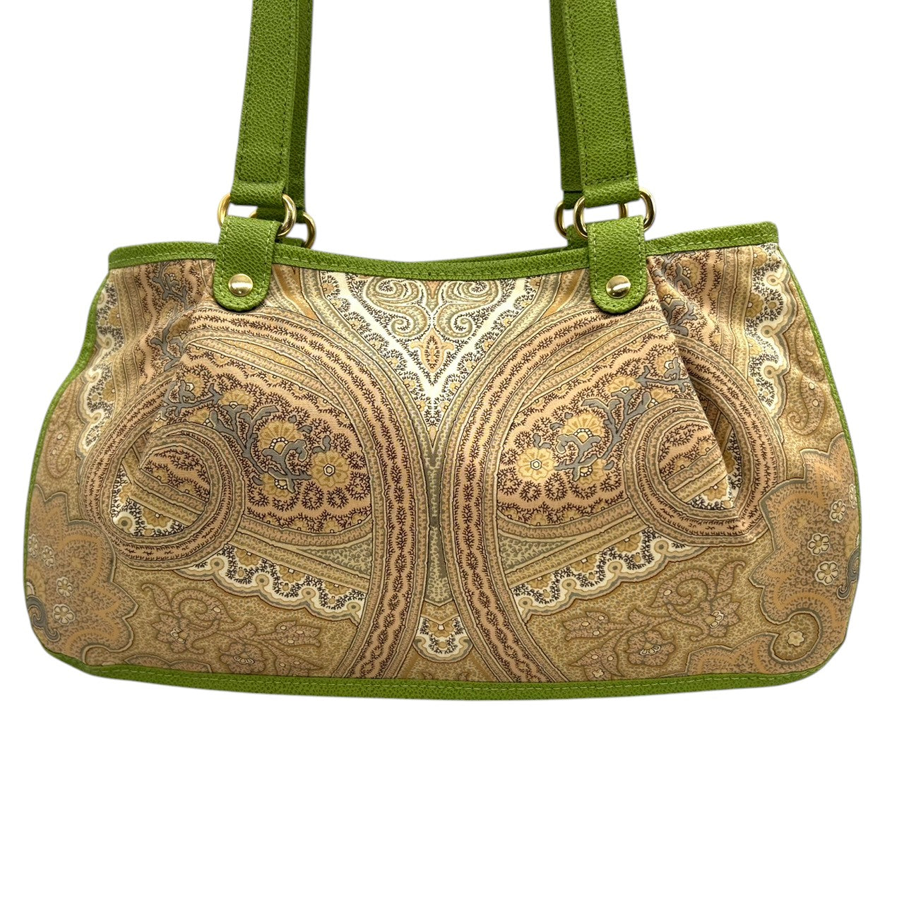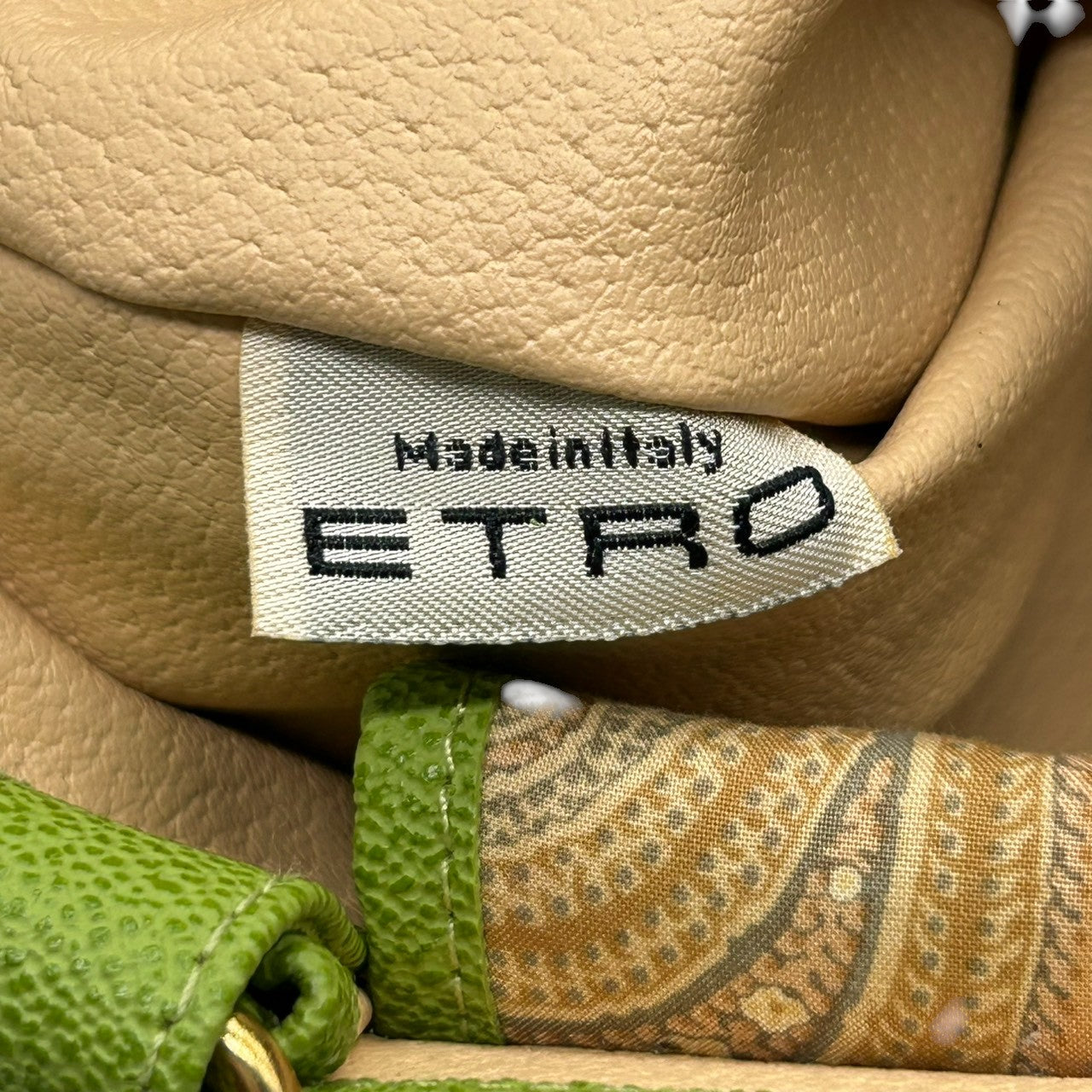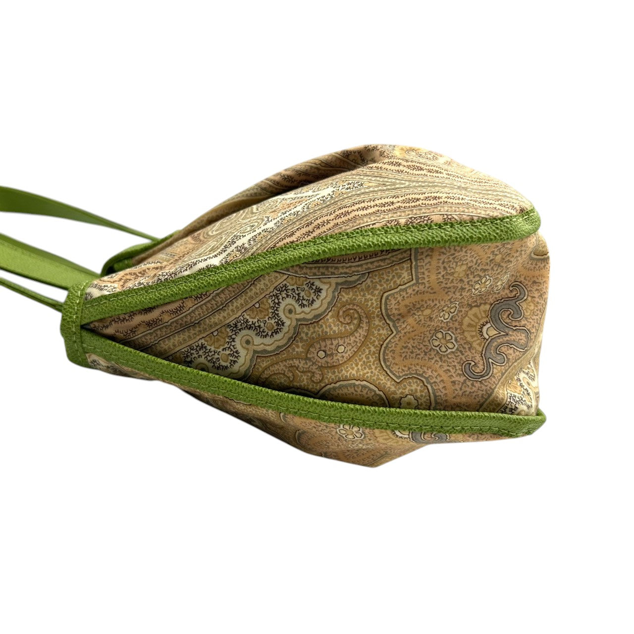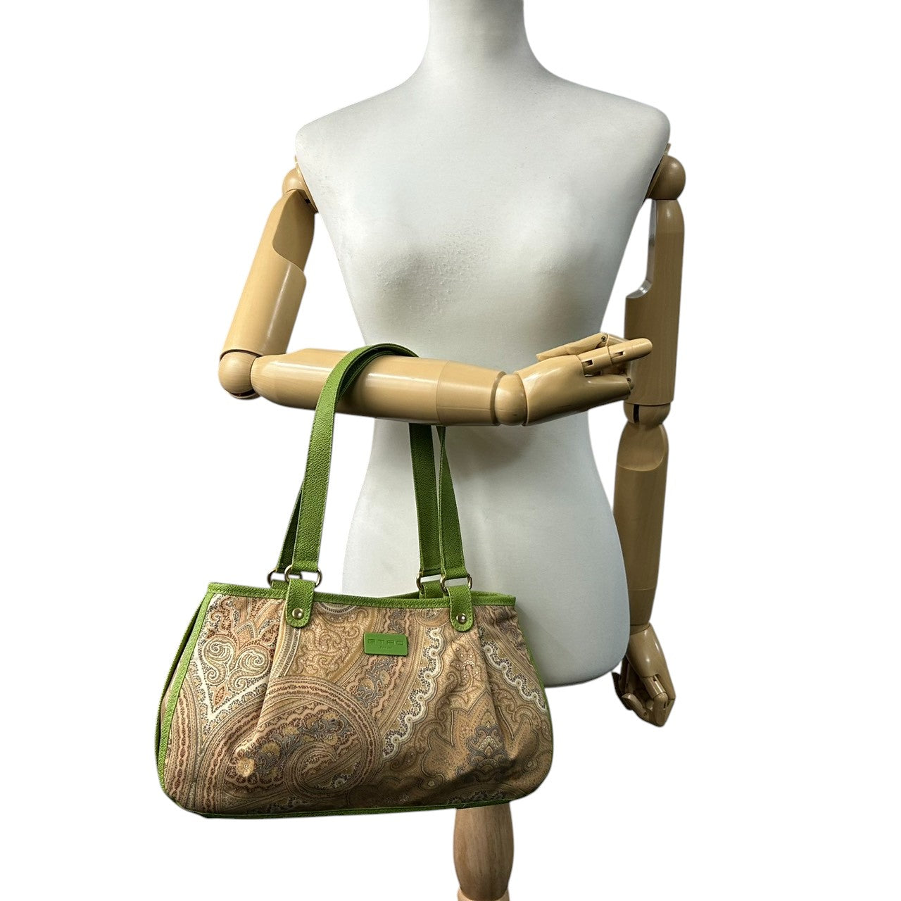 美品 エトロ ETRO ハンドバッグ トートバッグ ペイズリー柄 総柄 ナイロン レザー 本革 グリーン 黄緑 バイカラー ワンショルダー 肩掛け 軽量 Profumi プロフーミ レディース ビンテージ クラシック レトロ カジュアル 鞄 カバン s94