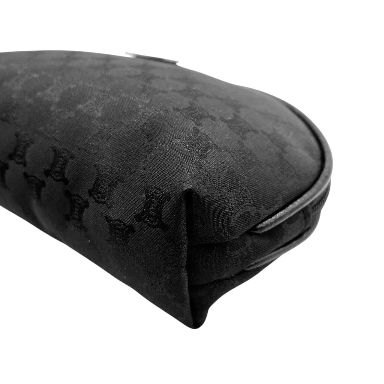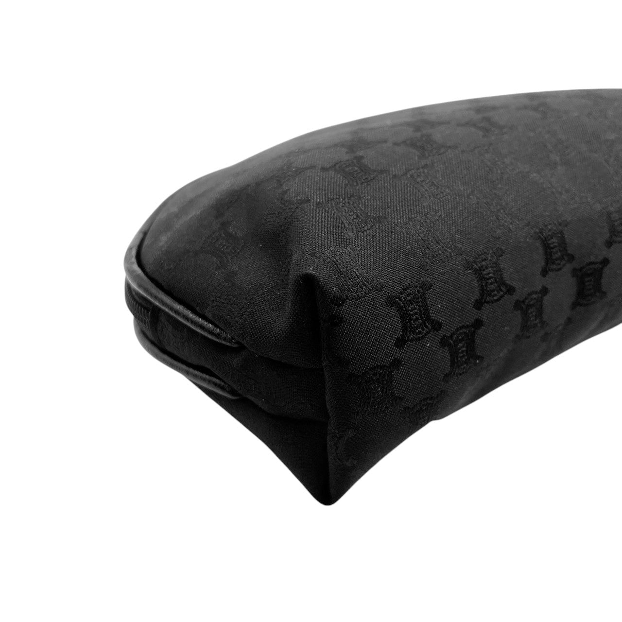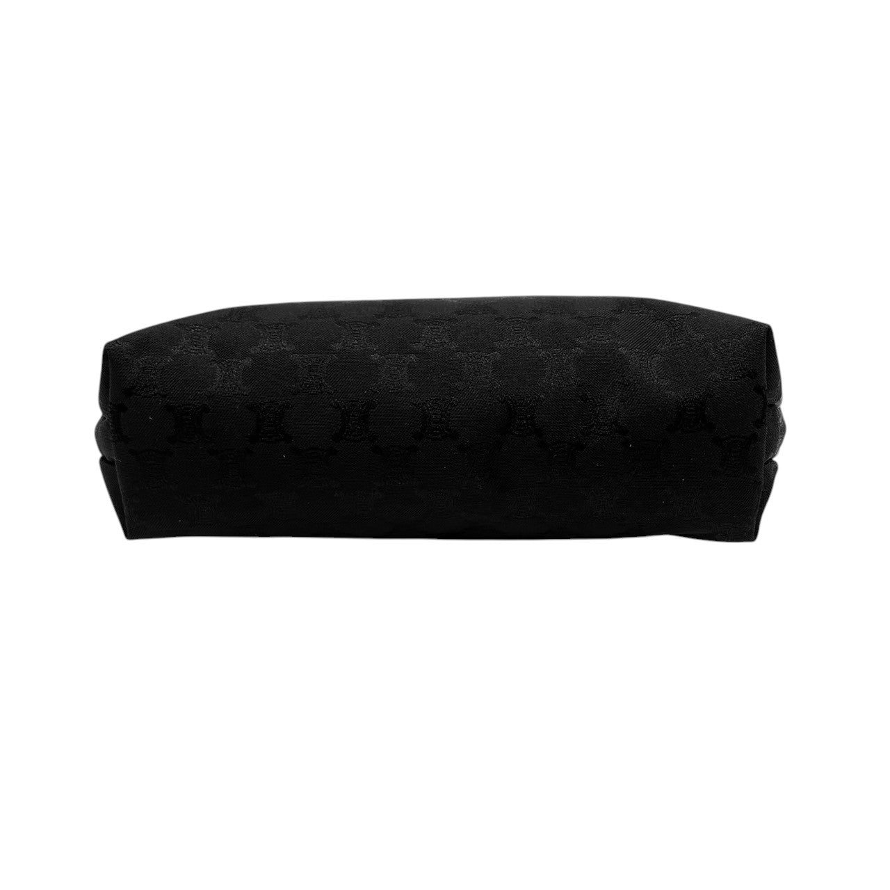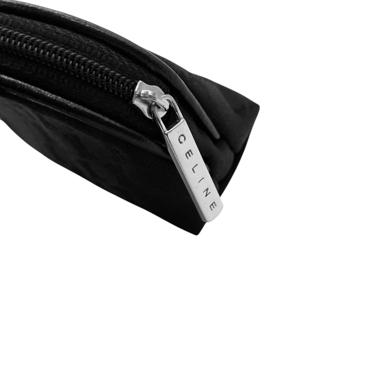 【未使用級】セリーヌ CELINE ポーチ 化粧ポーチ コスメポーチ 小物入れ トリオンフ マカダム 総柄 ロゴプレート ナイロン ブラック 黒 シルバー金具 レディース ノベルティ パルファム メイクポーチ トラベル 旅行 軽量 上品 エレガント 美品 m5
