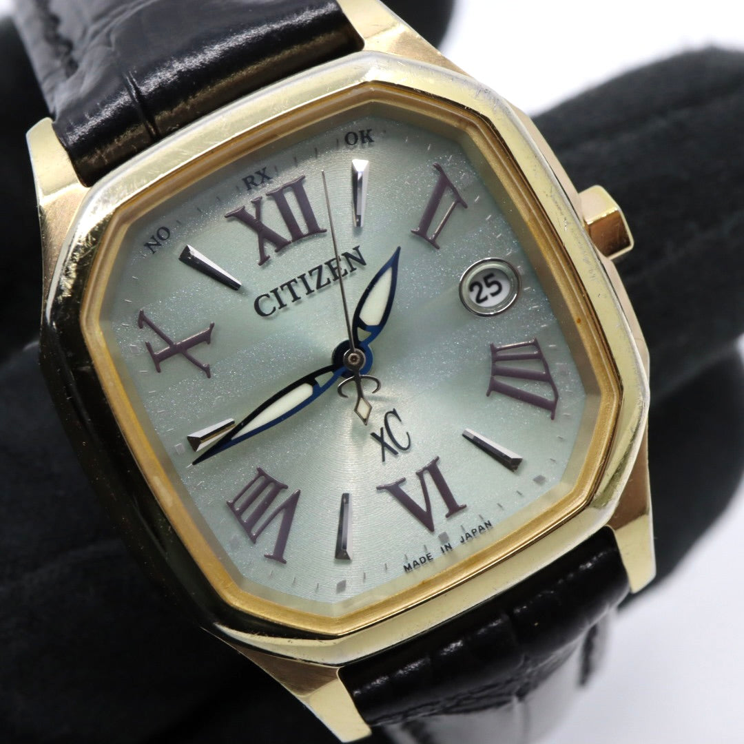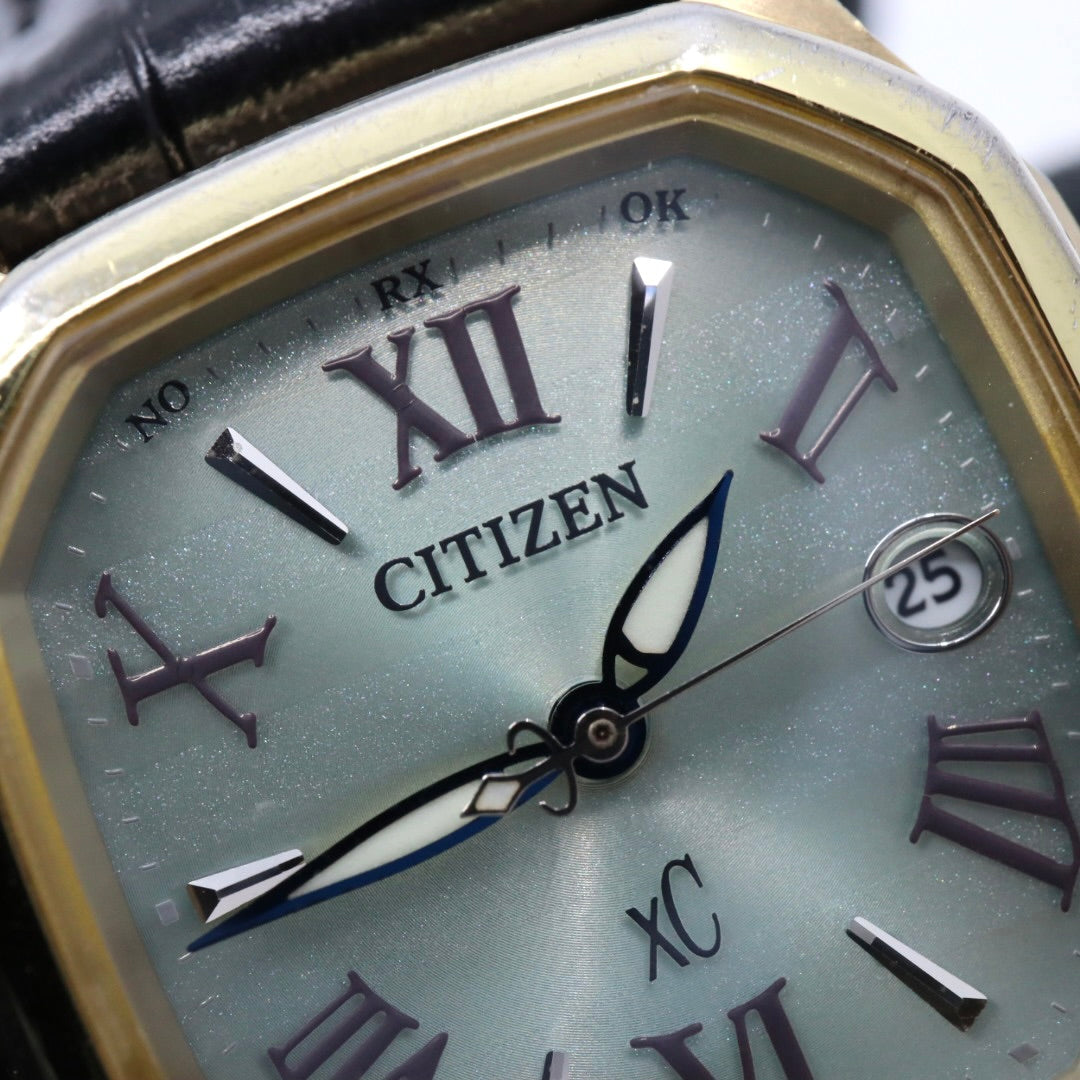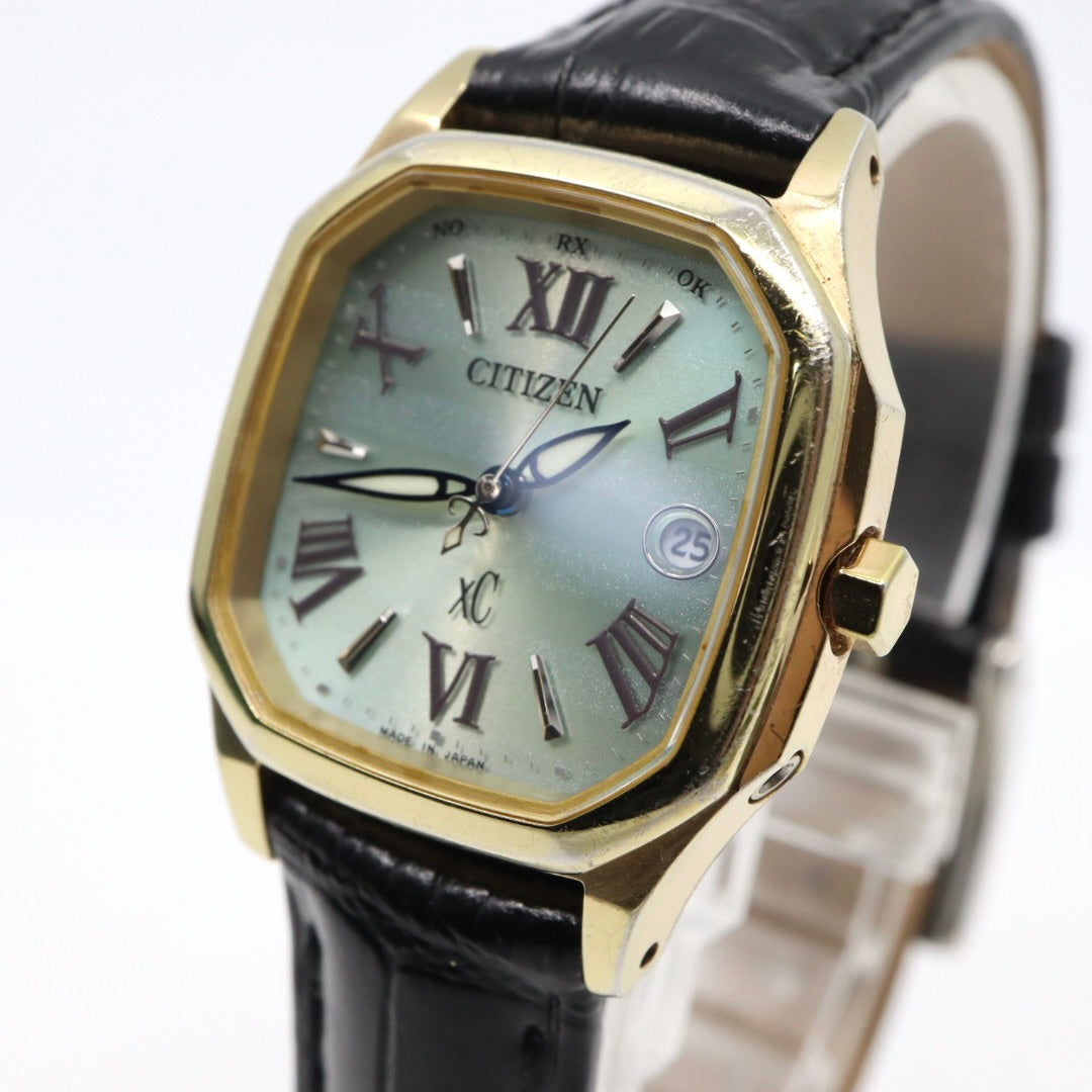 箱付 シチズン CITIZEN xC クロスシー エコドライブ 電波時計 H058-T017576 レディース 腕時計 ソーラー スクエア オクタゴン ゴールド グリーン文字盤 レザー 革ベルト アナログ クラシック G