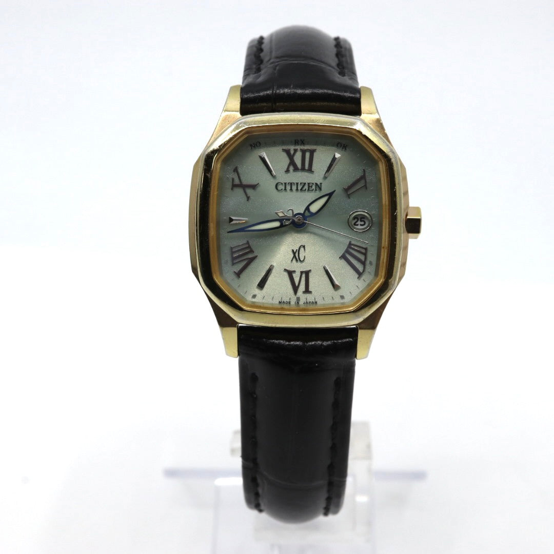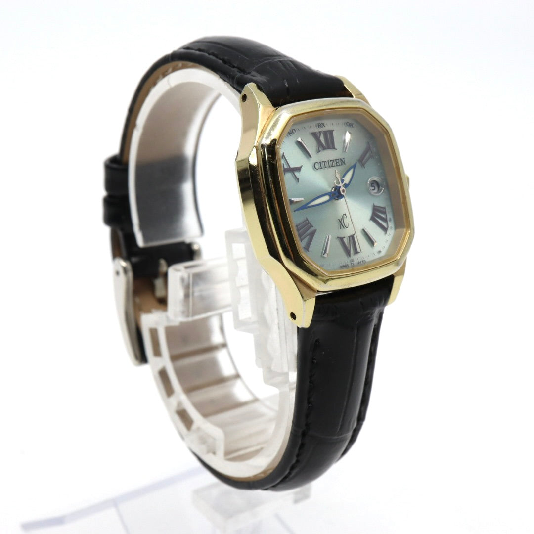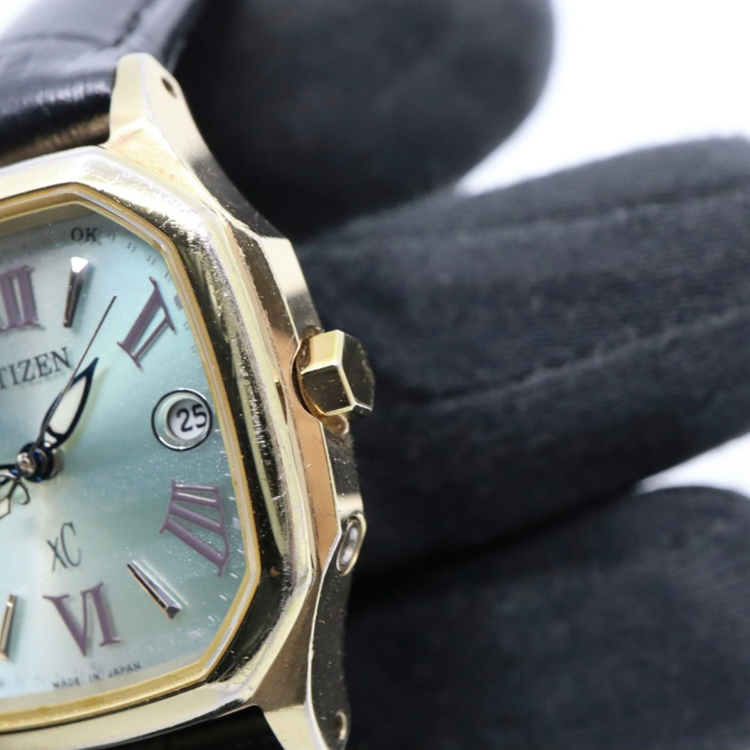 箱付 シチズン CITIZEN xC クロスシー エコドライブ 電波時計 H058-T017576 レディース 腕時計 ソーラー スクエア オクタゴン ゴールド グリーン文字盤 レザー 革ベルト アナログ クラシック G