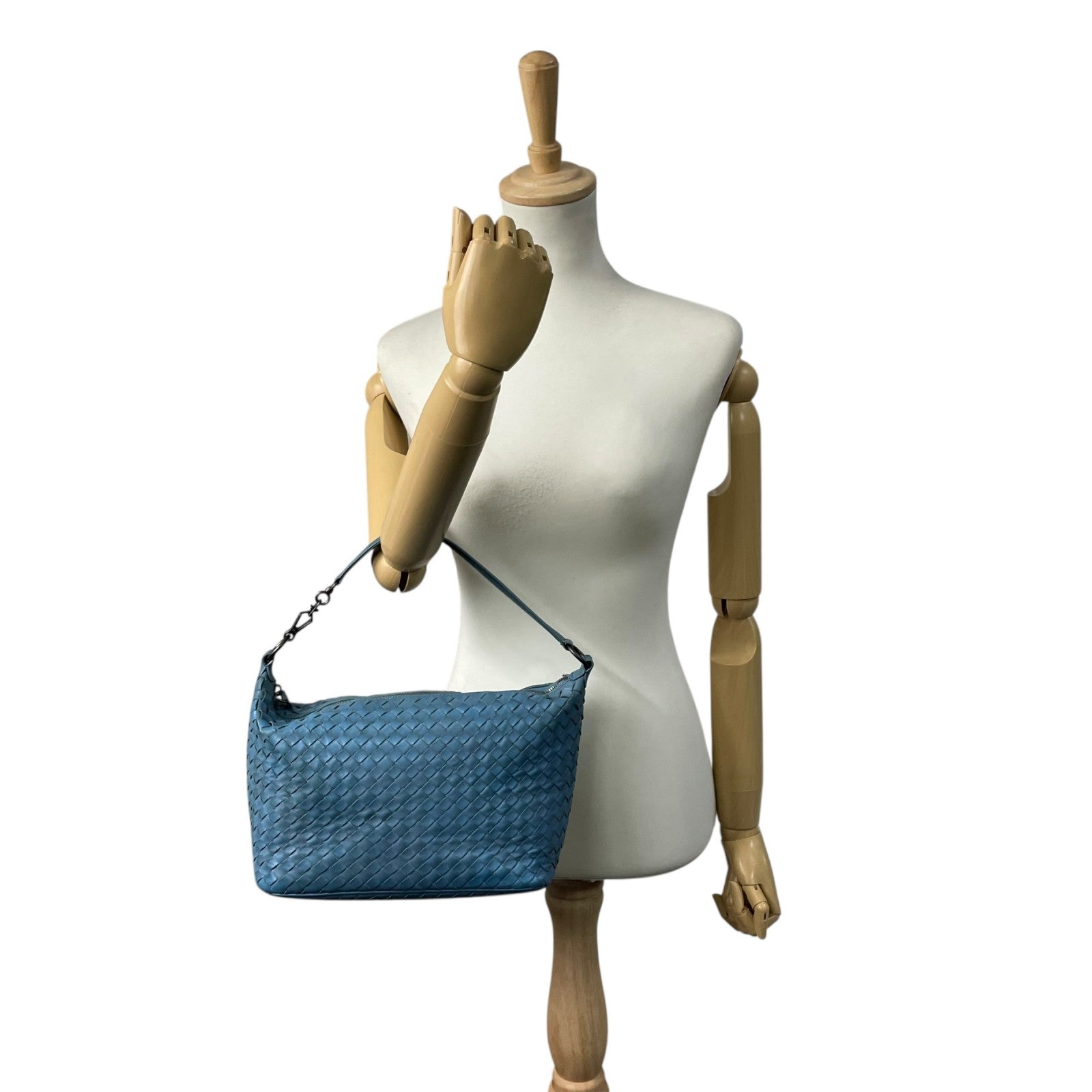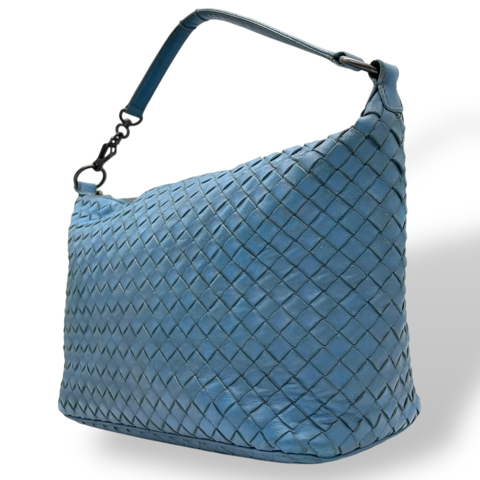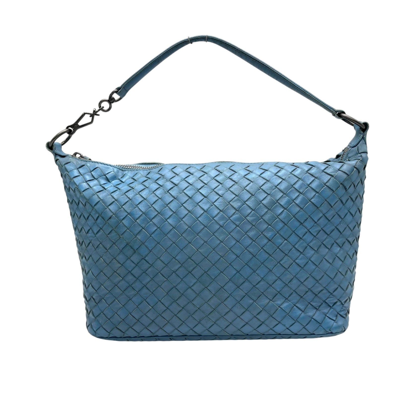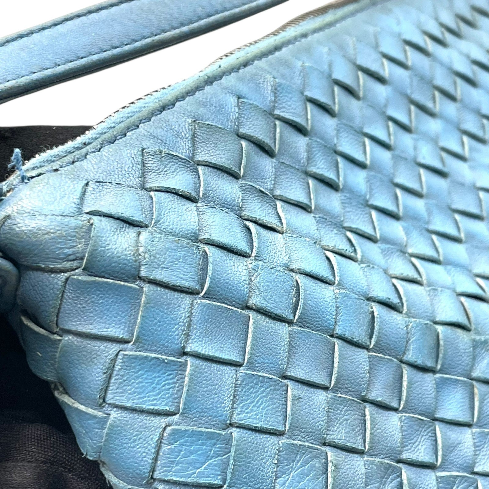 ボッテガヴェネタ イントレチャート ライトブルー レザー ハンドバッグ ショルダー ヴィンテージ 編み込み 革 旧ロゴ イタリア製 上品 k11