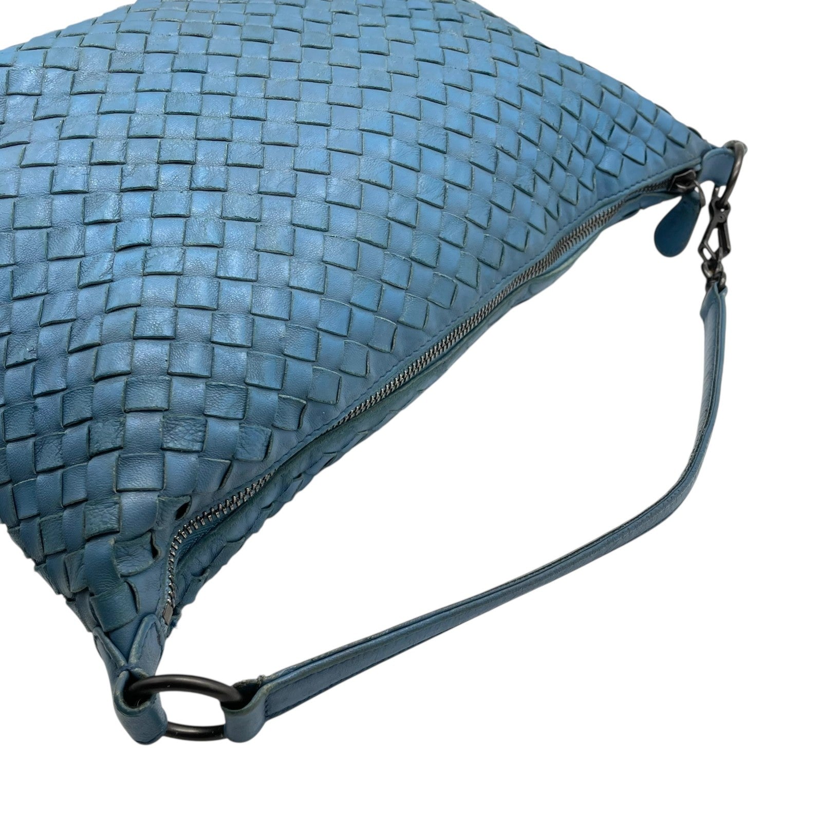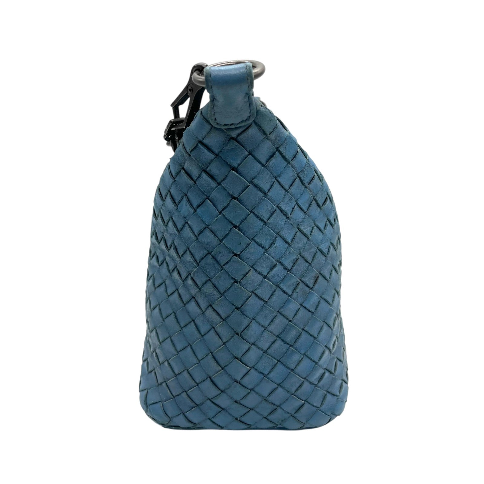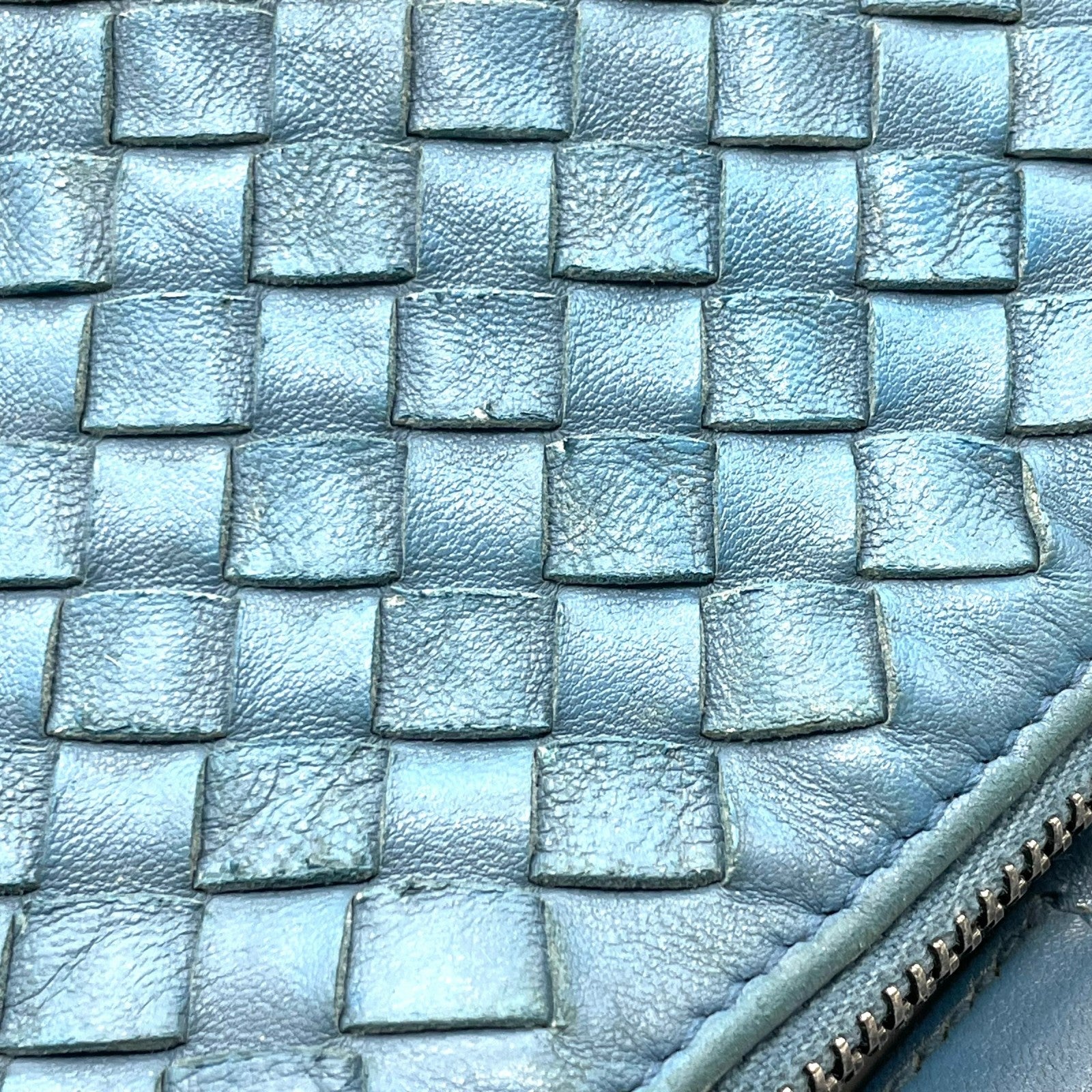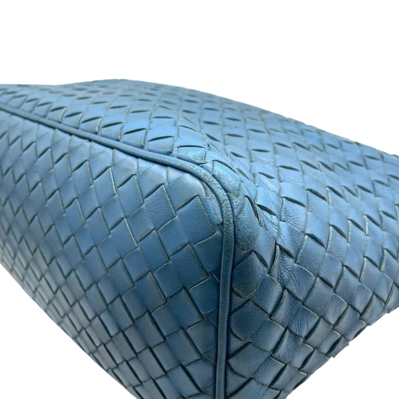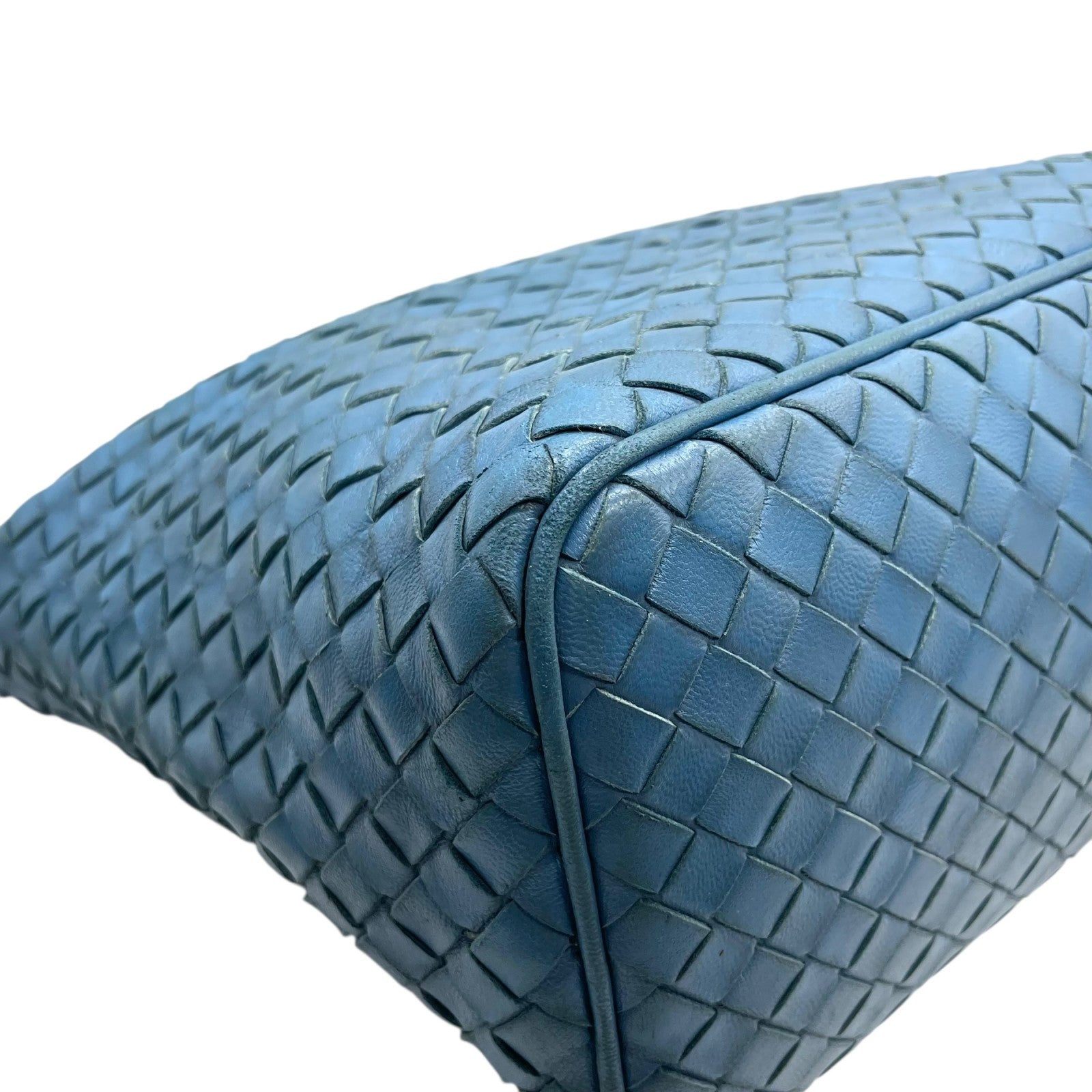 ボッテガヴェネタ イントレチャート ライトブルー レザー ハンドバッグ ショルダー ヴィンテージ 編み込み 革 旧ロゴ イタリア製 上品 k11