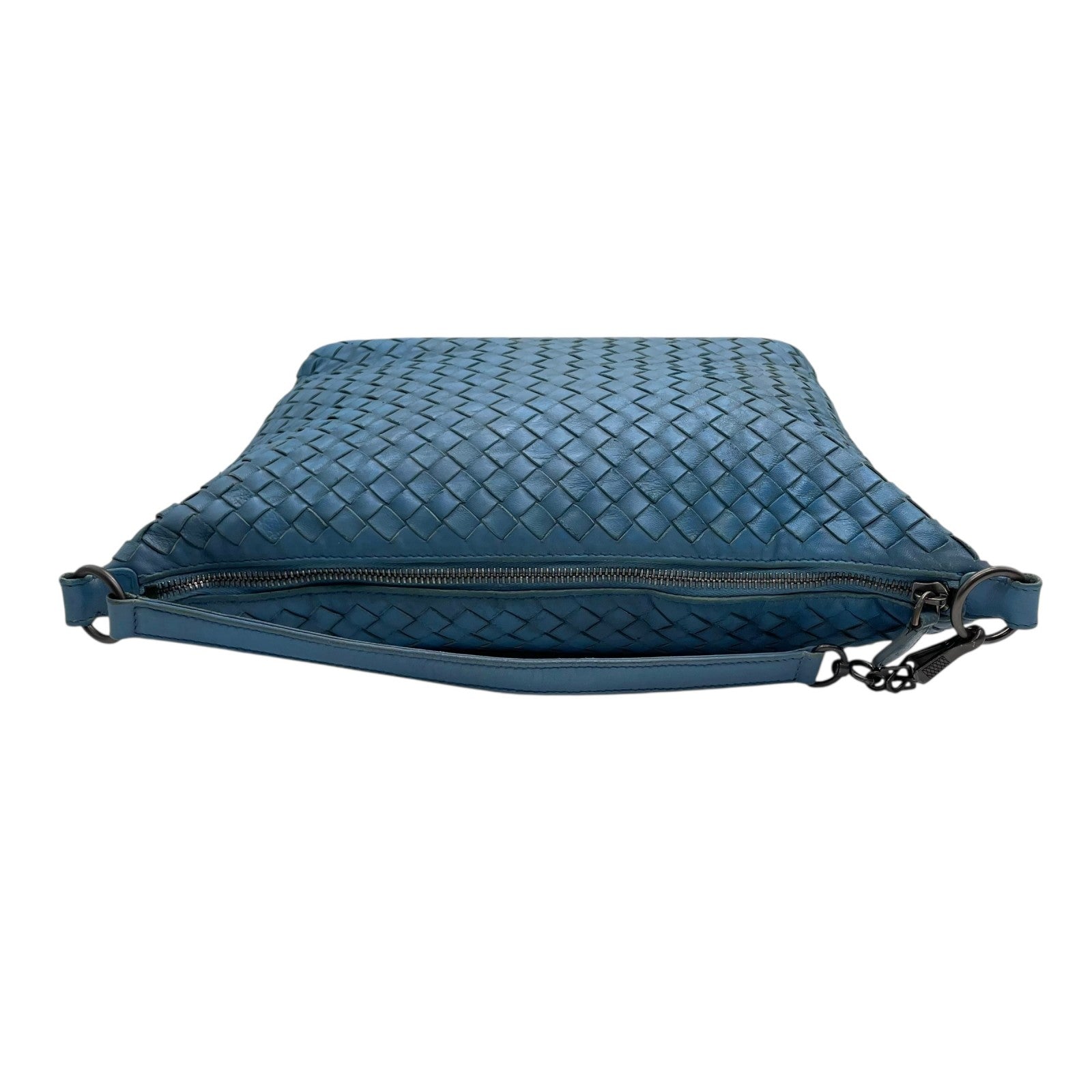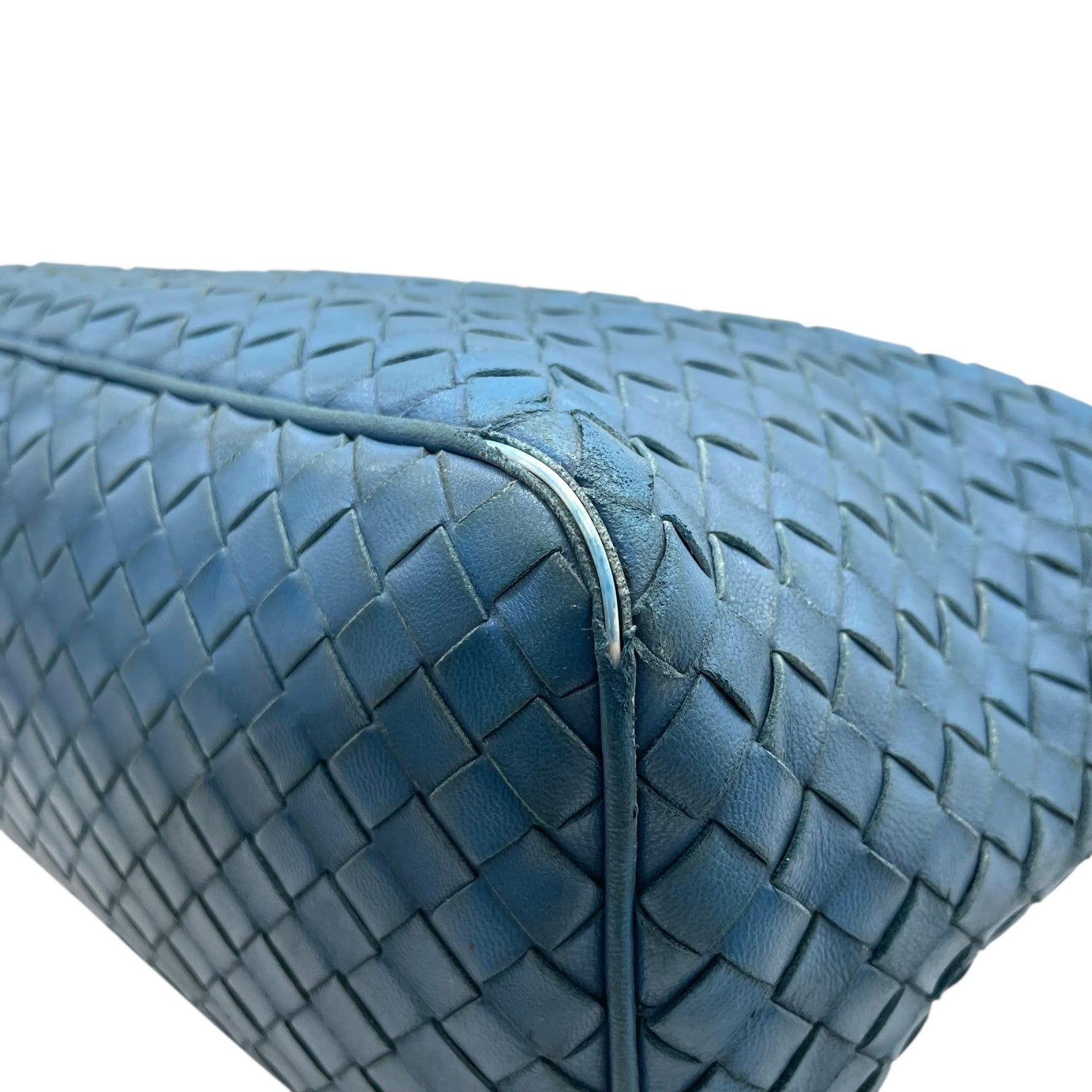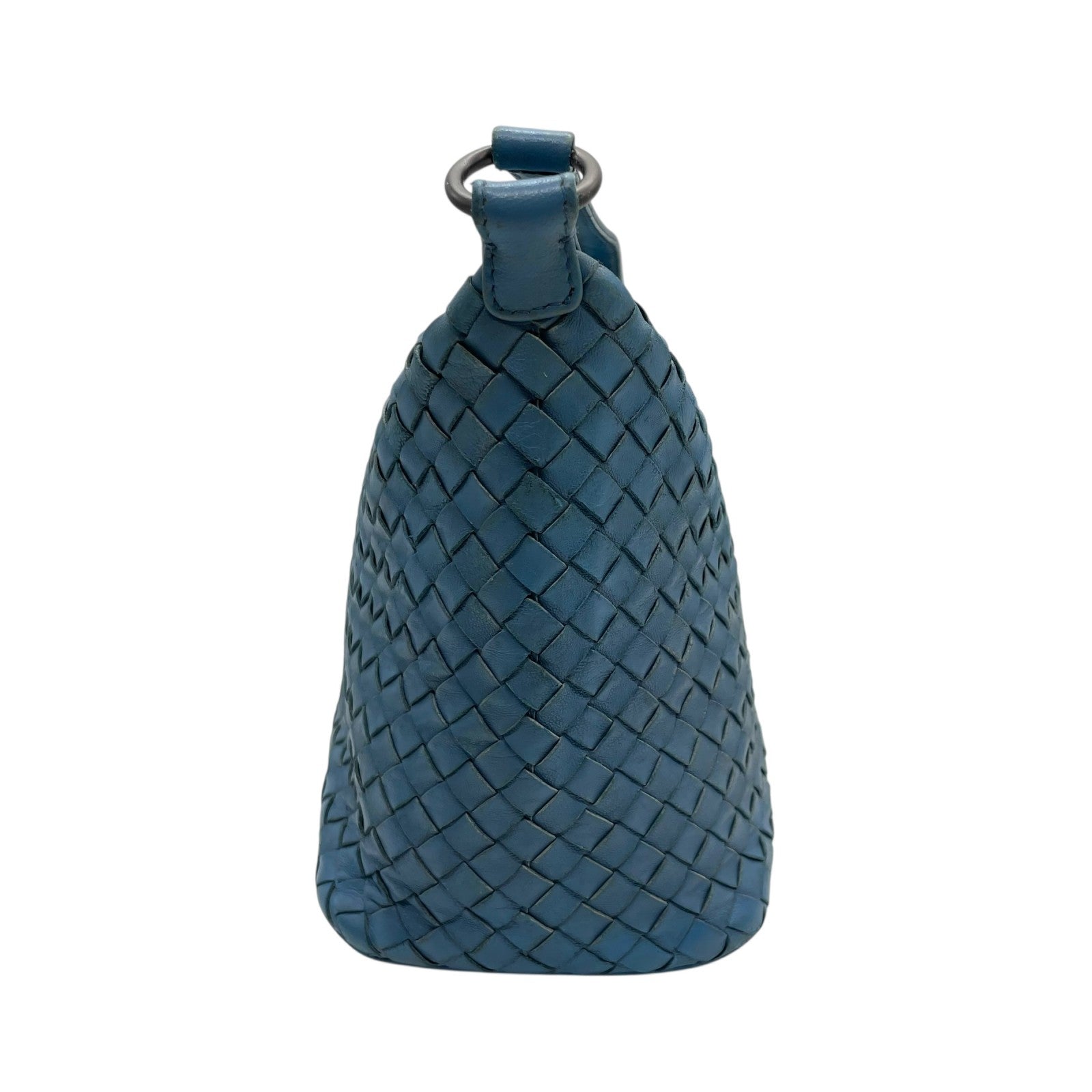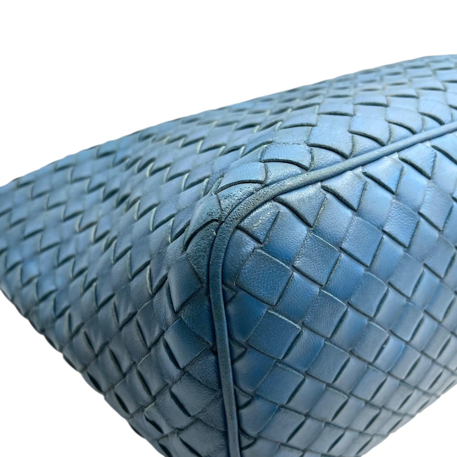 ボッテガヴェネタ イントレチャート ライトブルー レザー ハンドバッグ ショルダー ヴィンテージ 編み込み 革 旧ロゴ イタリア製 上品 k11
