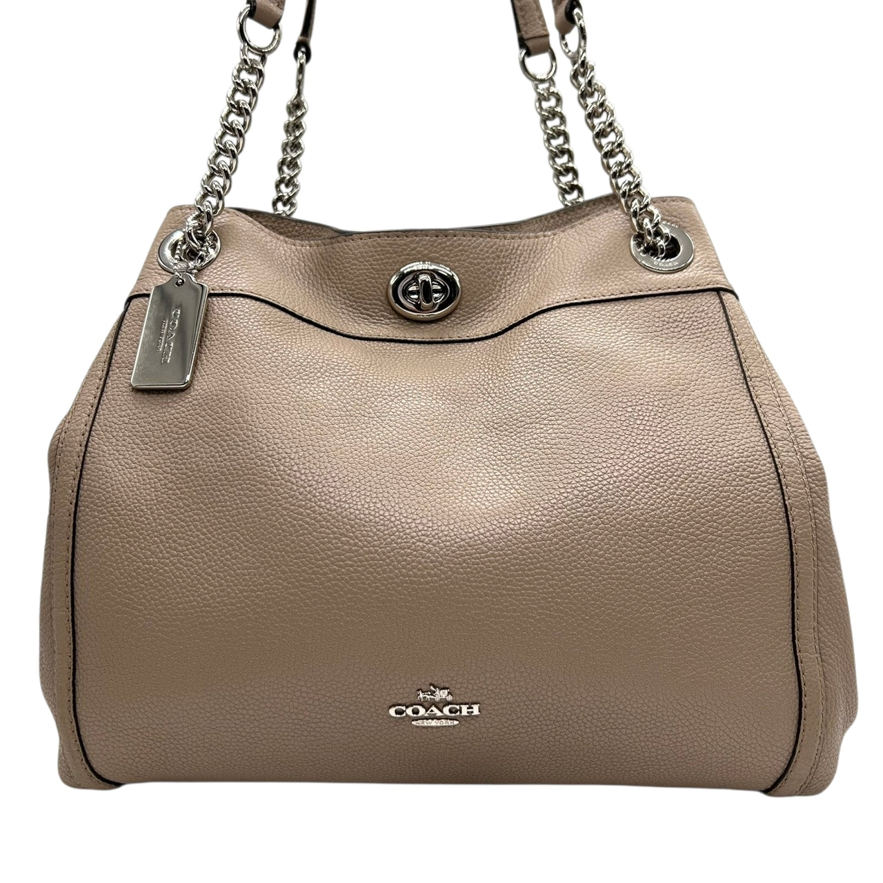 美品 コーチ COACH イーディー 36855 トートバッグ ショルダーバッグ チェーン ターンロック レザー 本革 ベージュ グレージュ レディース 肩掛け ワンショルダー A4収納可 通勤 通学 鞄 カバン s78