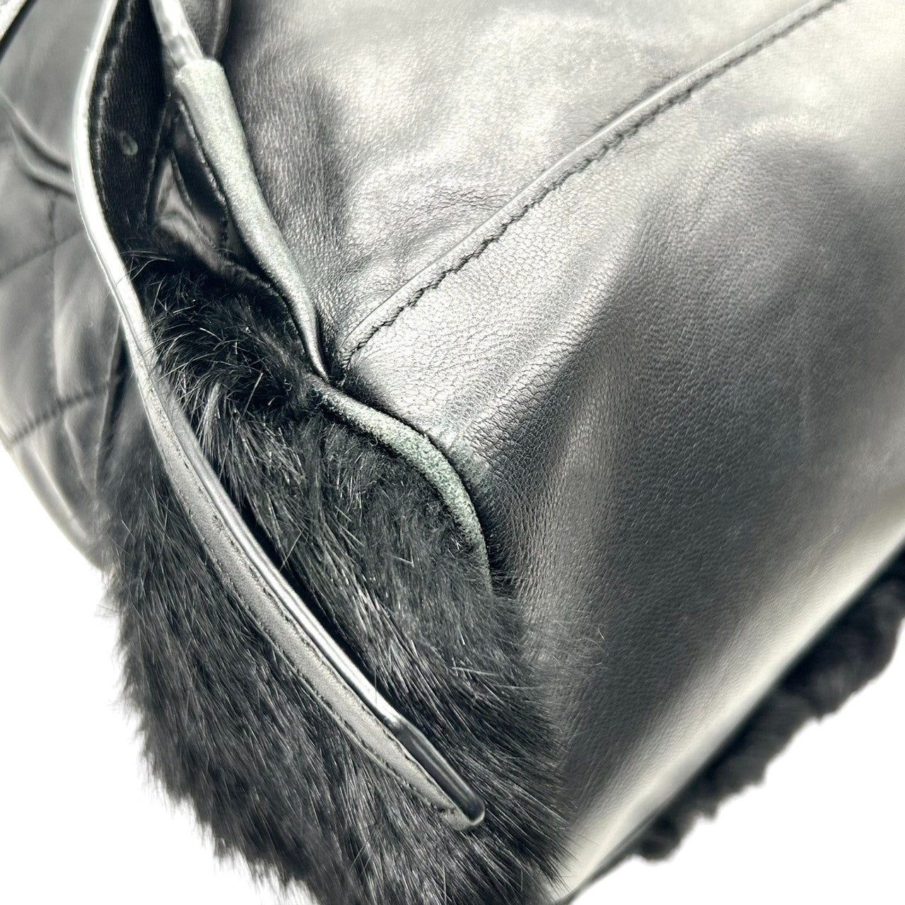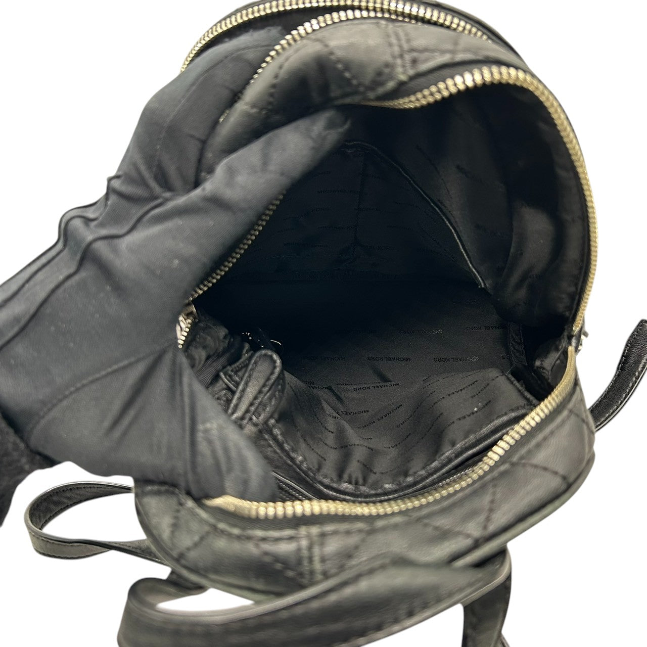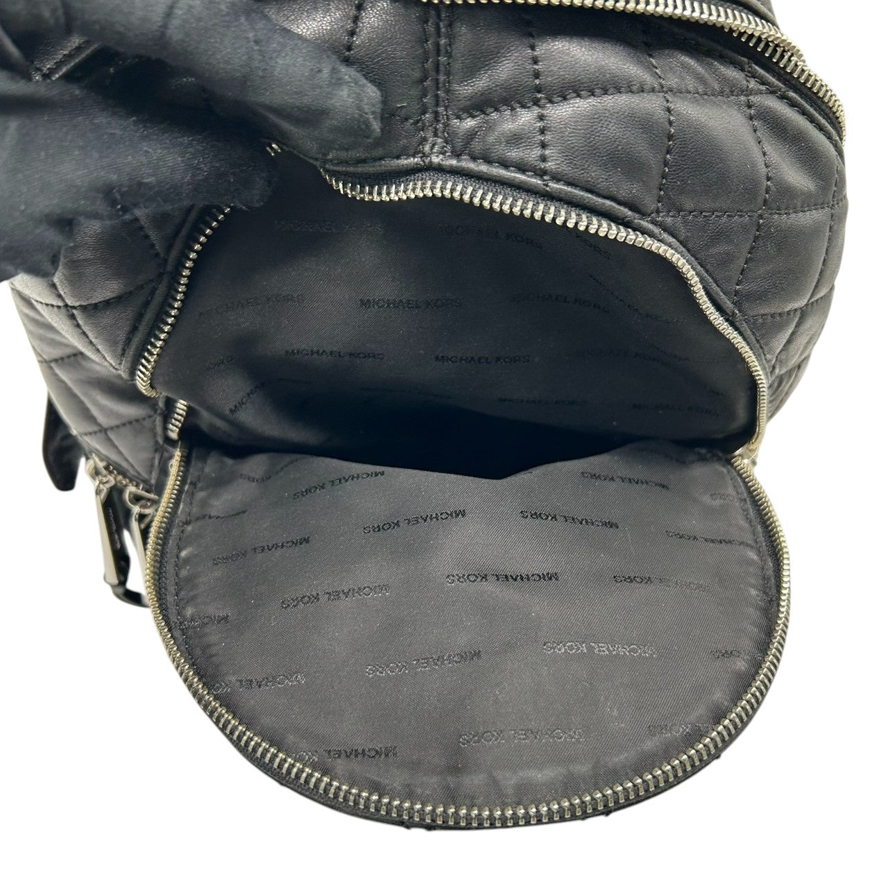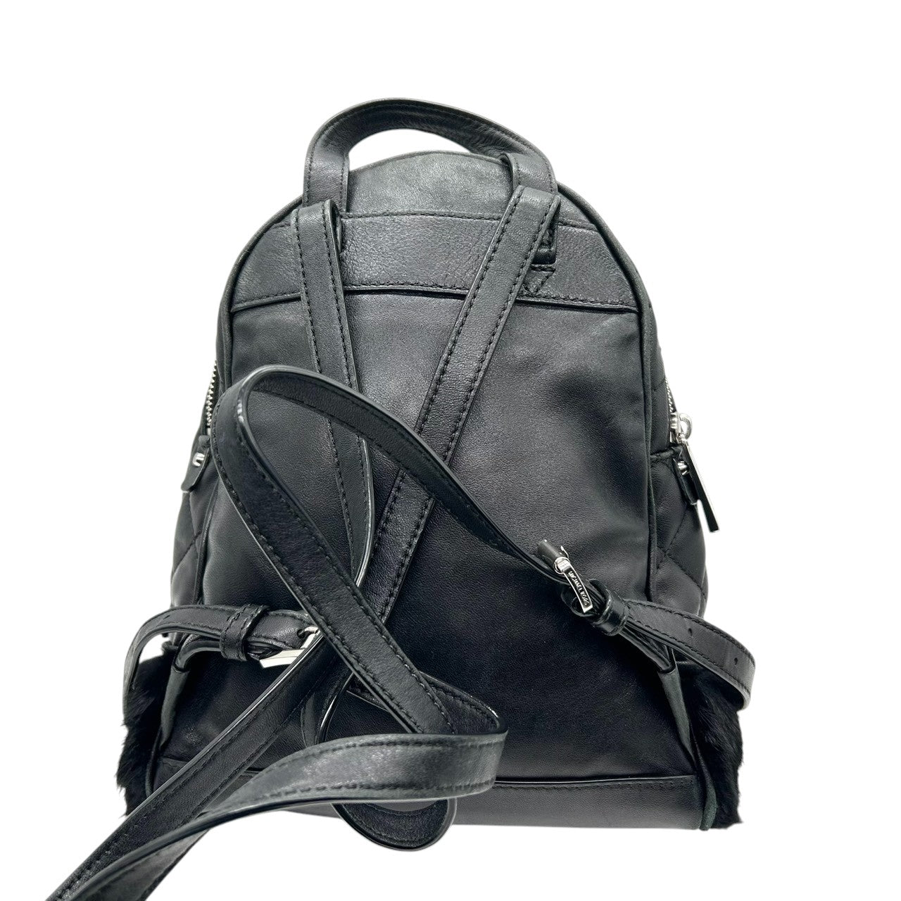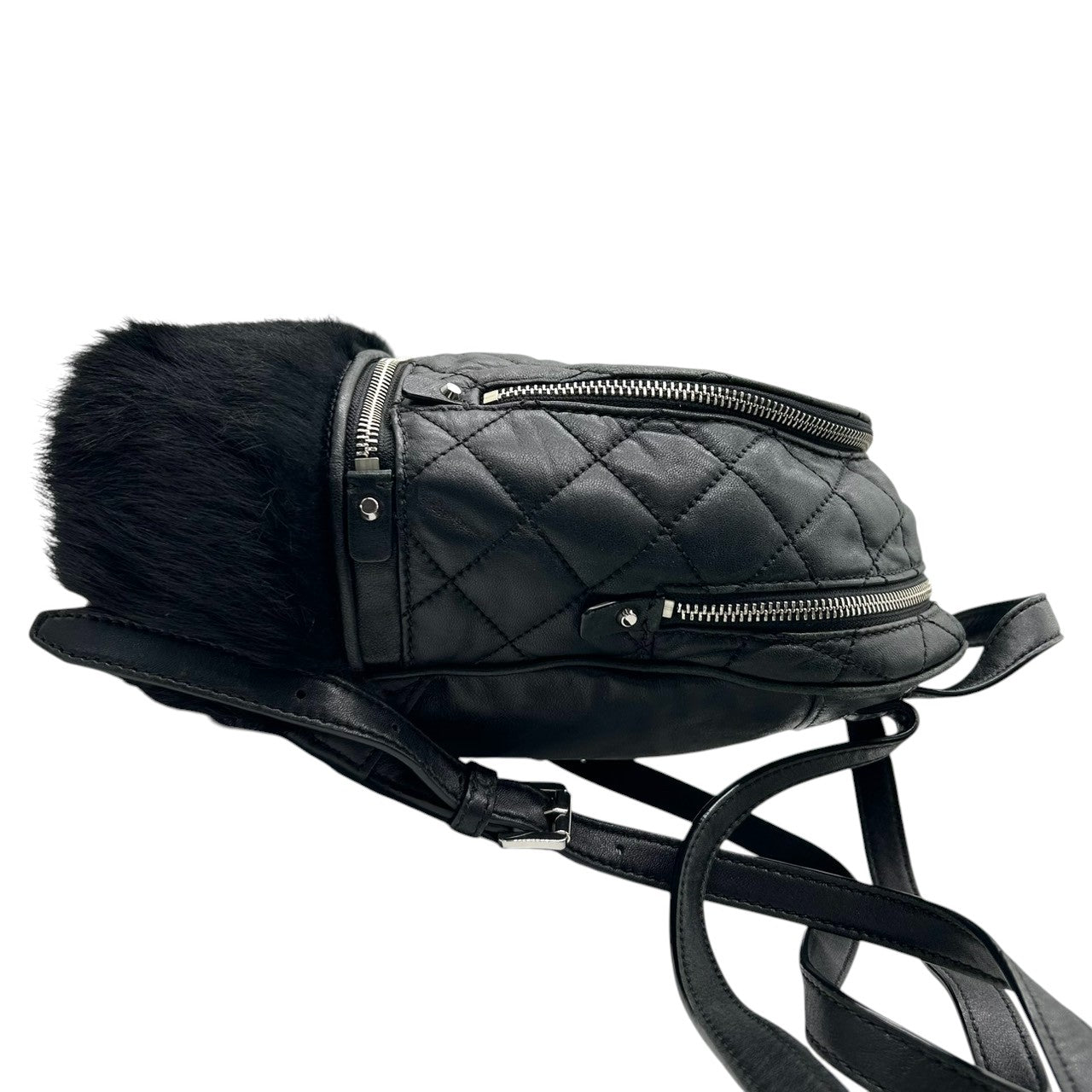 美品 マイケルコース MICHAEL KORS リア Rhea リュック バックパック ミニリュック デイパック キルティング レザー 本革 ファー 異素材 ブラック 黒 シルバー金具 チェーン レディース 小さめ コンパクト エレガント 鞄 カバン T