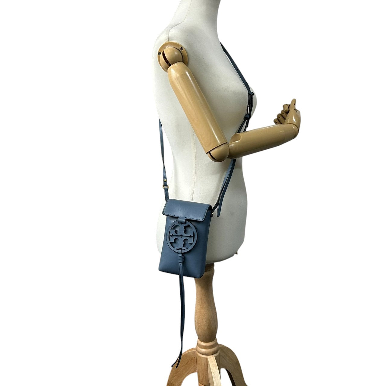 美品 トリーバーチ TORY BURCH ミラー Miller フォンクロスボディ スマホショルダー バッグ ポーチ レザー 本革 ブルー 水色 デカロゴ 斜め掛け ポシェット ミニバッグ サコッシュ レディース 鞄 カバン 軽量 コンパクト s34