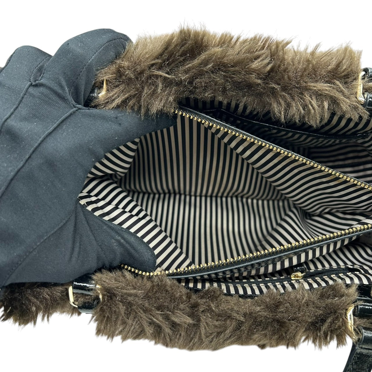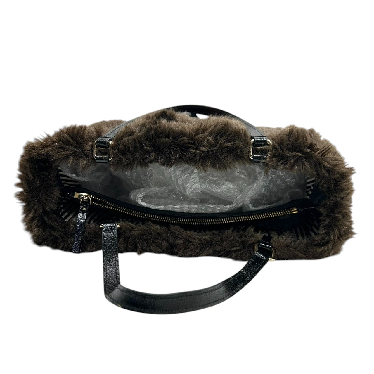 美品 ケイトスペード kate spade ハンドバッグ トートバッグ ダッフルコート風 トグルボタン ファー キャンバス オレンジ ブラウン 茶色 自立可 レディース 秋冬 お出かけ デート カジュアル 個性的 保存袋付 s78