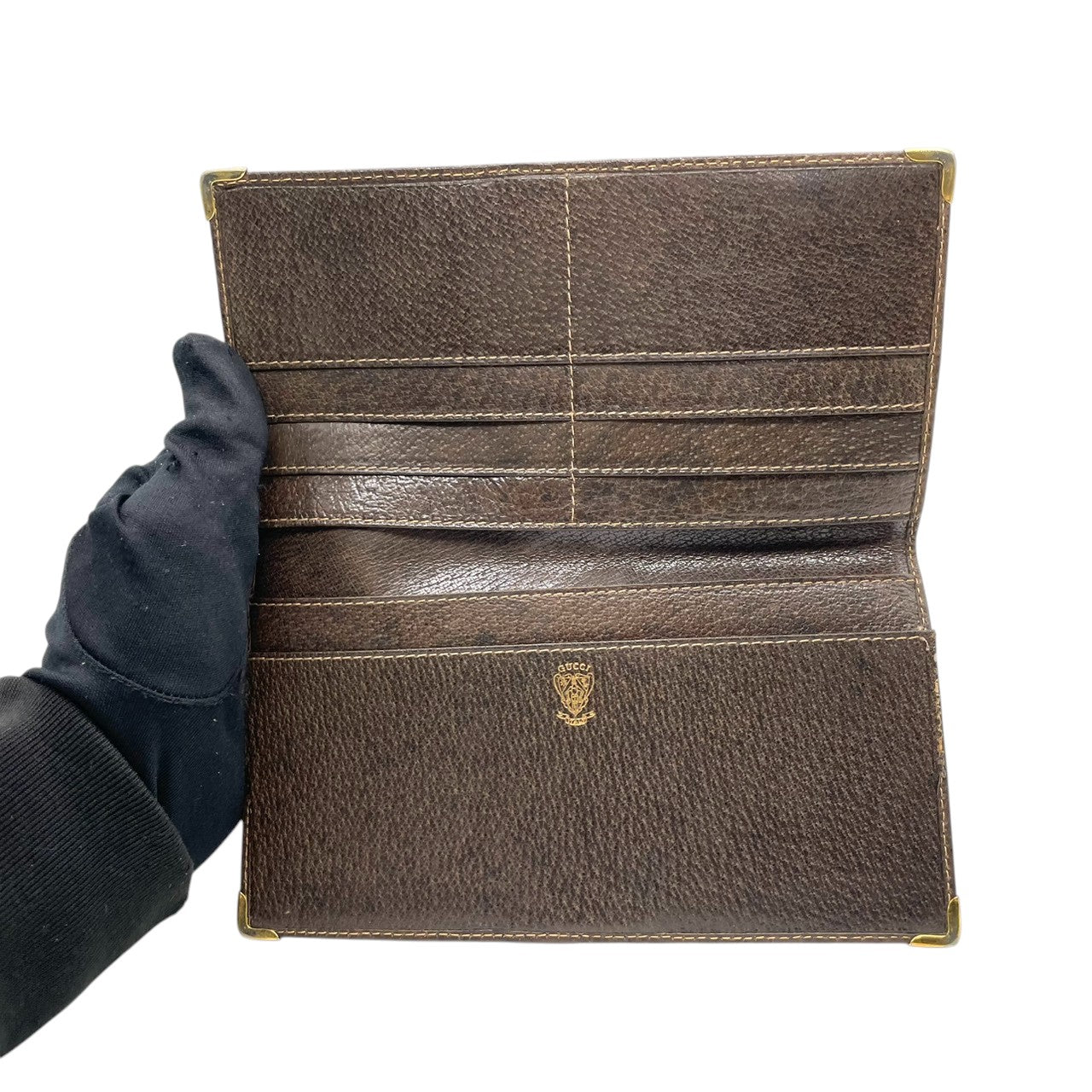希少 オールドグッチ GUCCI 長財布 札入れ 二つ折り シェリーライン GGスプリーム PVC レザー 茶 ベージュ ヴィンテージ クレストロゴ ゴールド金具 コーナー金具 薄型 スリム メンズ レディース 男女兼用 財布 イタリア製 w5