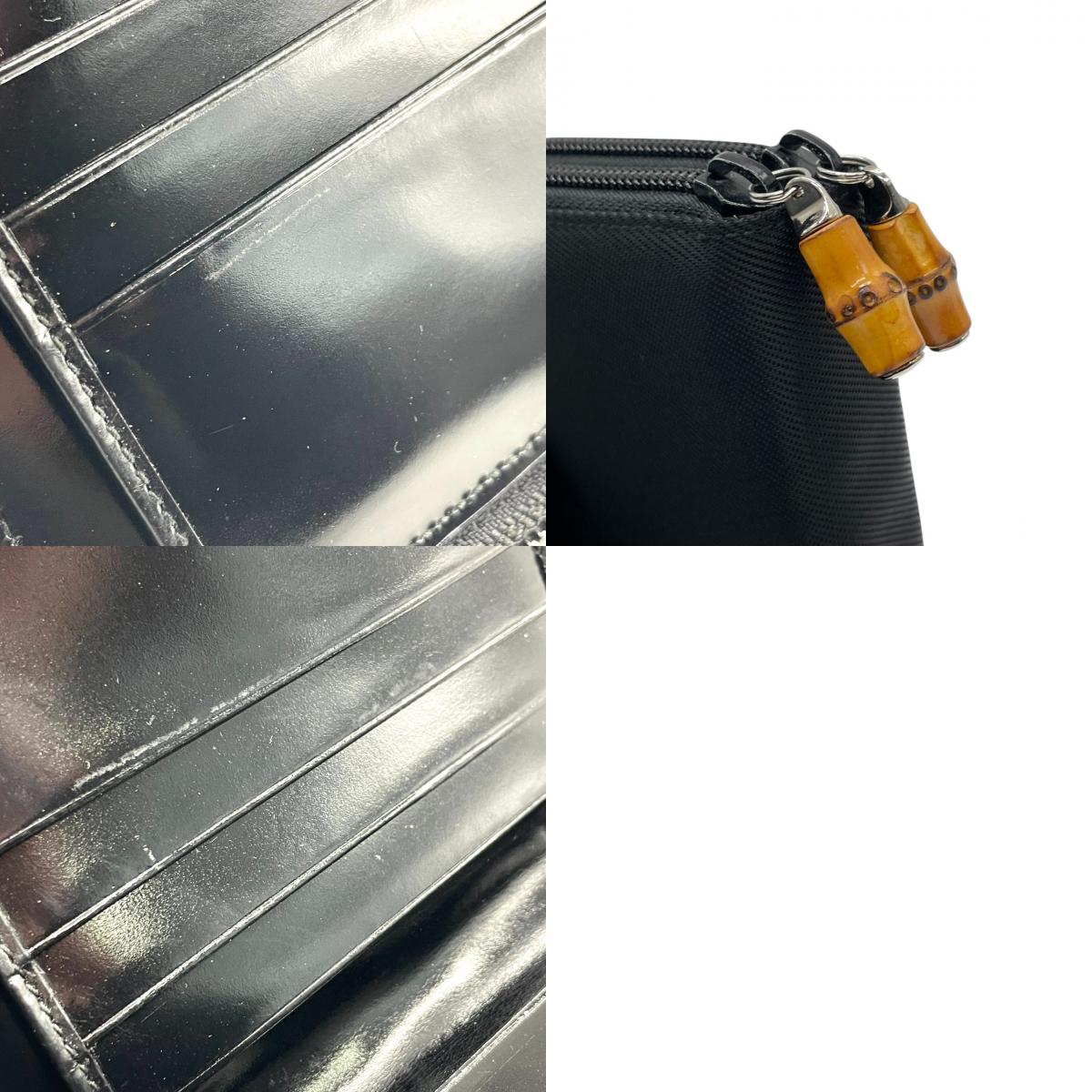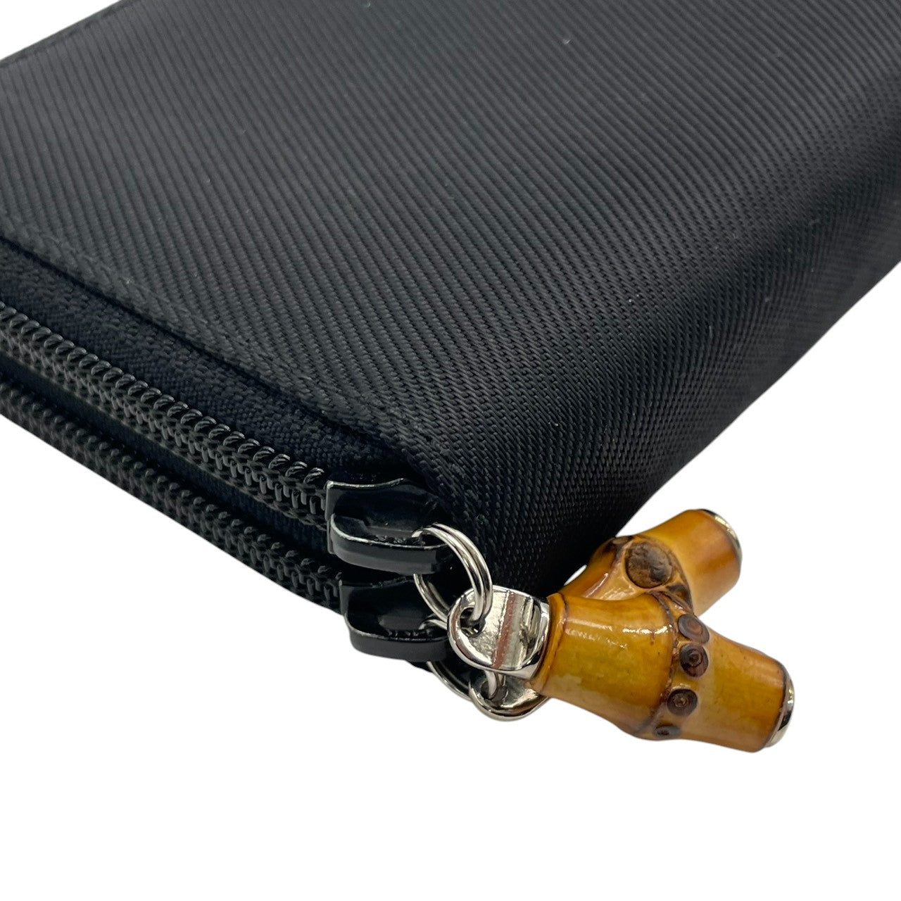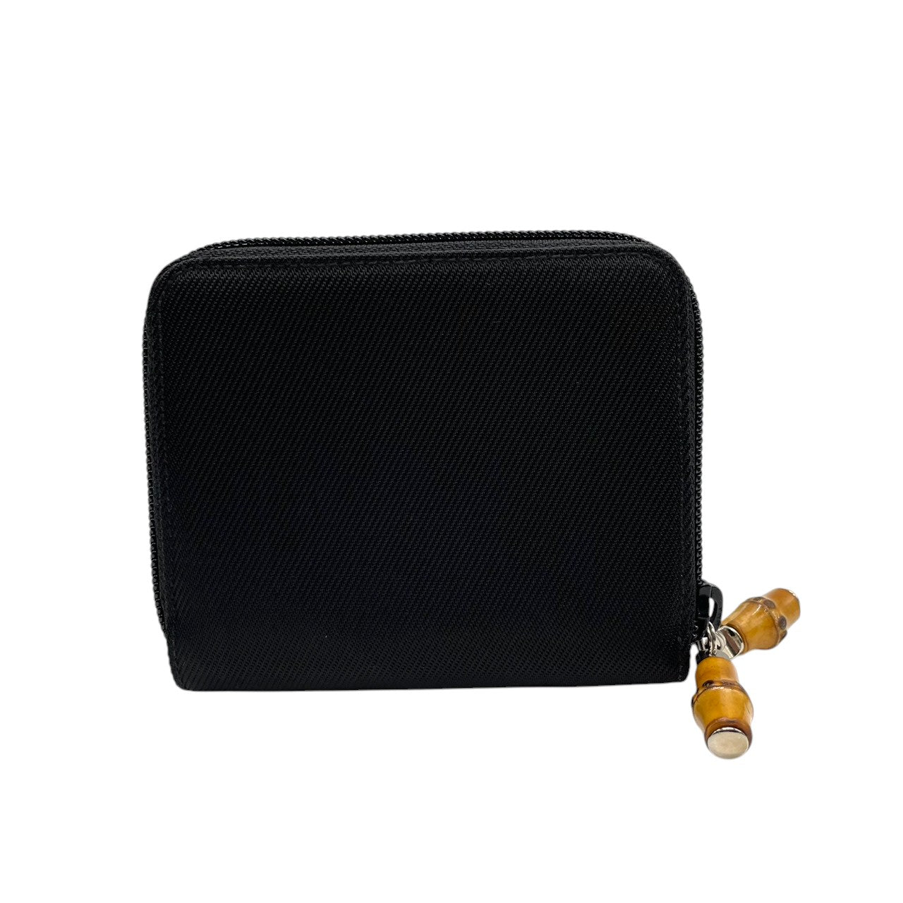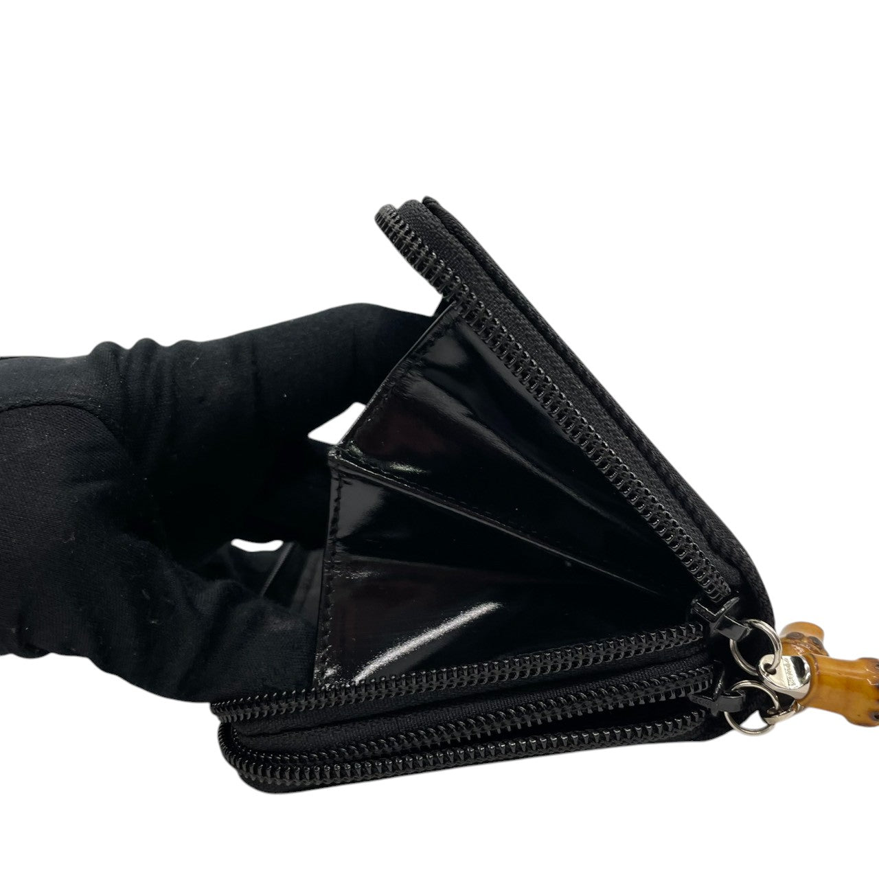 【美品】グッチ GUCCI バンブー ダブルファスナー コンパクトウォレット 二つ折り財布 ナイロン パテントレザー エナメル 黒 ブラック ラウンドジップ ミニ財布 コインケース 小銭入れ ヴィンテージ オールド イタリア製 レディース メンズ w5