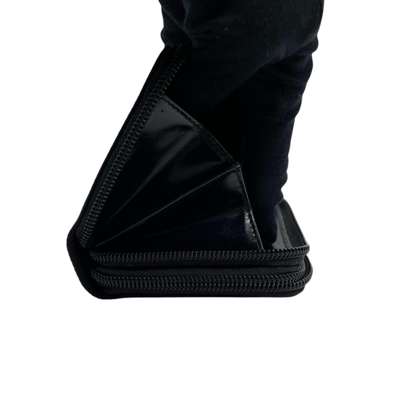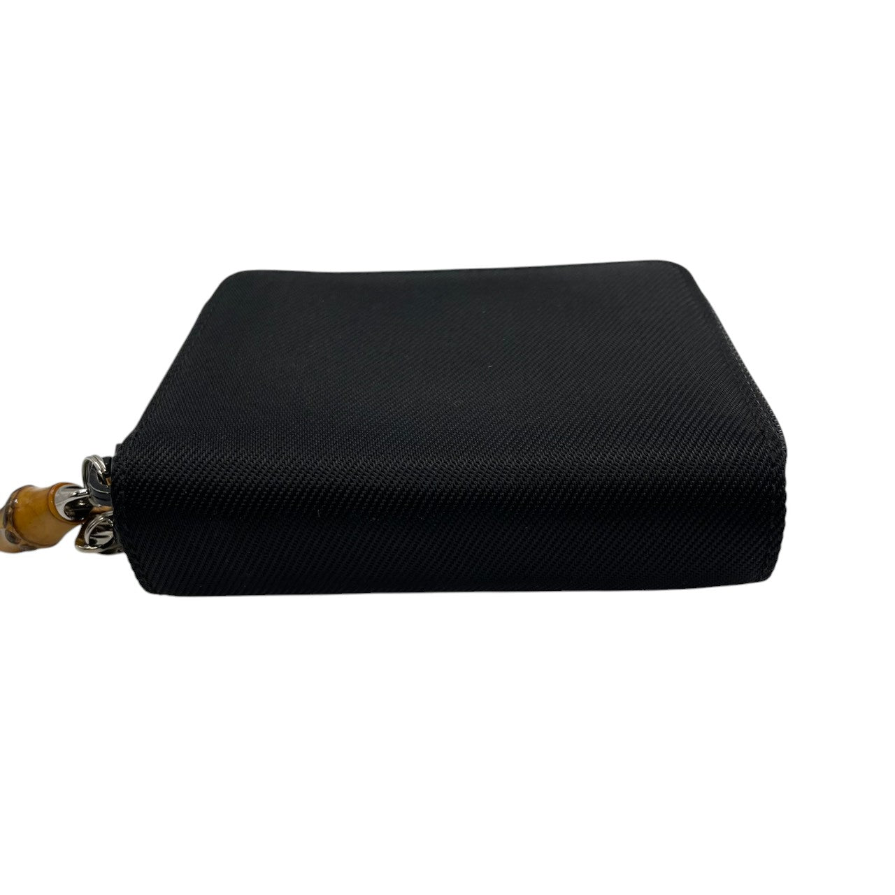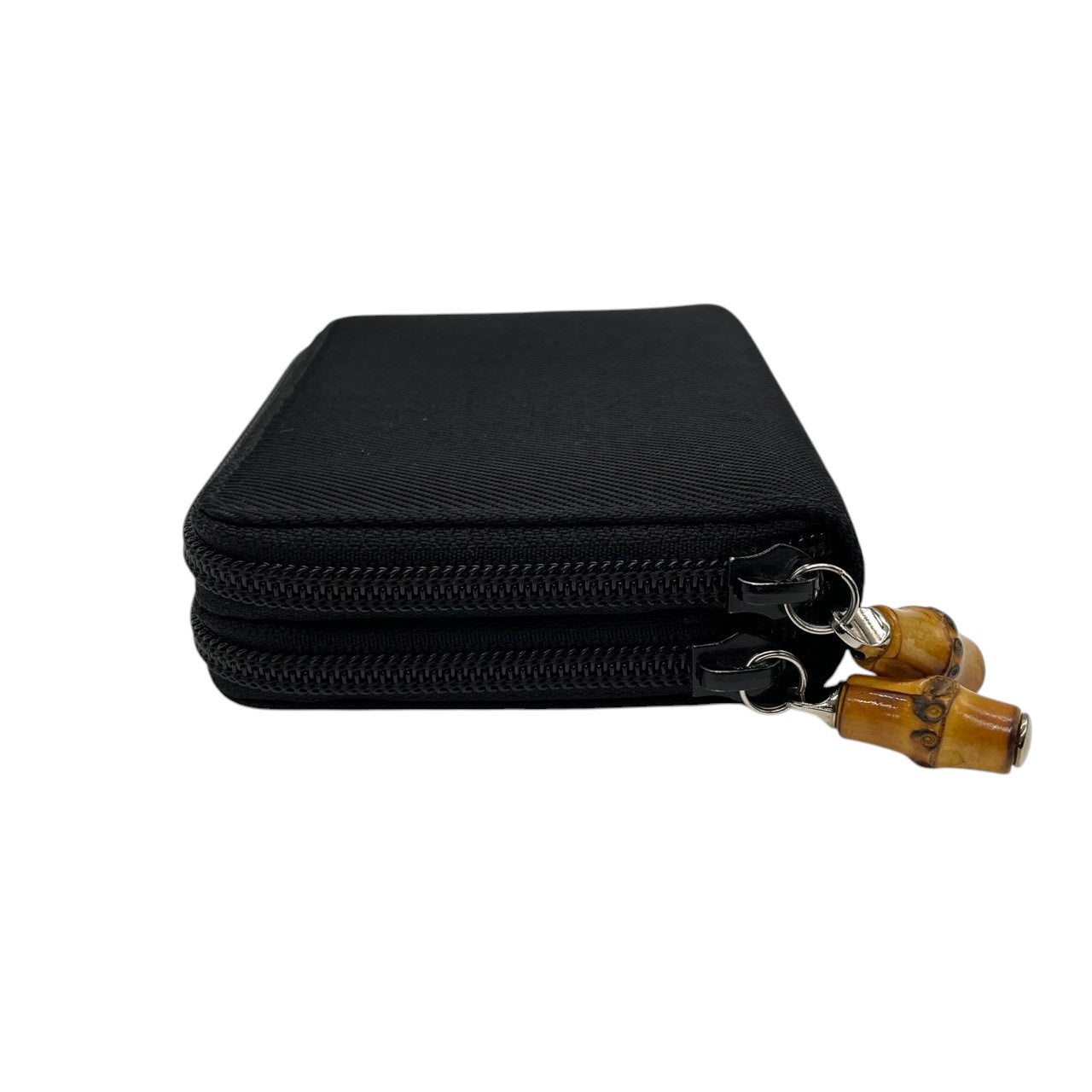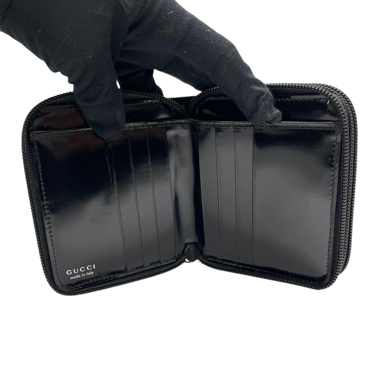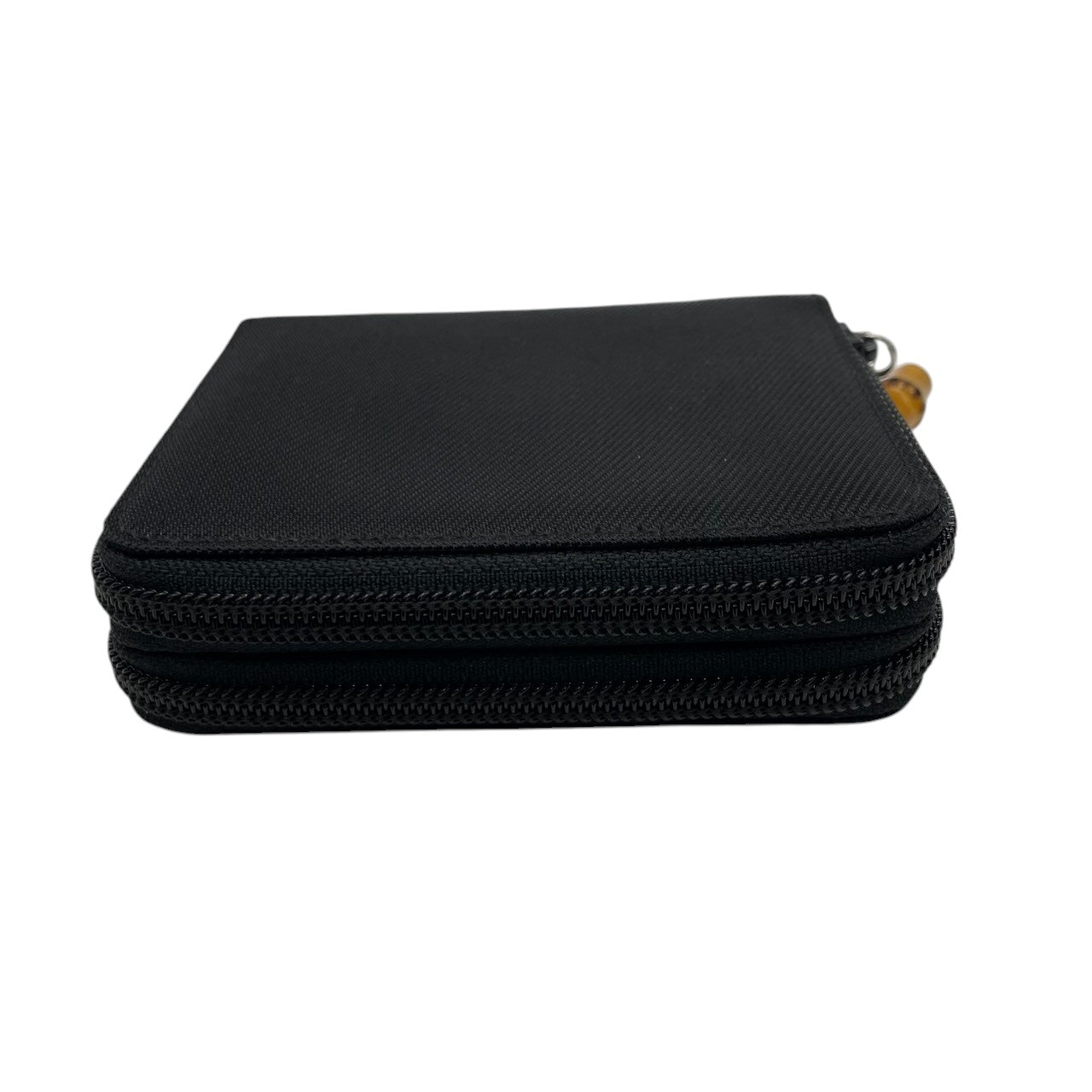 【美品】グッチ GUCCI バンブー ダブルファスナー コンパクトウォレット 二つ折り財布 ナイロン パテントレザー エナメル 黒 ブラック ラウンドジップ ミニ財布 コインケース 小銭入れ ヴィンテージ オールド イタリア製 レディース メンズ w5